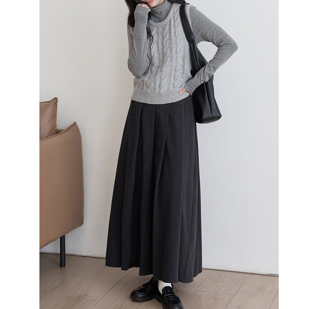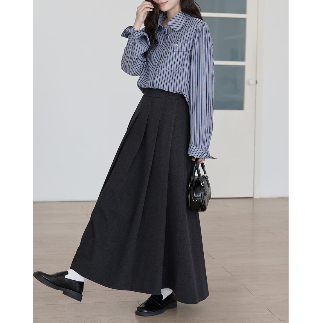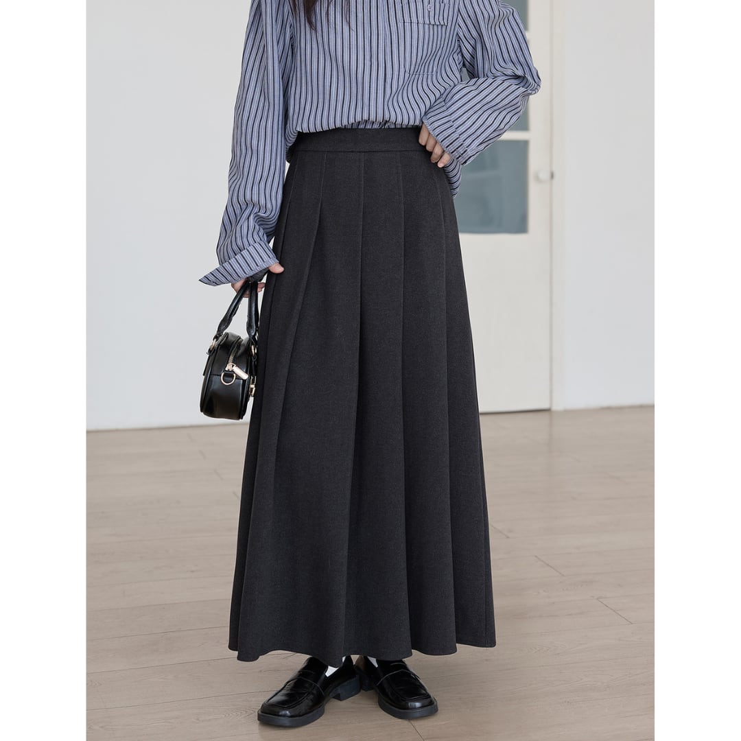 美しいフレアラインが魅力のロング丈Aラインスカートは、腰回りをすっきり見せながら動きのあるシルエットを演出します。ブラウスやニットと合わせて、通勤から休日のお出かけまで幅広いシーンで活躍するアイテムです。