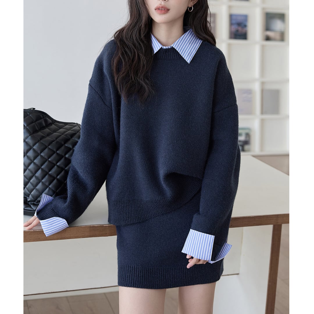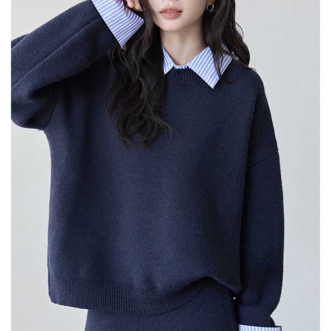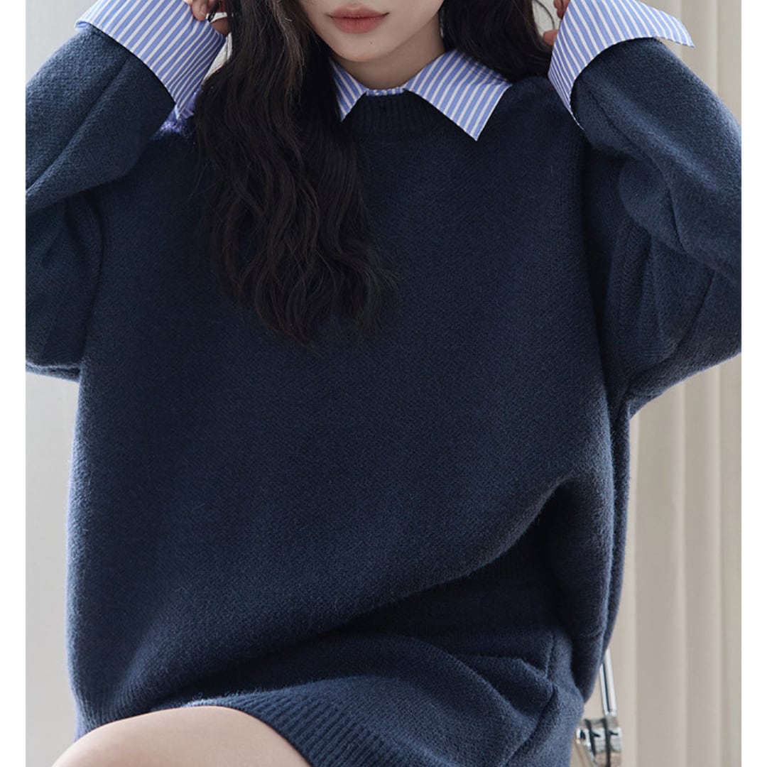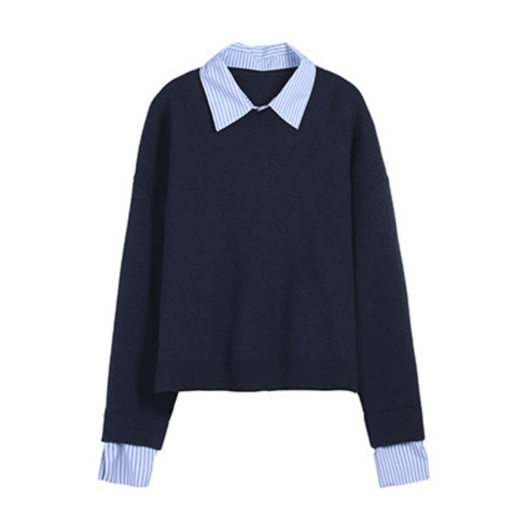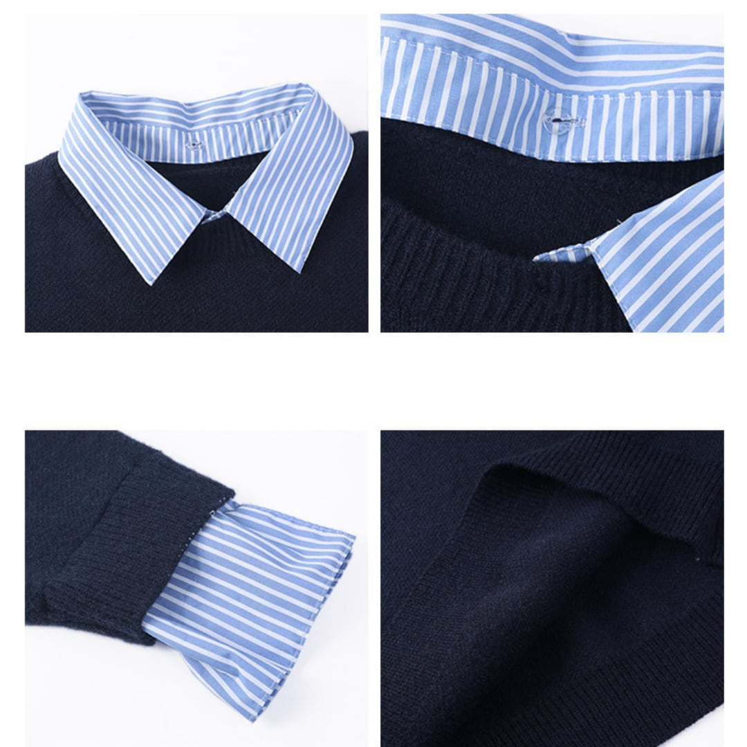 シャツを重ね着したようなレイヤードデザインが目を引く、通勤にもぴったりなニットトップス。ゆったりとしたシルエットで着心地がよく、春のカジュアルコーデに程よいきちんと感をプラスしてくれます。