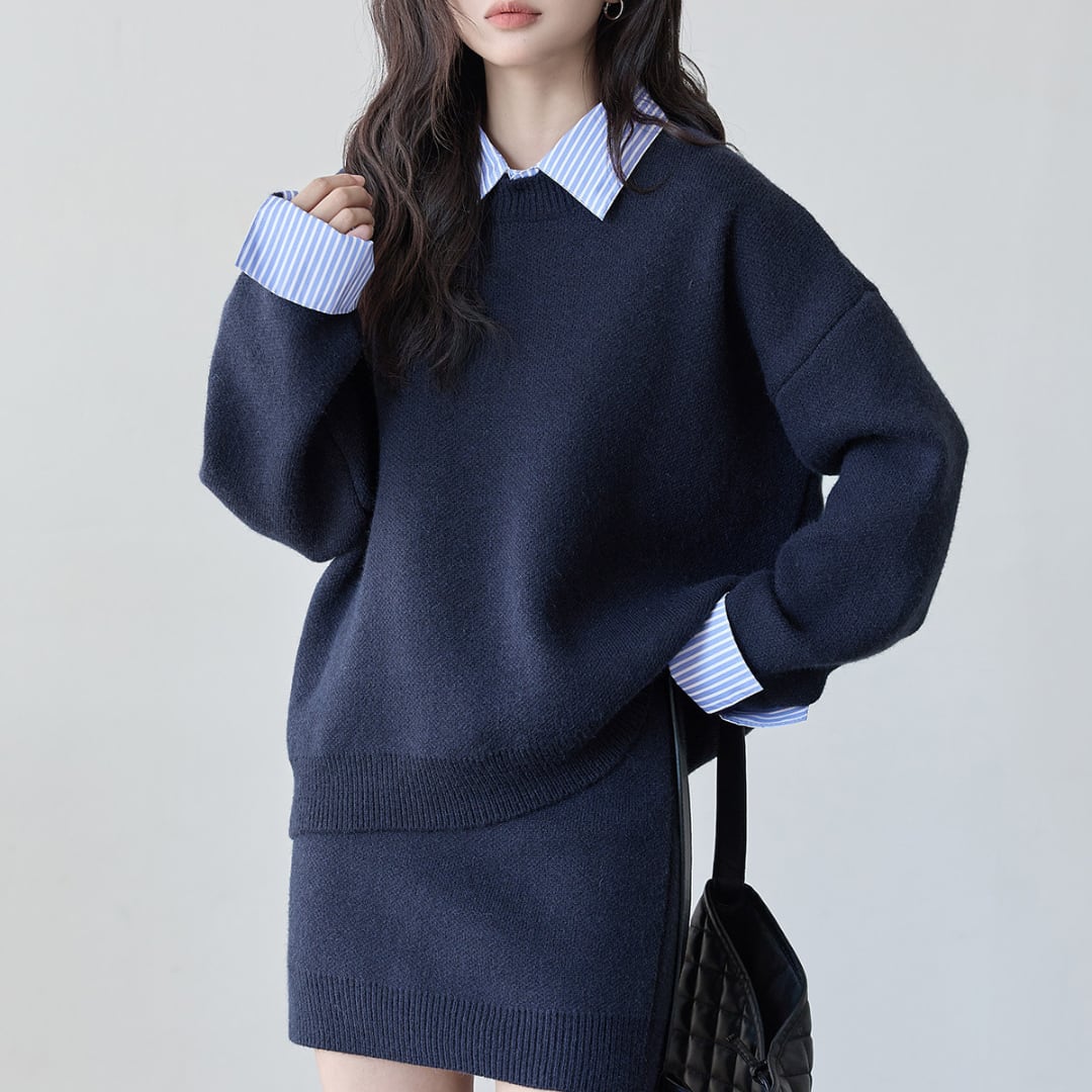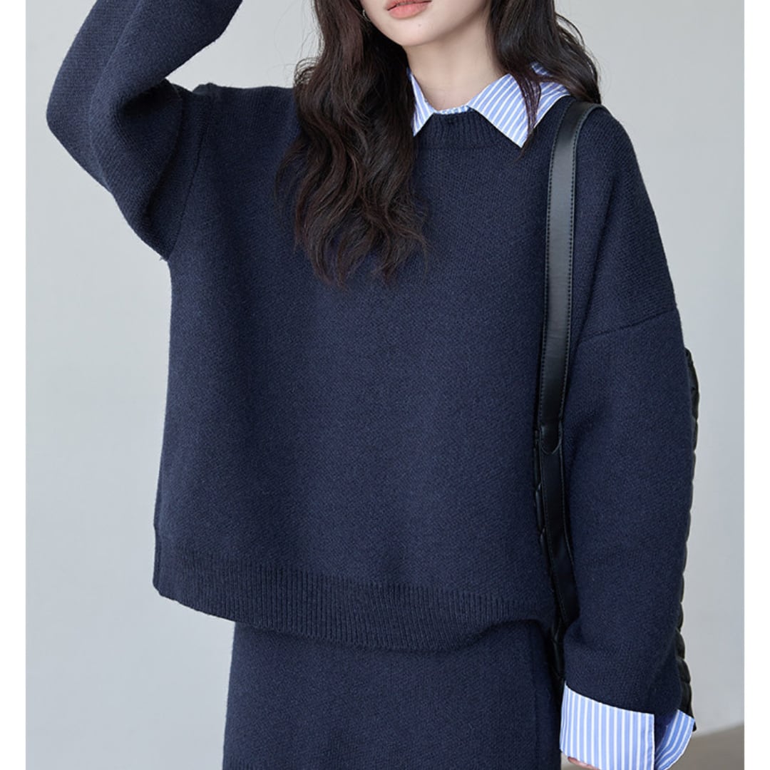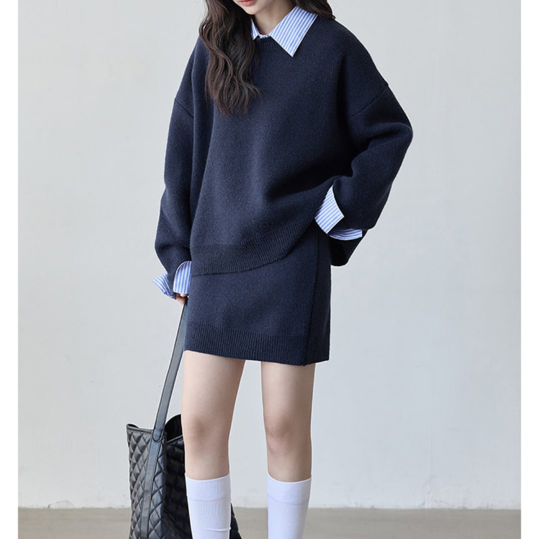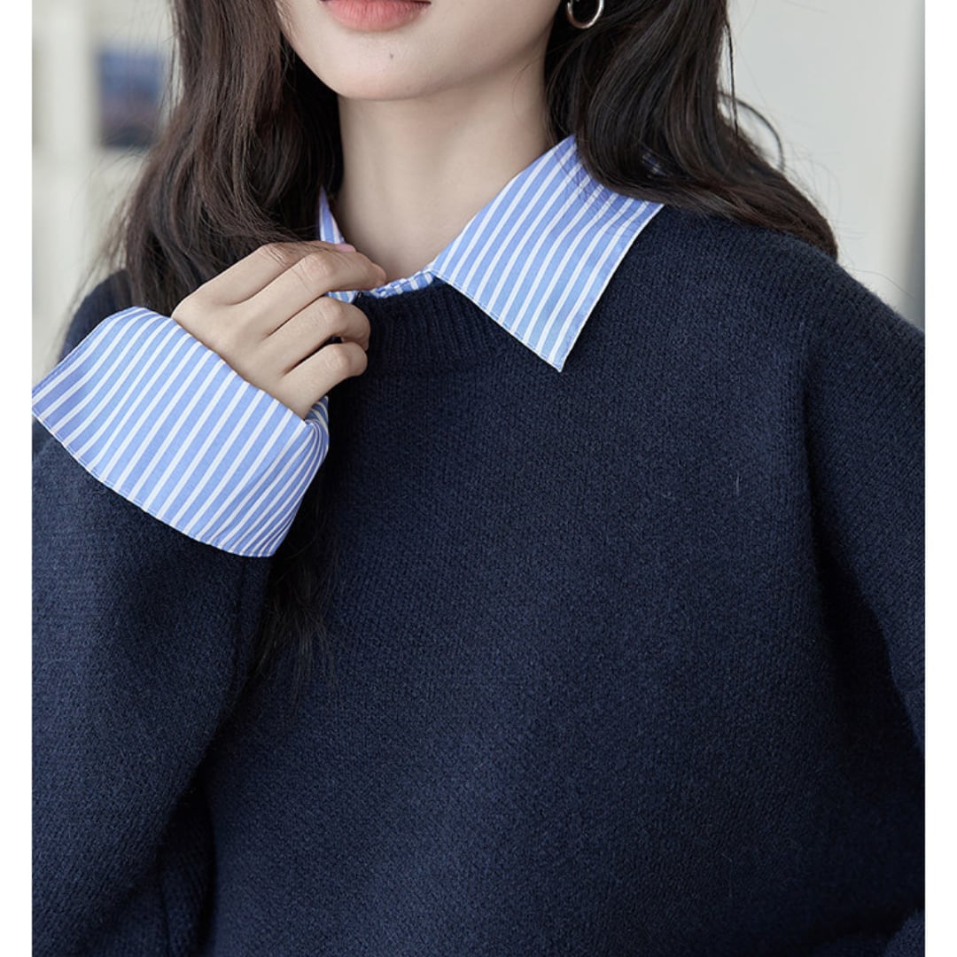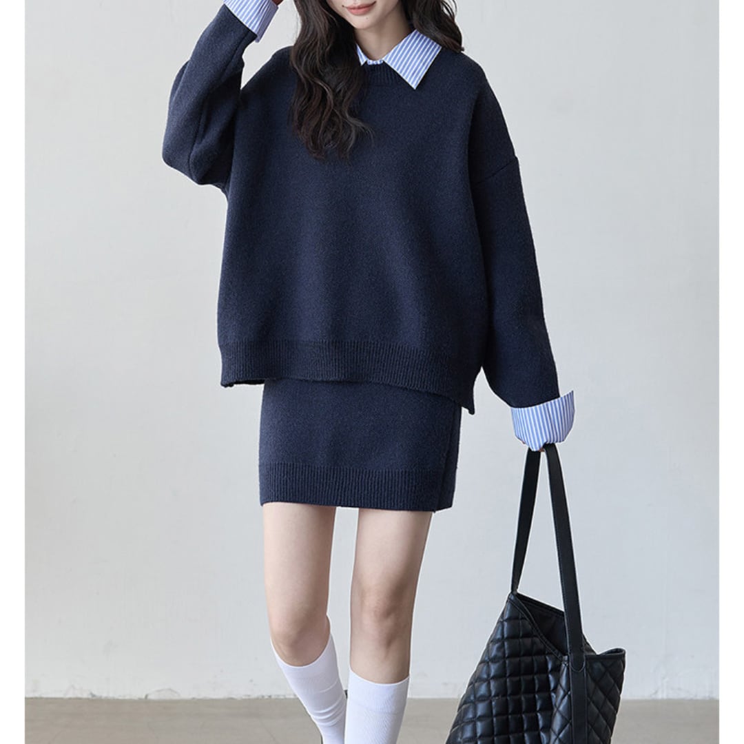 シャツを重ね着したようなレイヤードデザインが目を引く、通勤にもぴったりなニットトップス。ゆったりとしたシルエットで着心地がよく、春のカジュアルコーデに程よいきちんと感をプラスしてくれます。