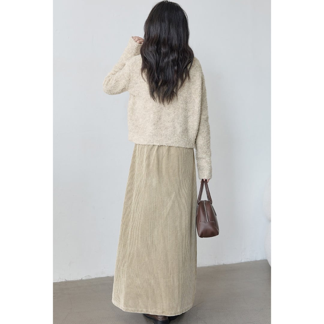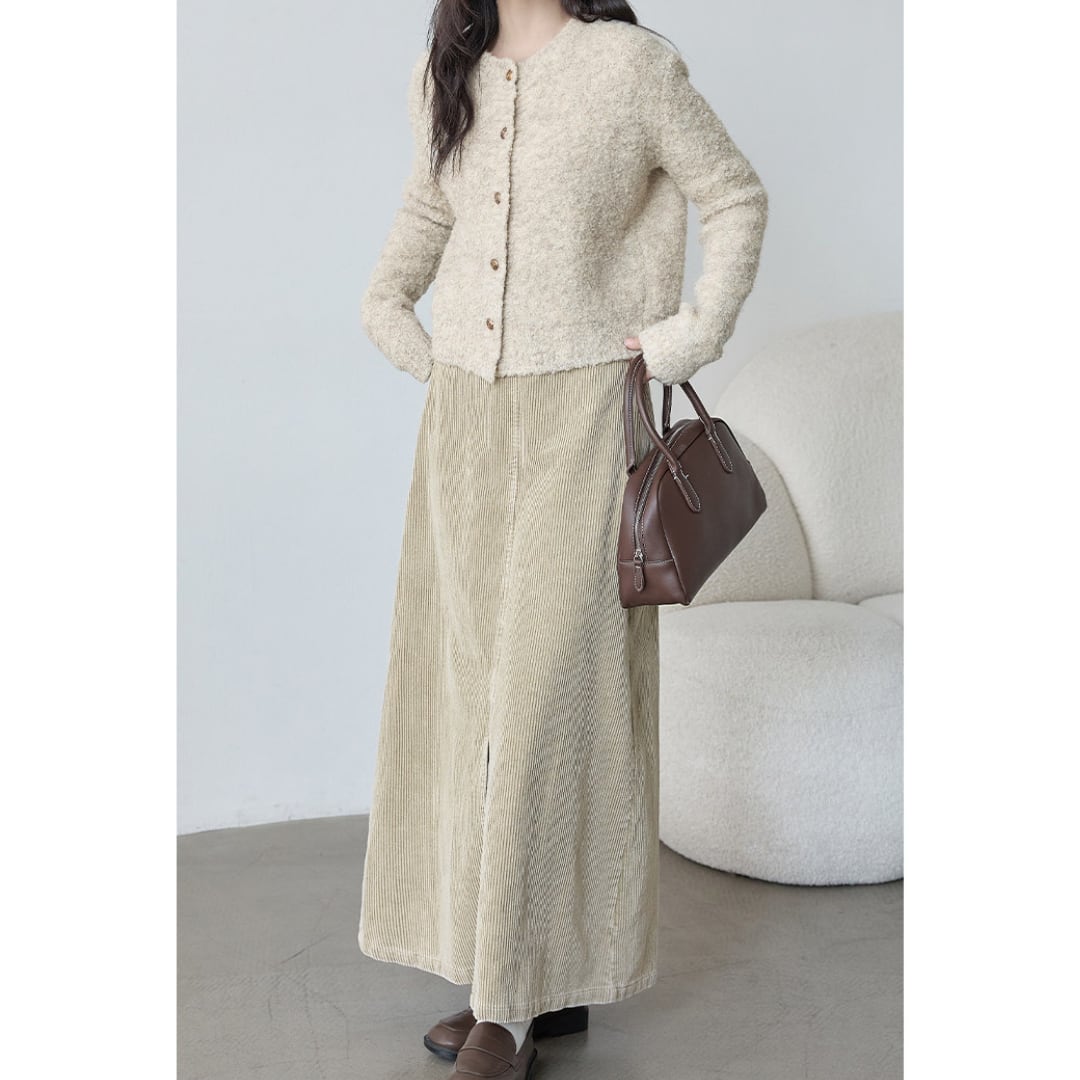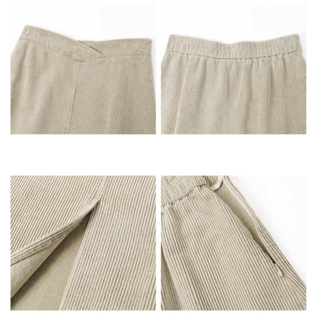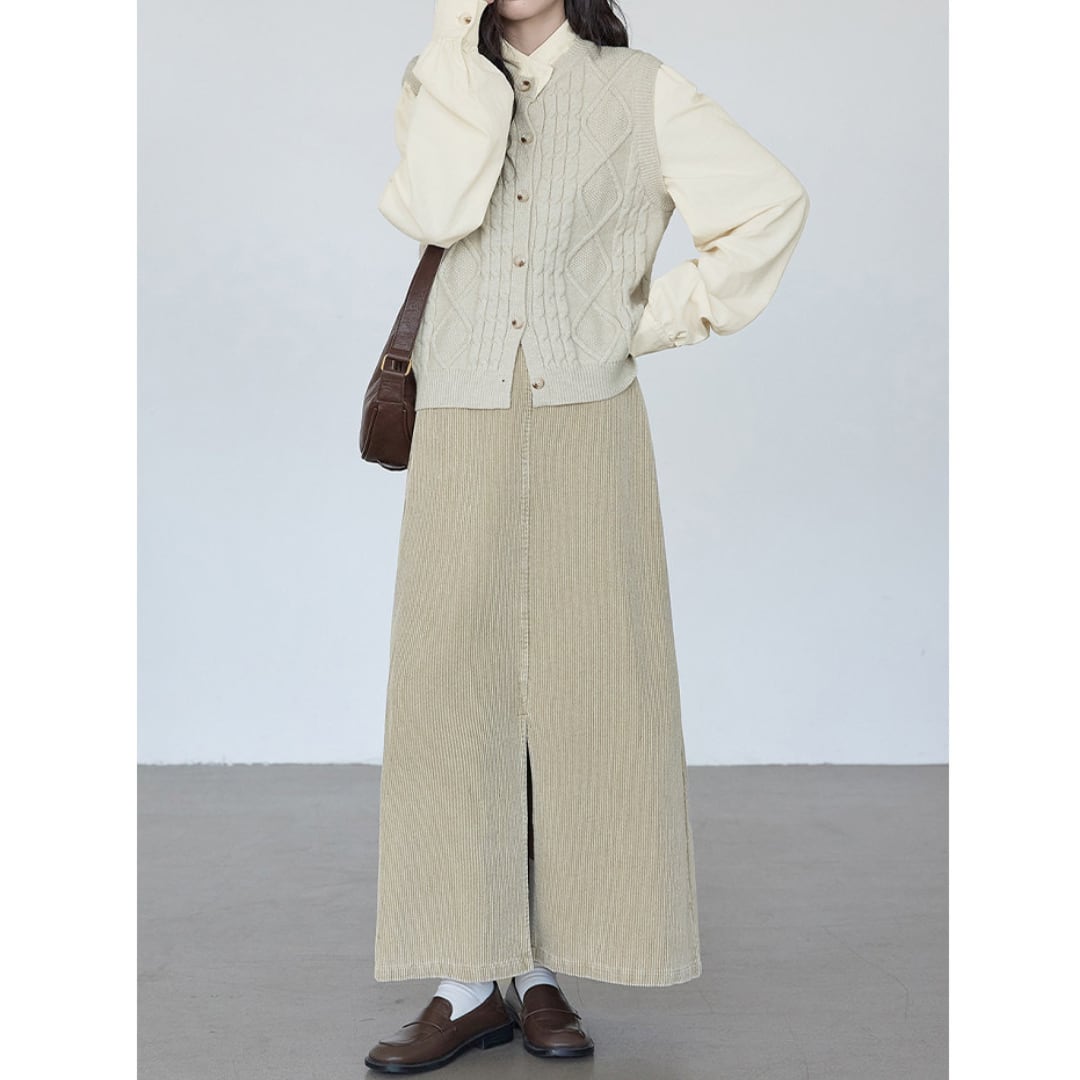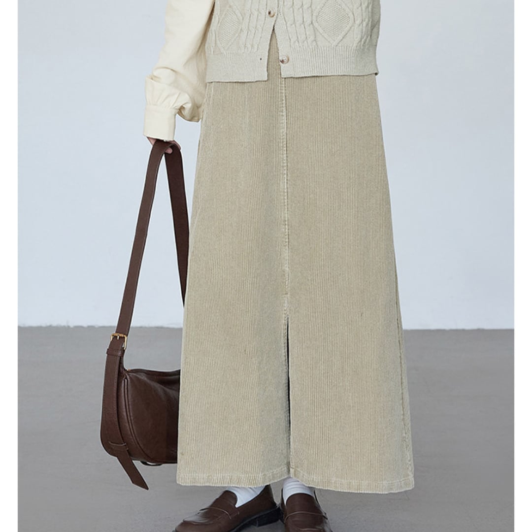 corduroy front slit skirt
