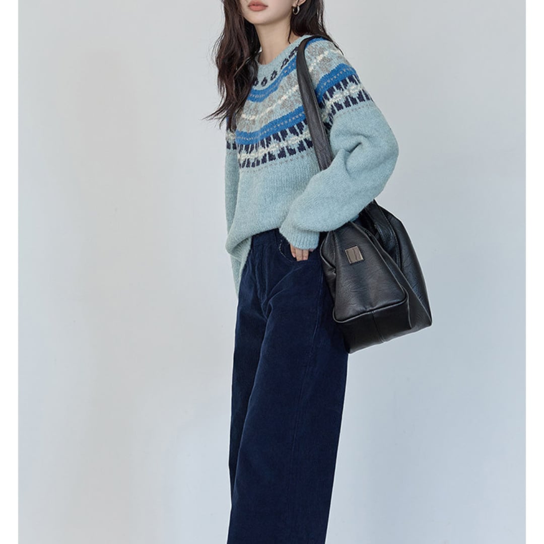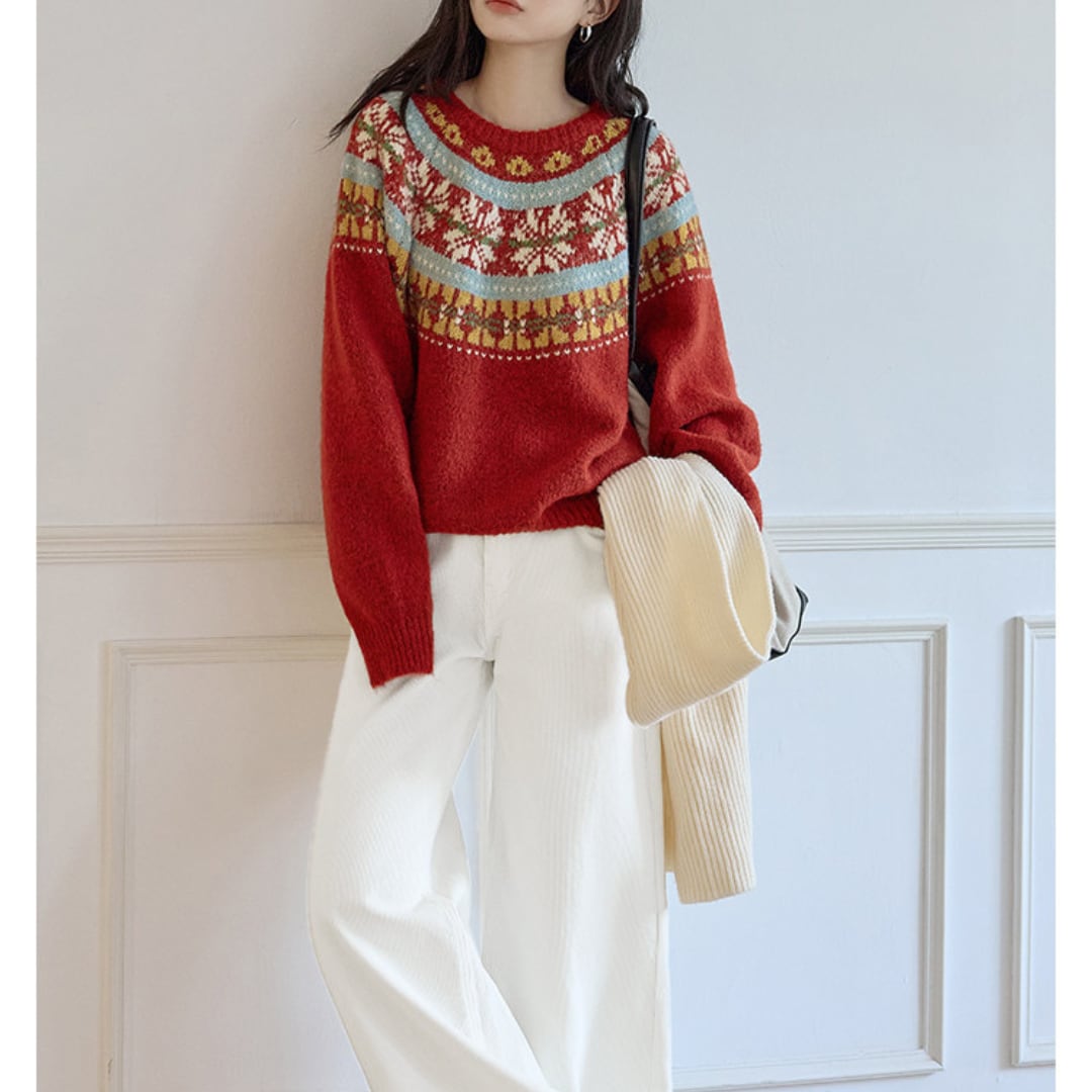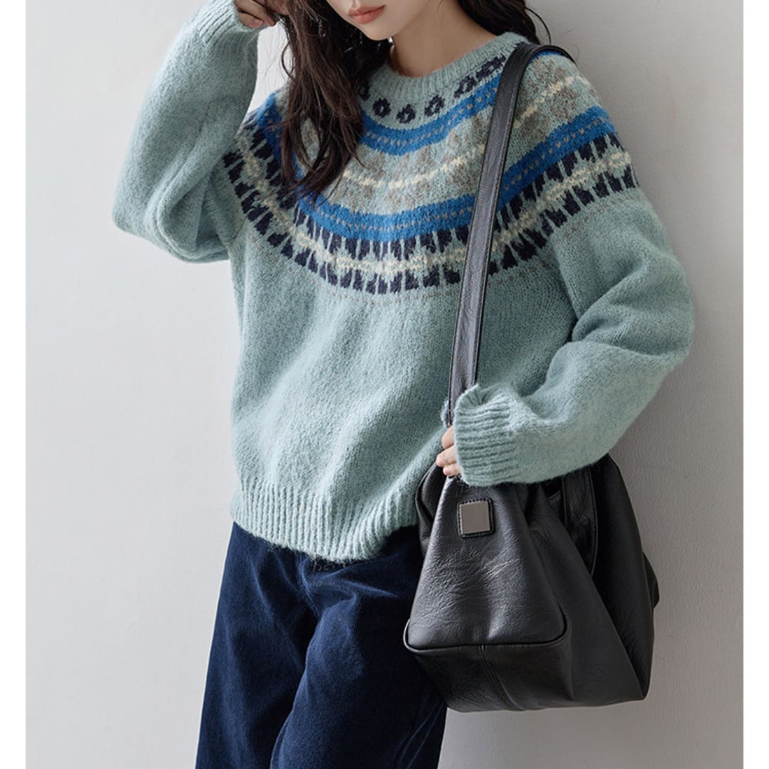 カラフルなノルディック柄が目を引く、秋冬らしさたっぷりのクルーネックニット。ゆったりとしたシルエットでレイヤードしやすく、寒い季節のカジュアルコーデにぴったりの一枚です。 【カラー】 ブルー、レッド 【サイズ】 S 着丈:61cm 胸囲:104cm 袖丈:73cm M 着丈:62cm 胸囲:108cm 袖丈:74cm L 着丈:63cm 胸囲:112cm 袖丈:75cm モデル身長163cm 着用サイズS ♦︎選べるお支払い方法 ・クレジットカード決済(VISA/Master/JCB/AMEX) ・キャリア決済(docomo/au/Softbank/Y!mobile) ・Amazon pay(ご利用不可の期間あり) ・Pay-easy ・後払い決済 ✴︎ Erz. ranking top 10 ✴︎ こちらから↓ https://www.erzofficial.com/categories/3617358 [ pickup item]イチオシアイテム↓ https://www.erzofficial.com/categories/3558579 Erz.がご提案する大人のレトロカジュアルって? https://www.erzofficial.com/blog/2021/09/06/123341 【お届けについて】 こちらの商品は海外店舗より直接発送となる為、 ご入金から最短10日〜4週間前後で発送致します。 ◼️注意事項 ・タイミングによっては 商品在庫切れにより 注文キャンセルとさせていただく恐れもございますので、予めご了承くださいませ。 ・こちらは輸入品となります。日本製とは検品基準が異なる為、 ・新品未使用品でもごくわずかな汚れや ほつれがある場合もございます。 ・明らかな不良があった場合お手数ですが、お早めにご連絡をお願い致します。 ご確認後、ご返金、返品対応させていただきますのでご安心ください。 ・仕入れ工場を変えることがあるため、記載サイズと若干異なる場合がございます。 ・商品の色味は、お手持ちのスマートフォンの画面によって実物と若干異なる場合がございます。 ・イメージ違いやサイズ交換等、不良品以外の返品は対応出来かねます。 ・ご注文後のキャンセルは、ご遠慮いただいております。 ———————————— ご購入前にこちらをお読みください。 https://alroom.thebase.in/about 商品番号 NT354Y