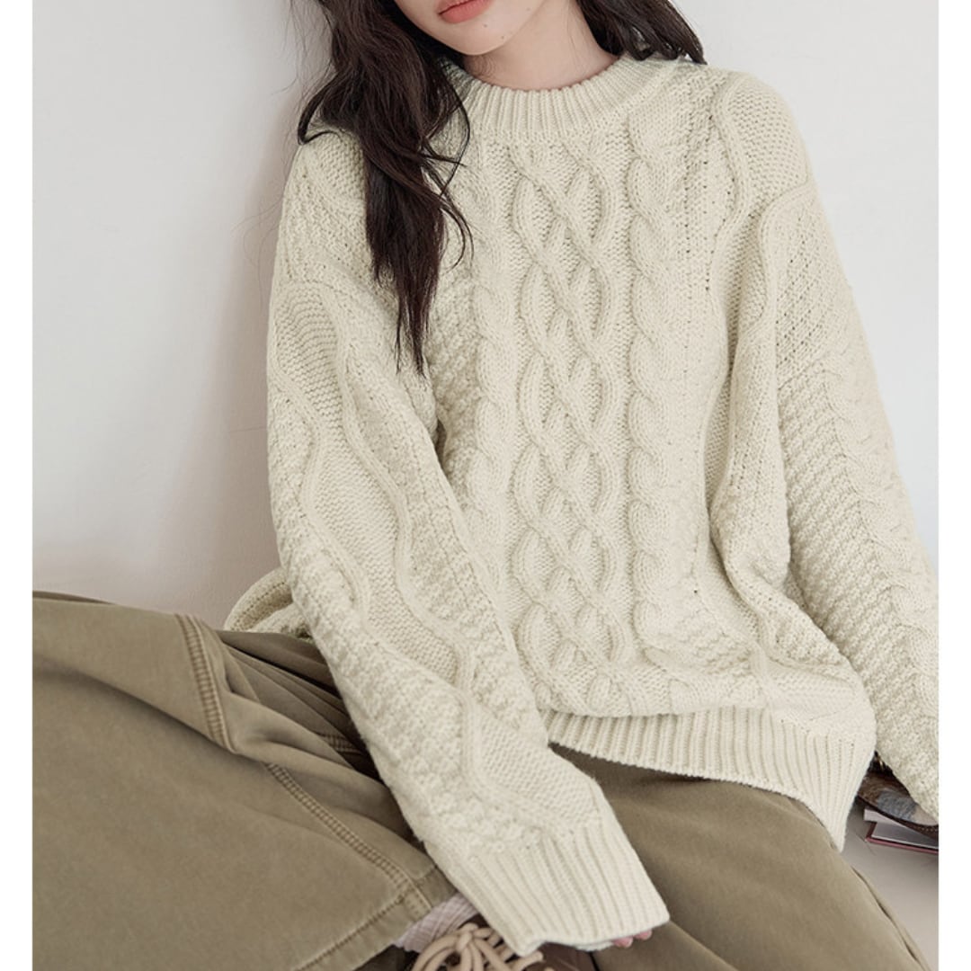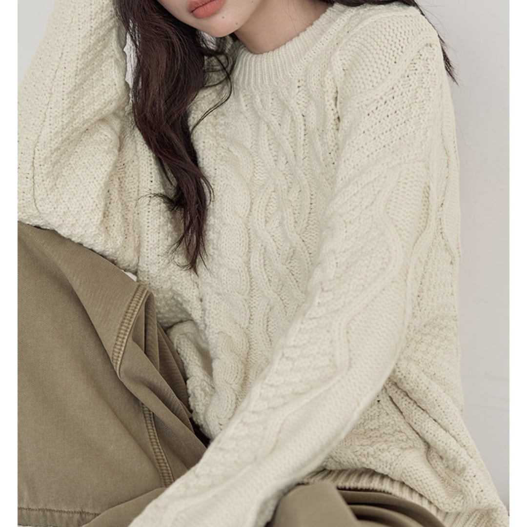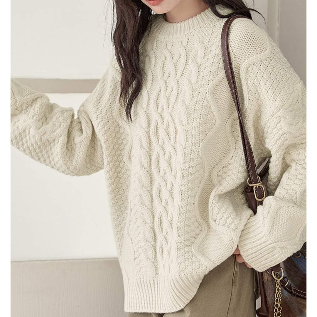 ざっくりとしたケーブル編みが印象的な、ボリューム感のある厚手ニットプルオーバー。 ゆったりシルエットで快適な着心地を叶え、秋冬のリラックススタイルにぴったりです。 【カラー】 ホワイト、グリーン 【サイズ】 S 着丈:70cm 胸囲:136cm 肩幅:63cm 袖丈:55cm M 着丈:71cm 胸囲:140cm 肩幅:64cm 袖丈:56cm L 着丈:72cm 胸囲:144cm 肩幅:65cm 袖丈:57cm モデル身長163cm 着用サイズS ♦︎選べるお支払い方法 ・クレジットカード決済(VISA/Master/JCB/AMEX) ・キャリア決済(docomo/au/Softbank/Y!mobile) ・Amazon pay(ご利用不可の期間あり) ・Pay-easy ・後払い決済 ✴︎ Erz. ranking top 10 ✴︎ こちらから↓ https://www.erzofficial.com/categories/3617358 [ pickup item]イチオシアイテム↓ https://www.erzofficial.com/categories/3558579 Erz.がご提案する大人のレトロカジュアルって? https://www.erzofficial.com/blog/2021/09/06/123341 【お届けについて】 こちらの商品は海外店舗より直接発送となる為、 ご入金から最短10日〜4週間前後で発送致します。 ◼️注意事項 ・タイミングによっては 商品在庫切れにより 注文キャンセルとさせていただく恐れもございますので、予めご了承くださいませ。 ・こちらは輸入品となります。日本製とは検品基準が異なる為、 ・新品未使用品でもごくわずかな汚れや ほつれがある場合もございます。 ・明らかな不良があった場合お手数ですが、お早めにご連絡をお願い致します。 ご確認後、ご返金、返品対応させていただきますのでご安心ください。 ・仕入れ工場を変えることがあるため、記載サイズと若干異なる場合がございます。 ・商品の色味は、お手持ちのスマートフォンの画面によって実物と若干異なる場合がございます。 ・イメージ違いやサイズ交換等、不良品以外の返品は対応出来かねます。 ・ご注文後のキャンセルは、ご遠慮いただいております。 ———————————— ご購入前にこちらをお読みください。 https://alroom.thebase.in/about 商品番号 NT356Y