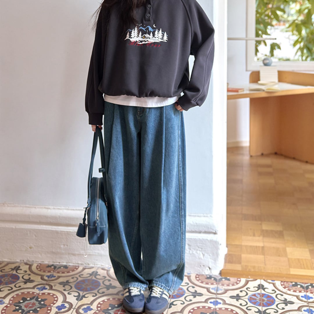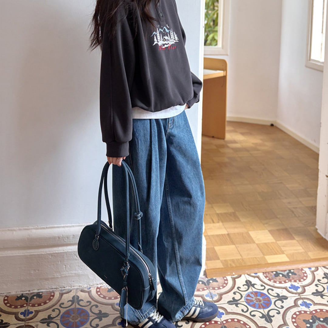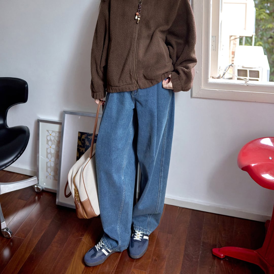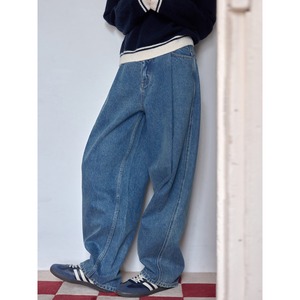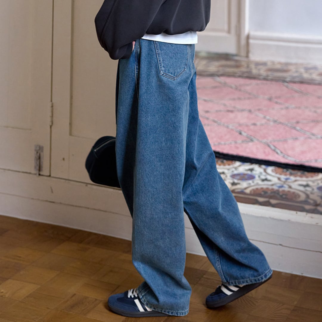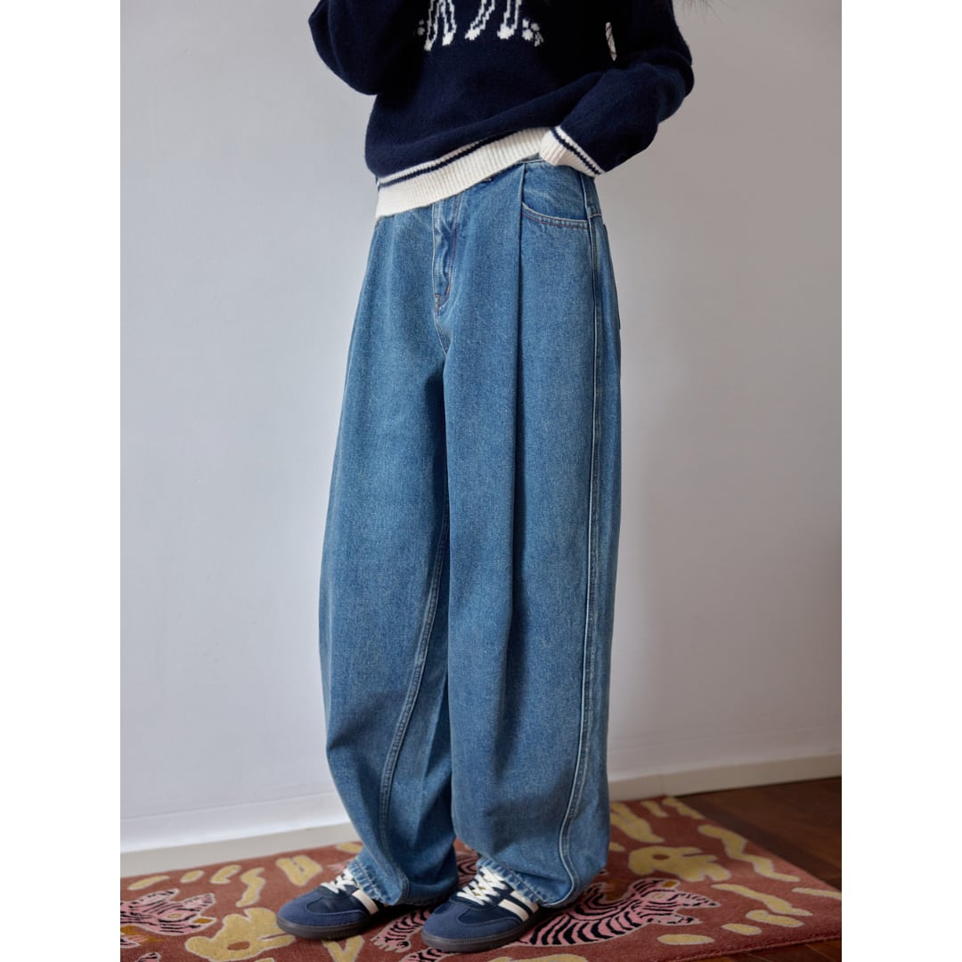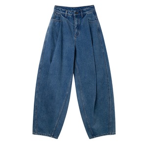 ゆるやかなワイドシルエットと洗練されたデニム地が魅力のハイウエストパンツ。