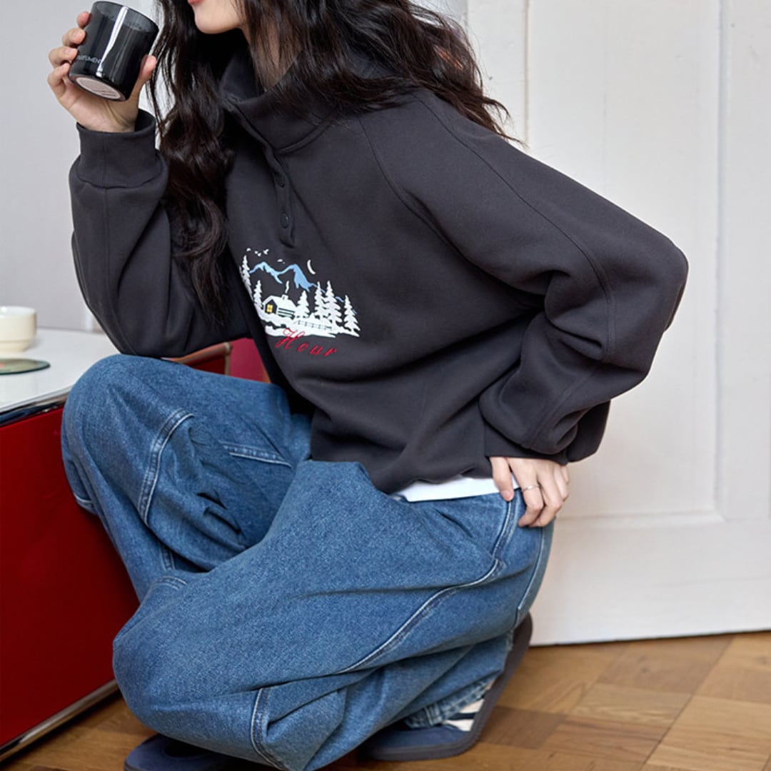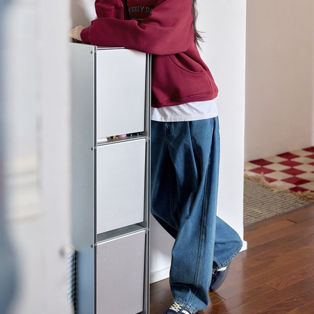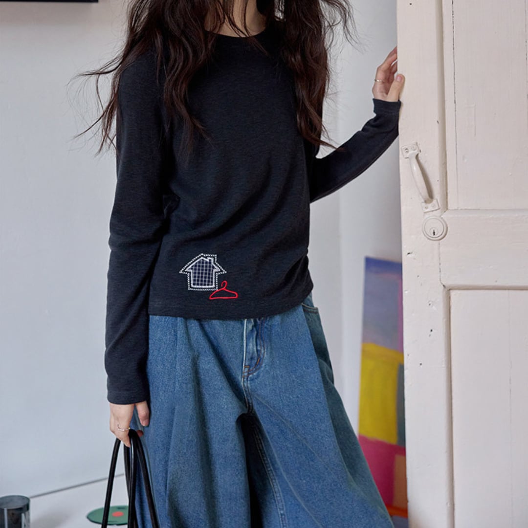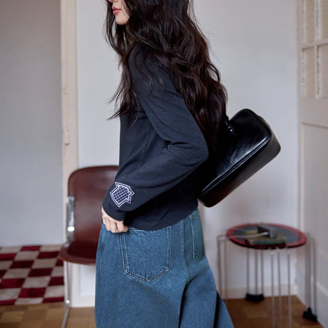 通年使えるベーシックなデザインで、スウェットやブラウスなど幅広いトップスと好相性です。