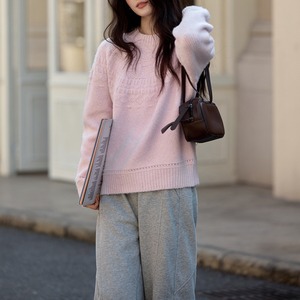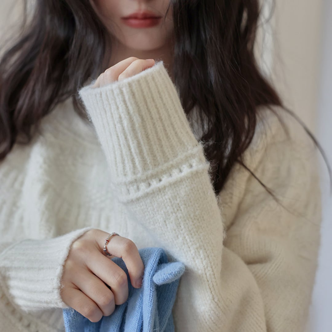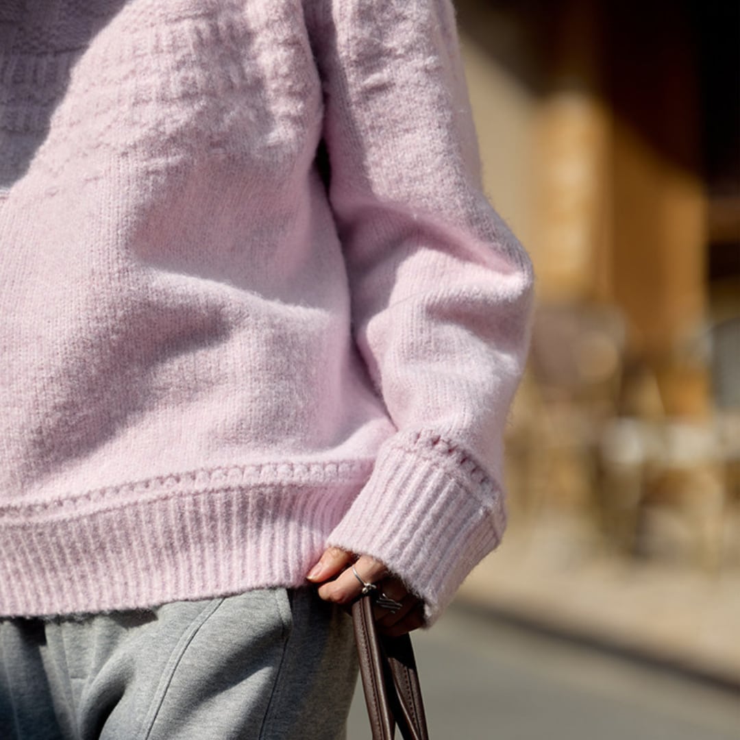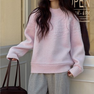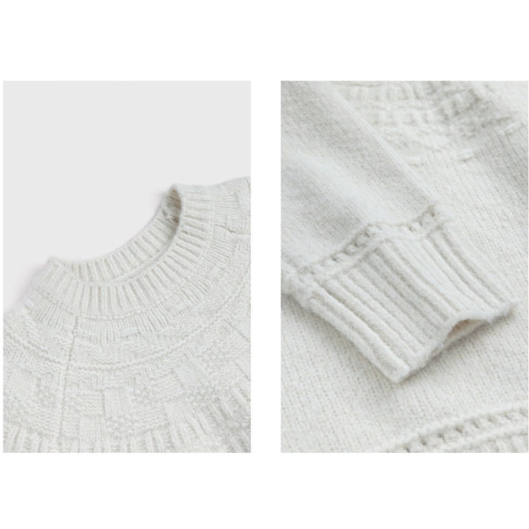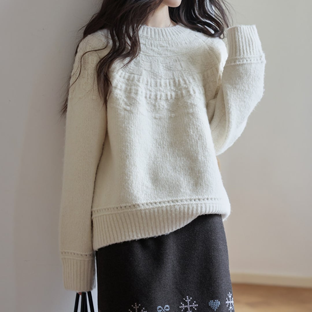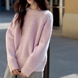 立体感のある編み模様が印象的な、ふんわりとした風合いのニットプルオーバー。