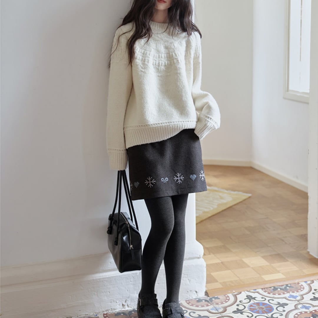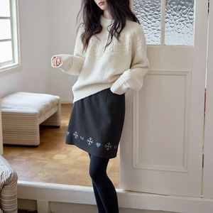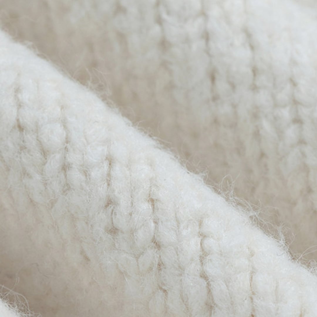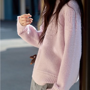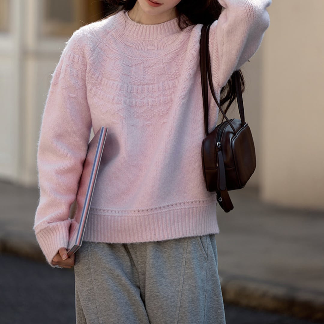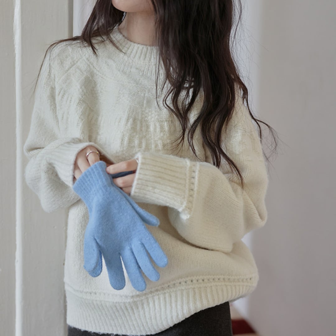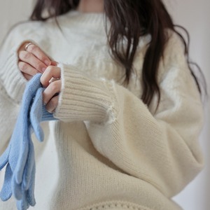 立体感のある編み模様が印象的な、ふんわりとした風合いのニットプルオーバー。