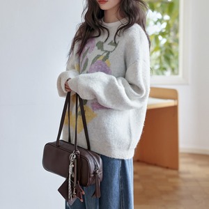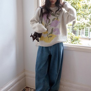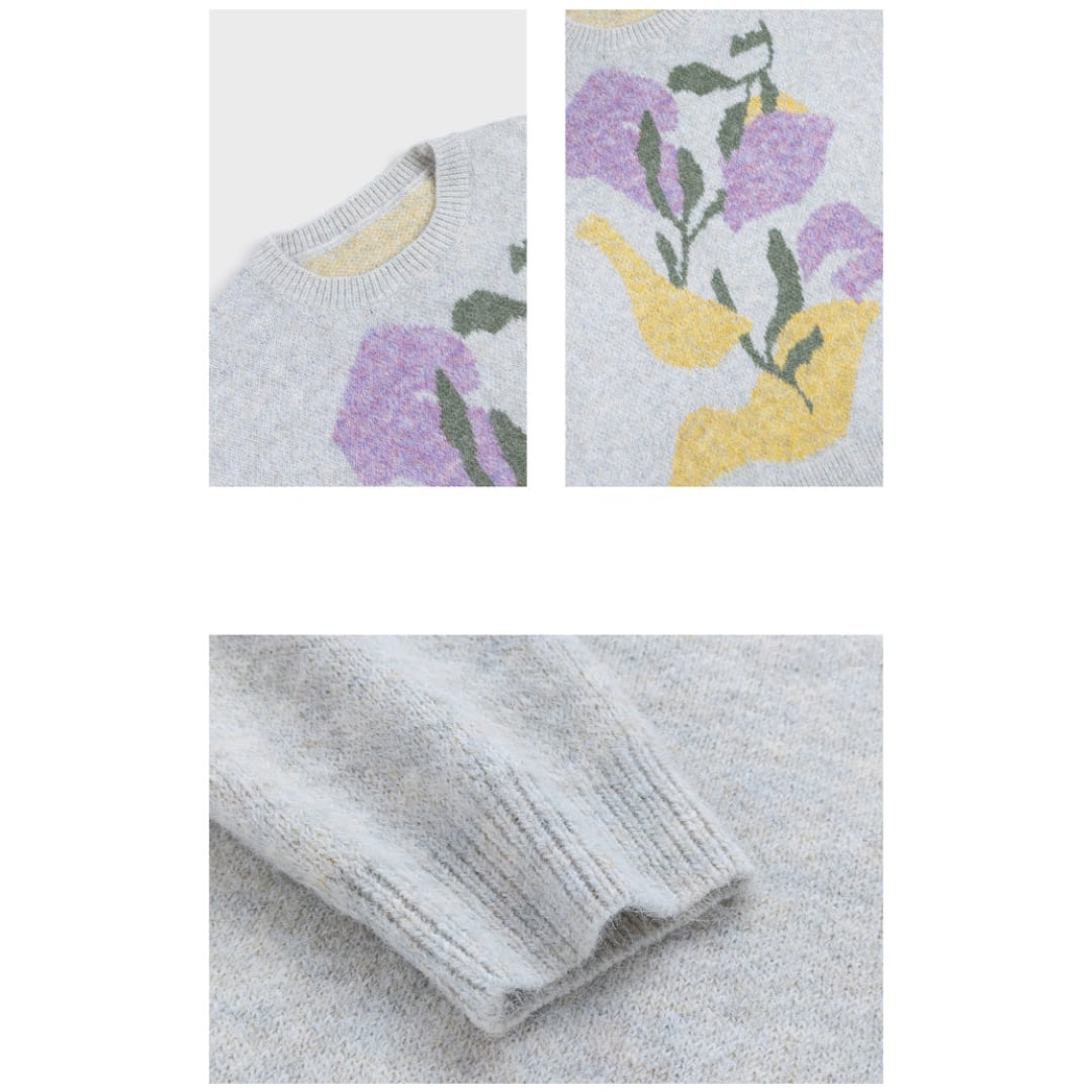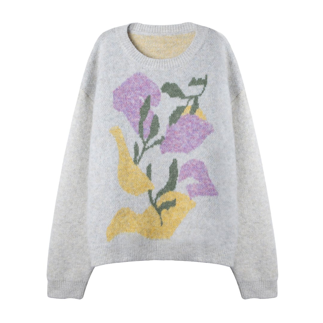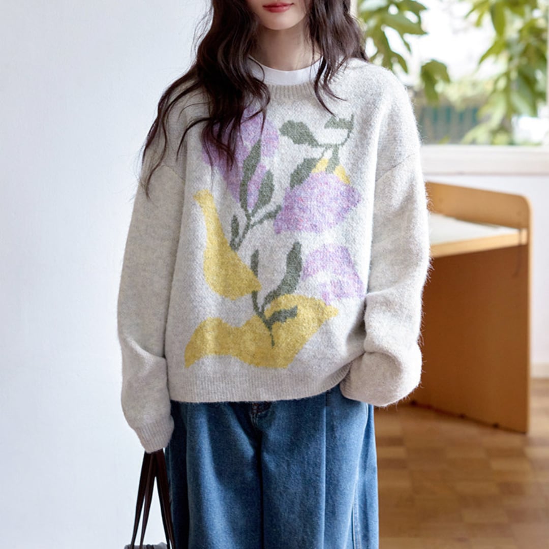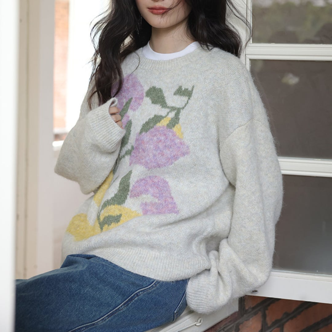 柔らかな肌触りと大胆な花柄が魅力のニットプルオーバー。