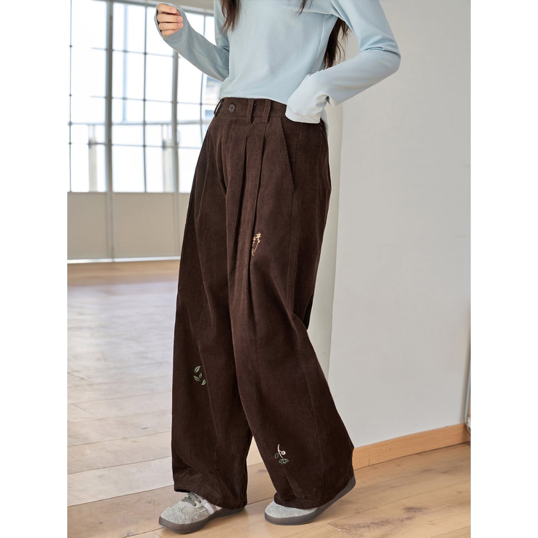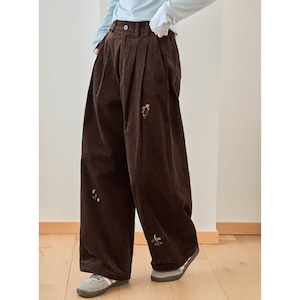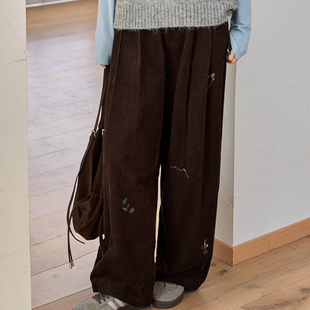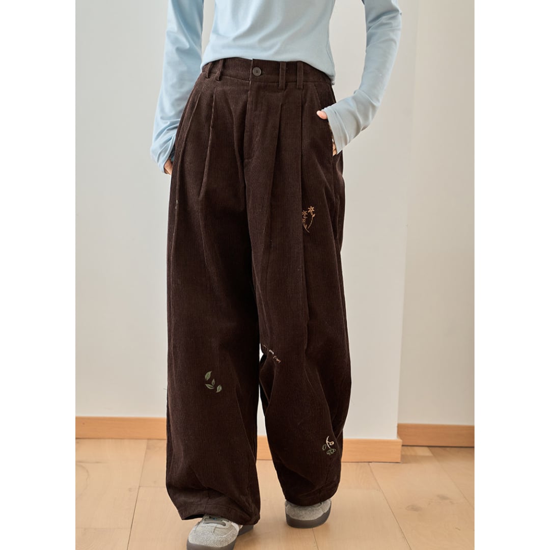 corduroy wide leg pants with embroidery