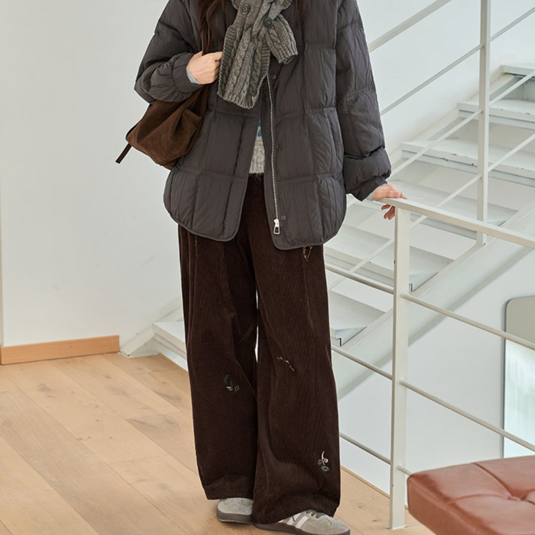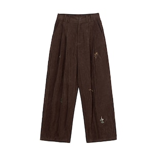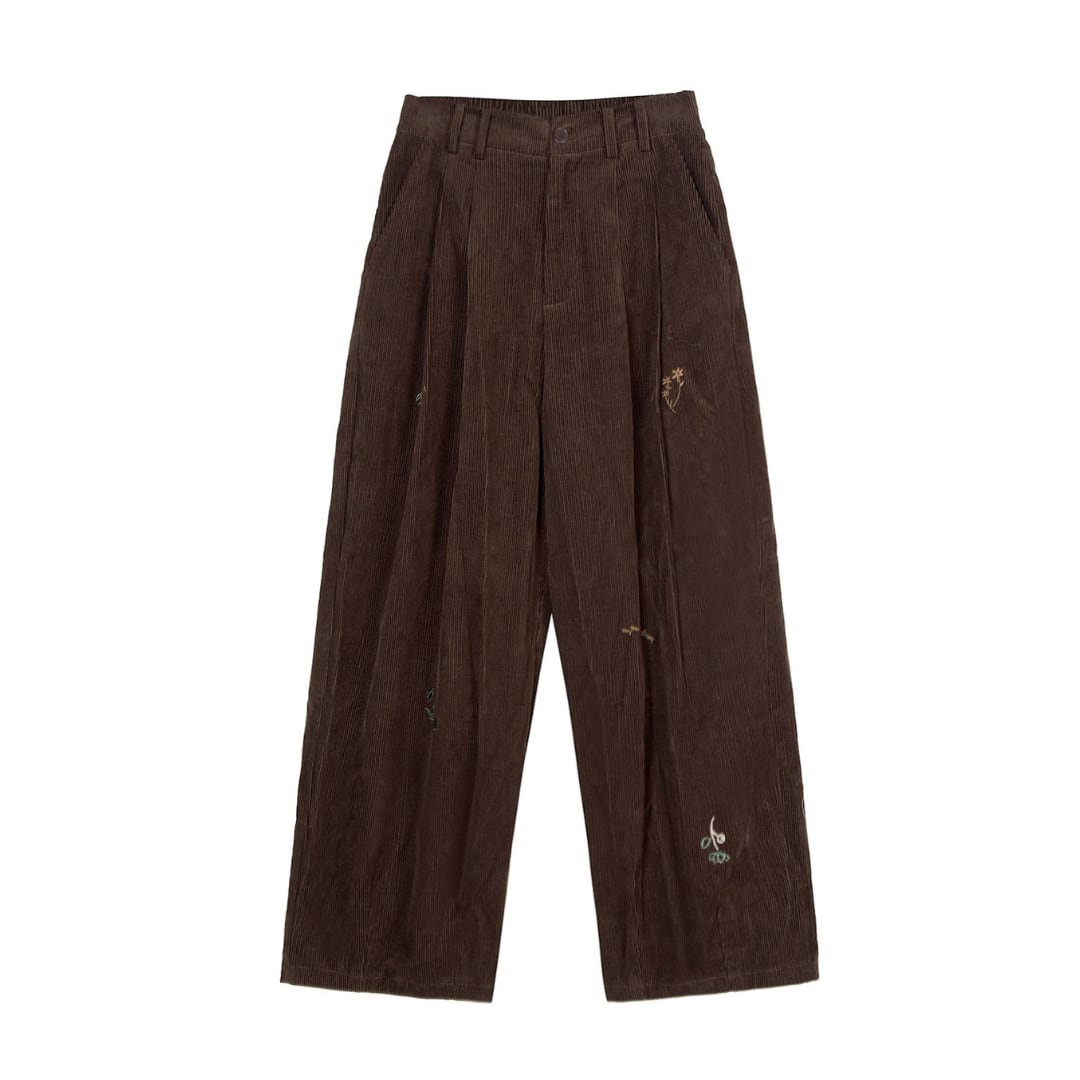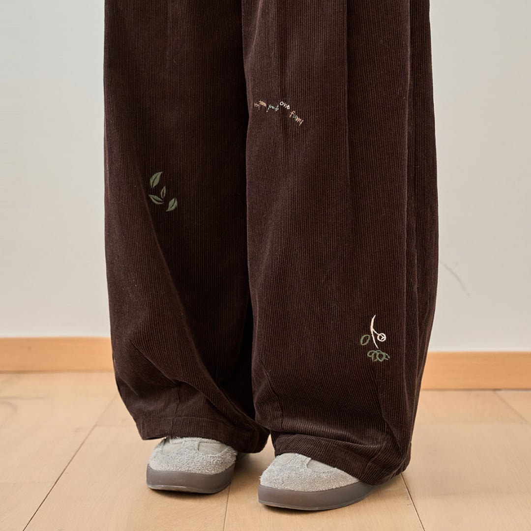 corduroy wide leg pants with embroidery