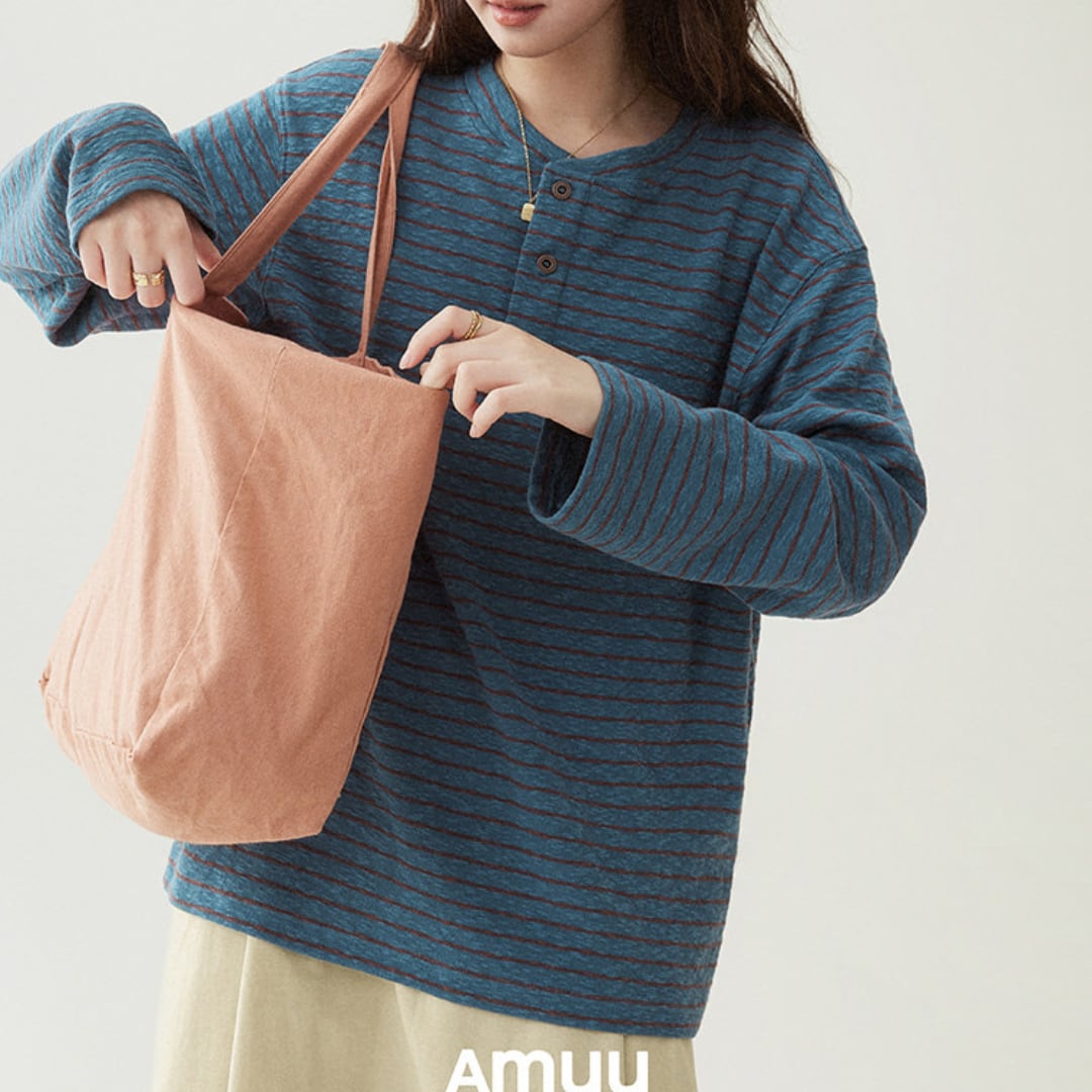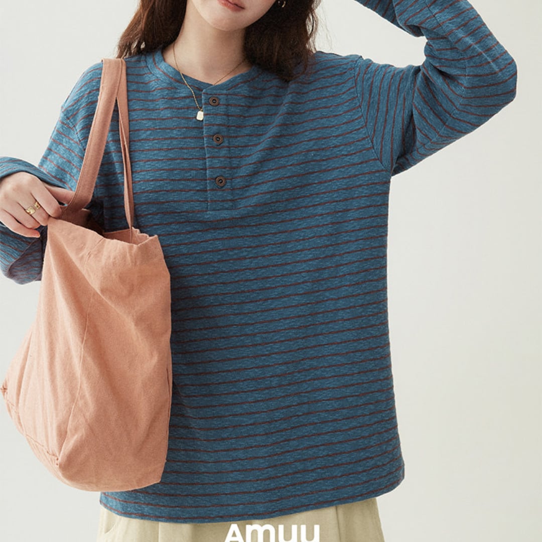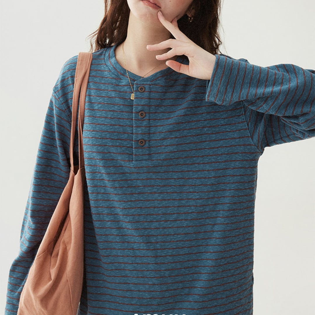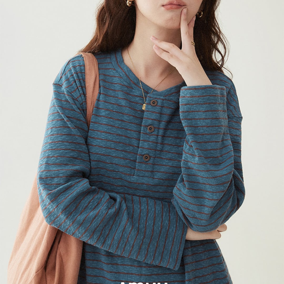 striped pullover with button detail