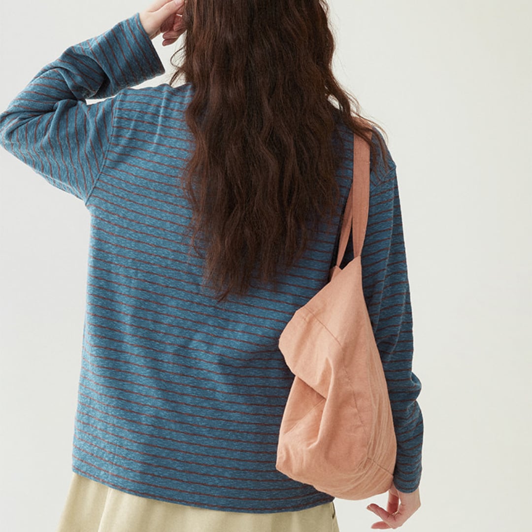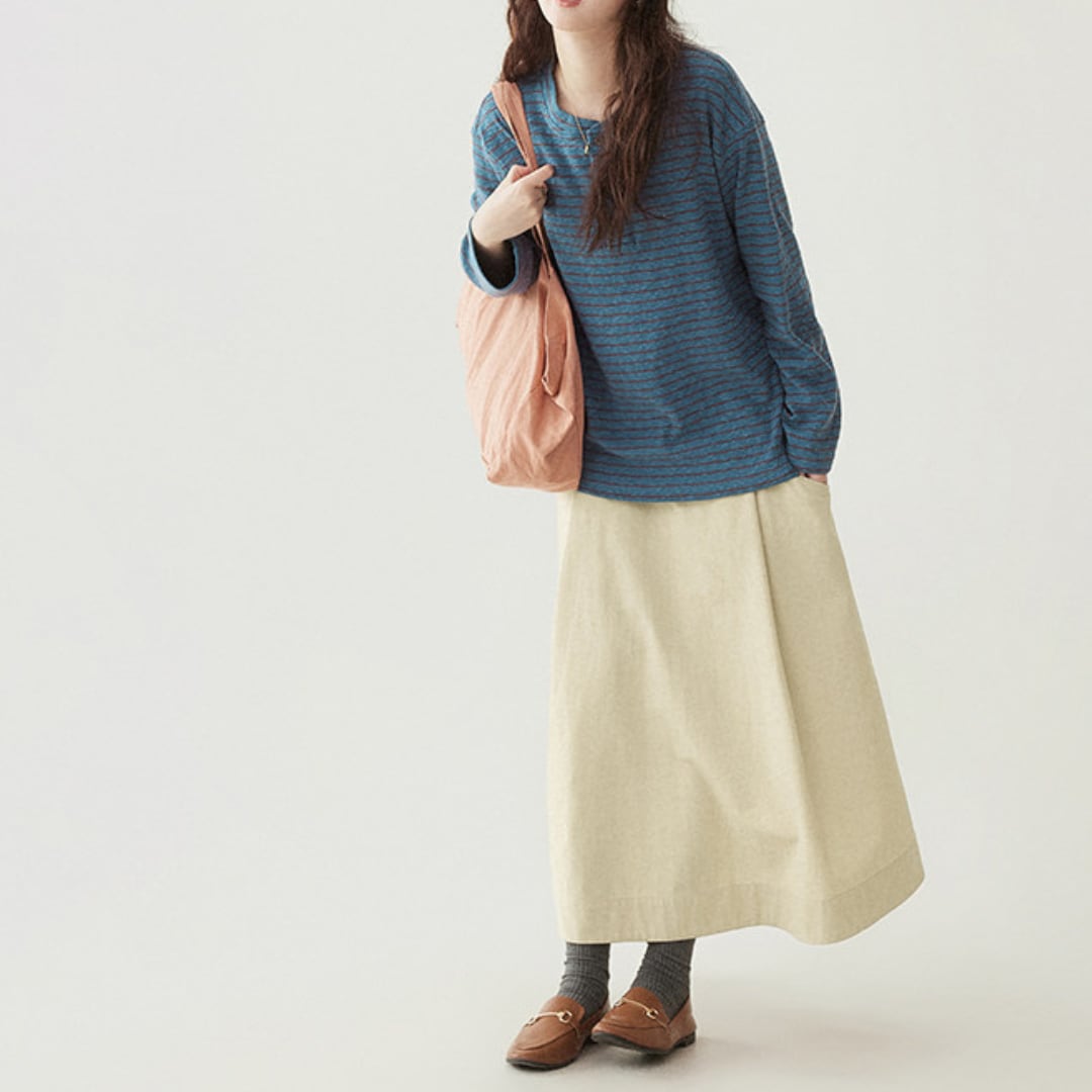 春先のカジュアルスタイルにぴったりで、一枚でさらりと着られる万能トップスです。