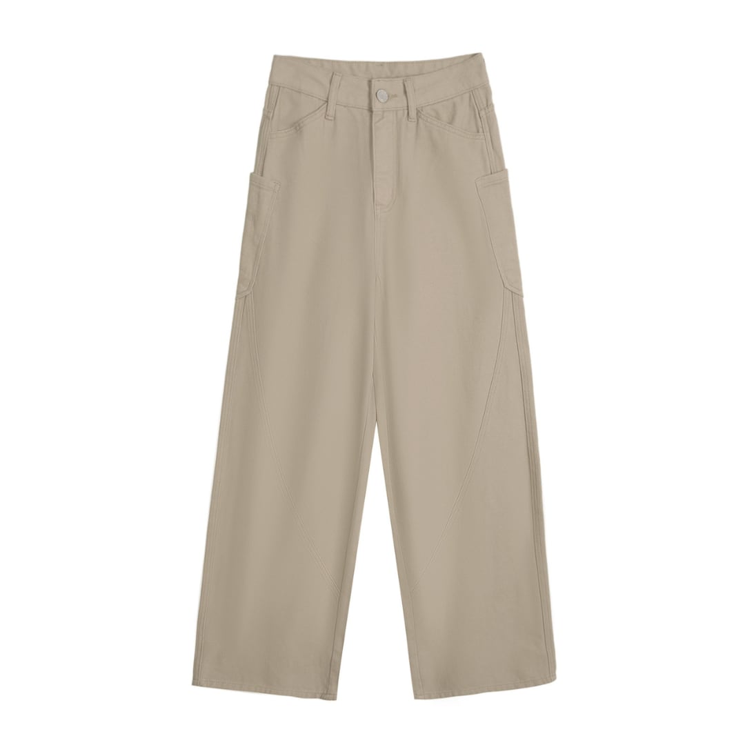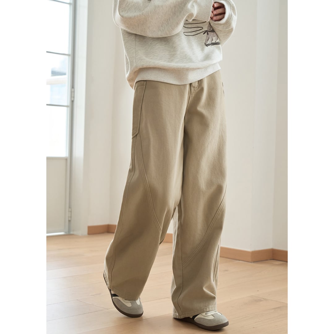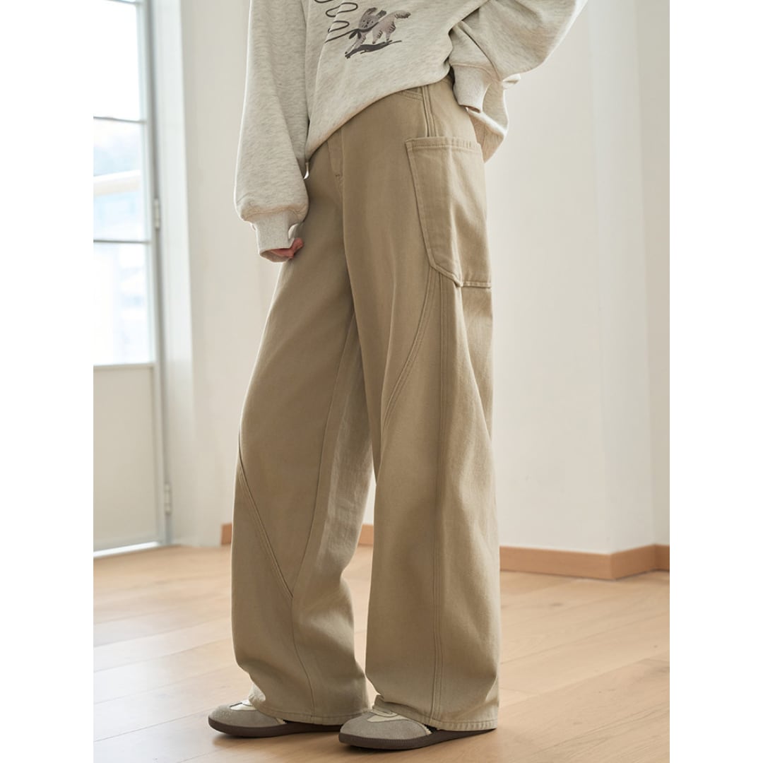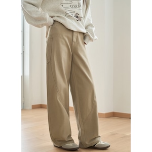 立体感のあるステッチ切り替えがアクセントになった、ナチュラルな印象のワイドパンツ。