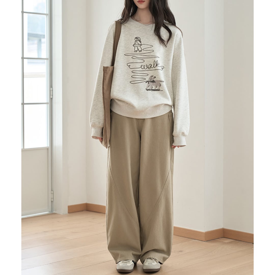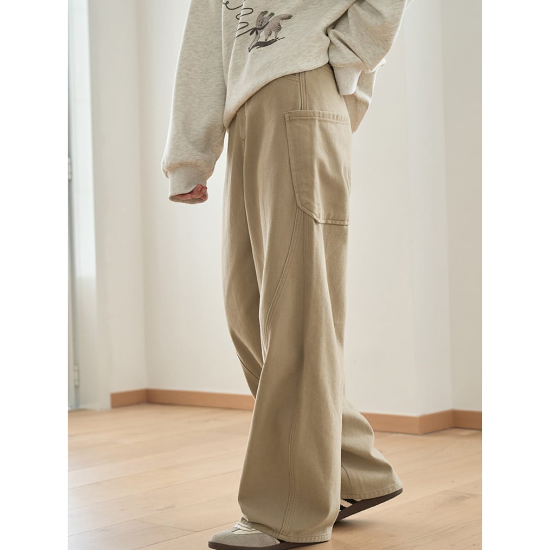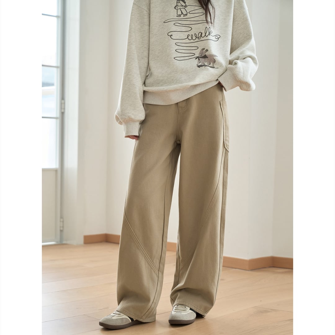 ゆったりとしたシルエットで動きやすく、高腰デザインが秋冬のカジュアルコーデにぴったりです。