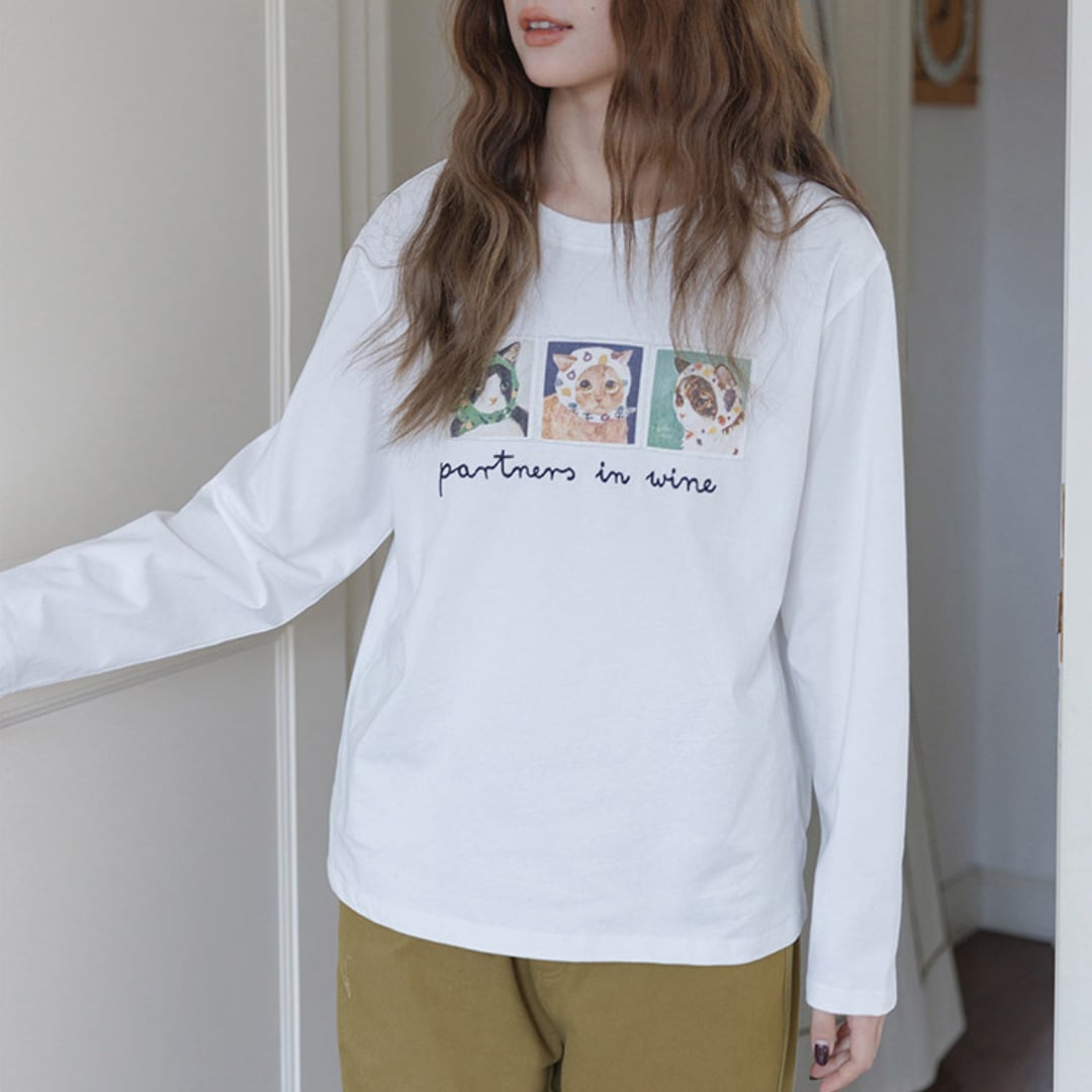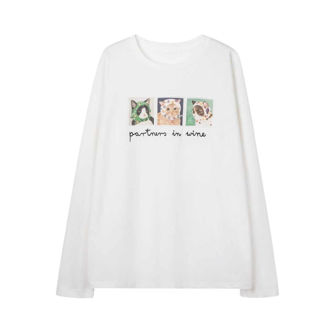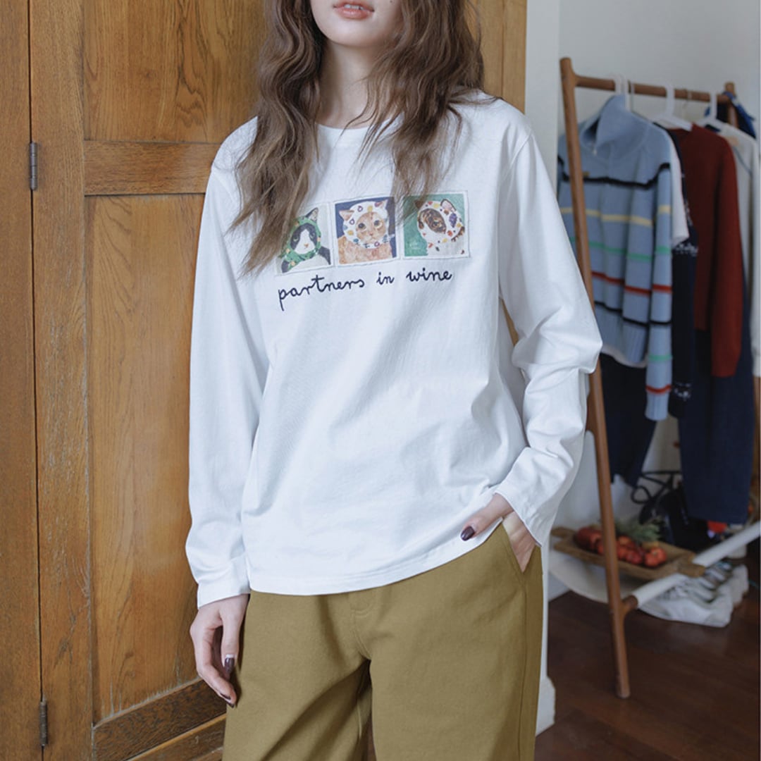 個性的なアニマルイラストと刺繍ロゴが目を引く、遊び心あふれるロングスリーブTシャツ。