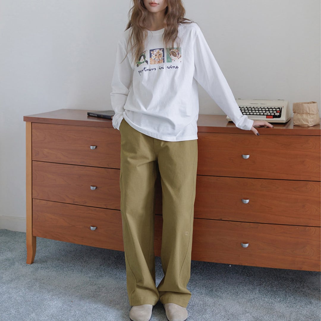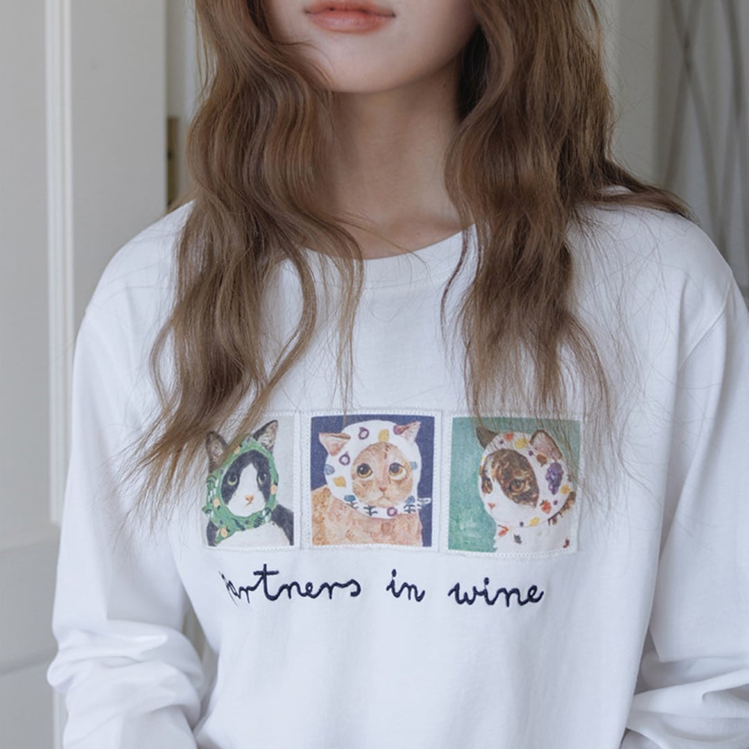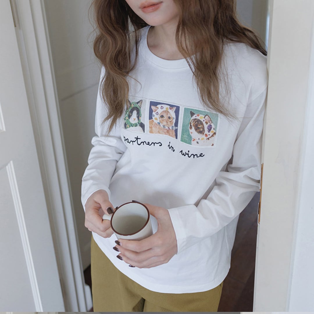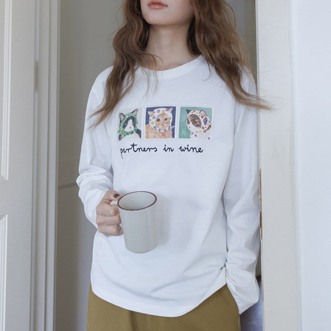 個性的なアニマルイラストと刺繍ロゴが目を引く、遊び心あふれるロングスリーブTシャツ。
