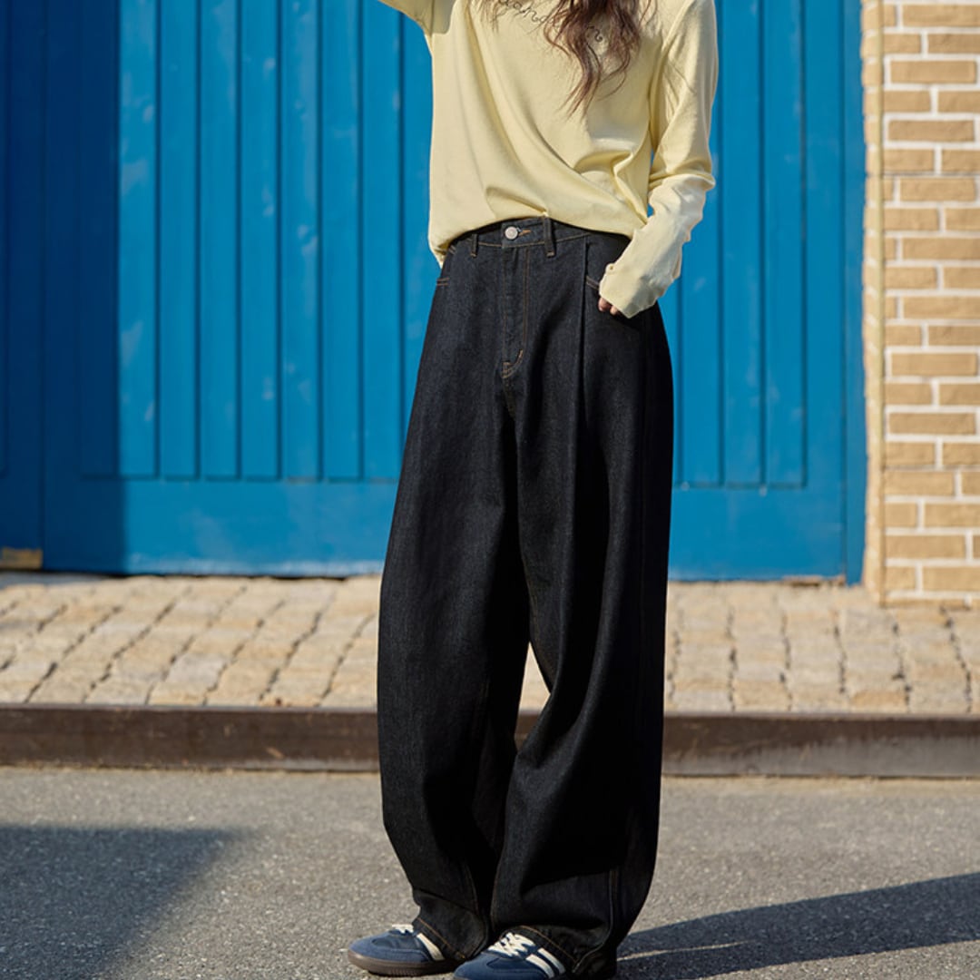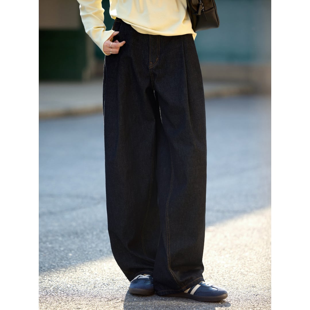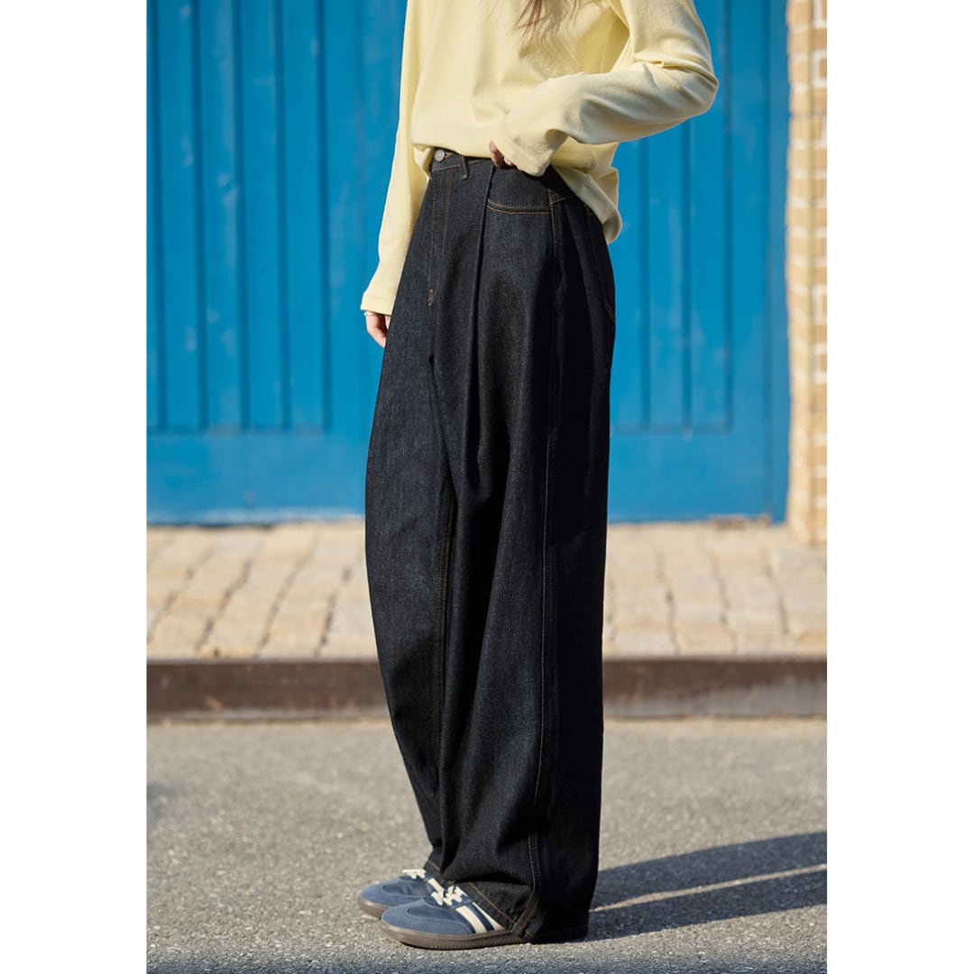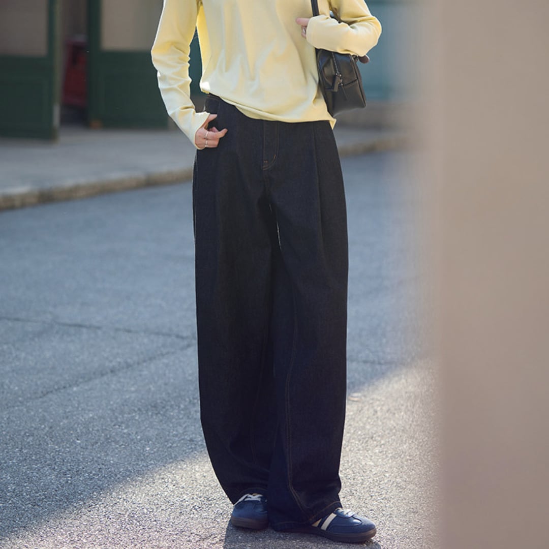 ゆったりとしたシルエットが魅力のワイドデニムパンツ。