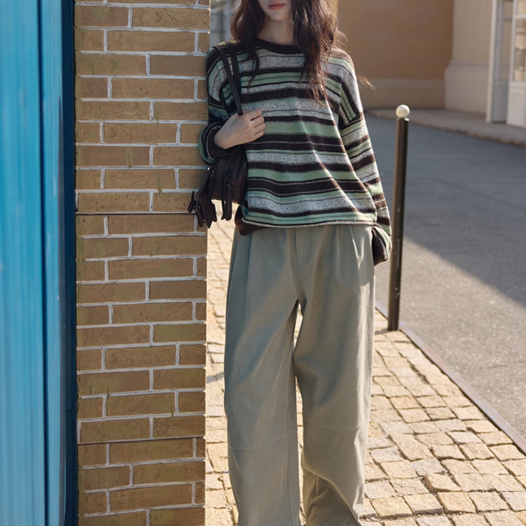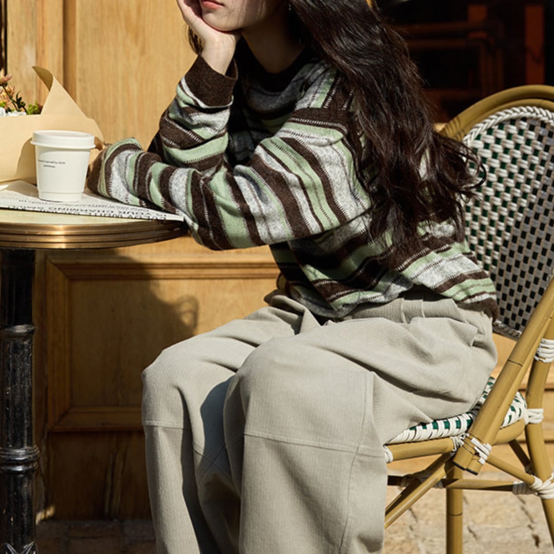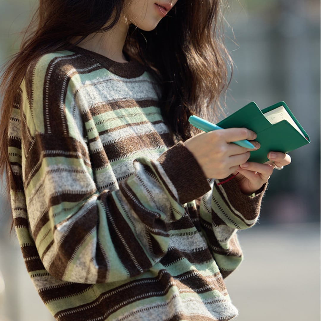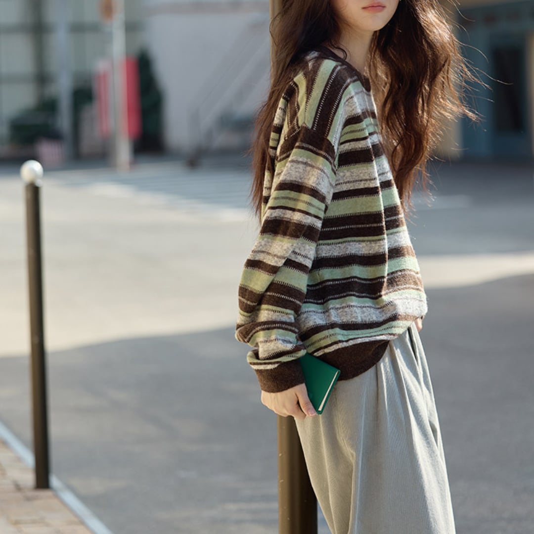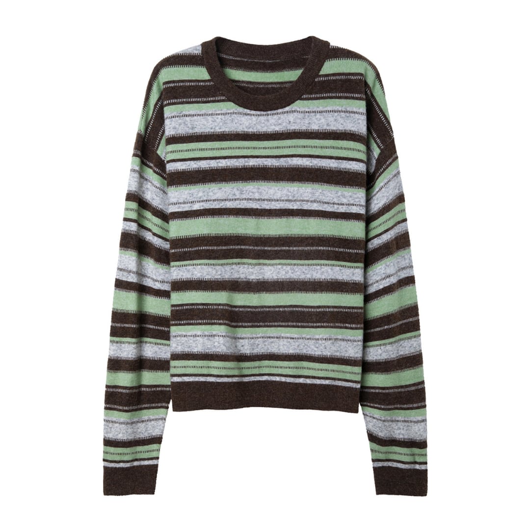 優しい配色のボーダー柄とふんわりとした風合いが魅力のニットプルオーバー。