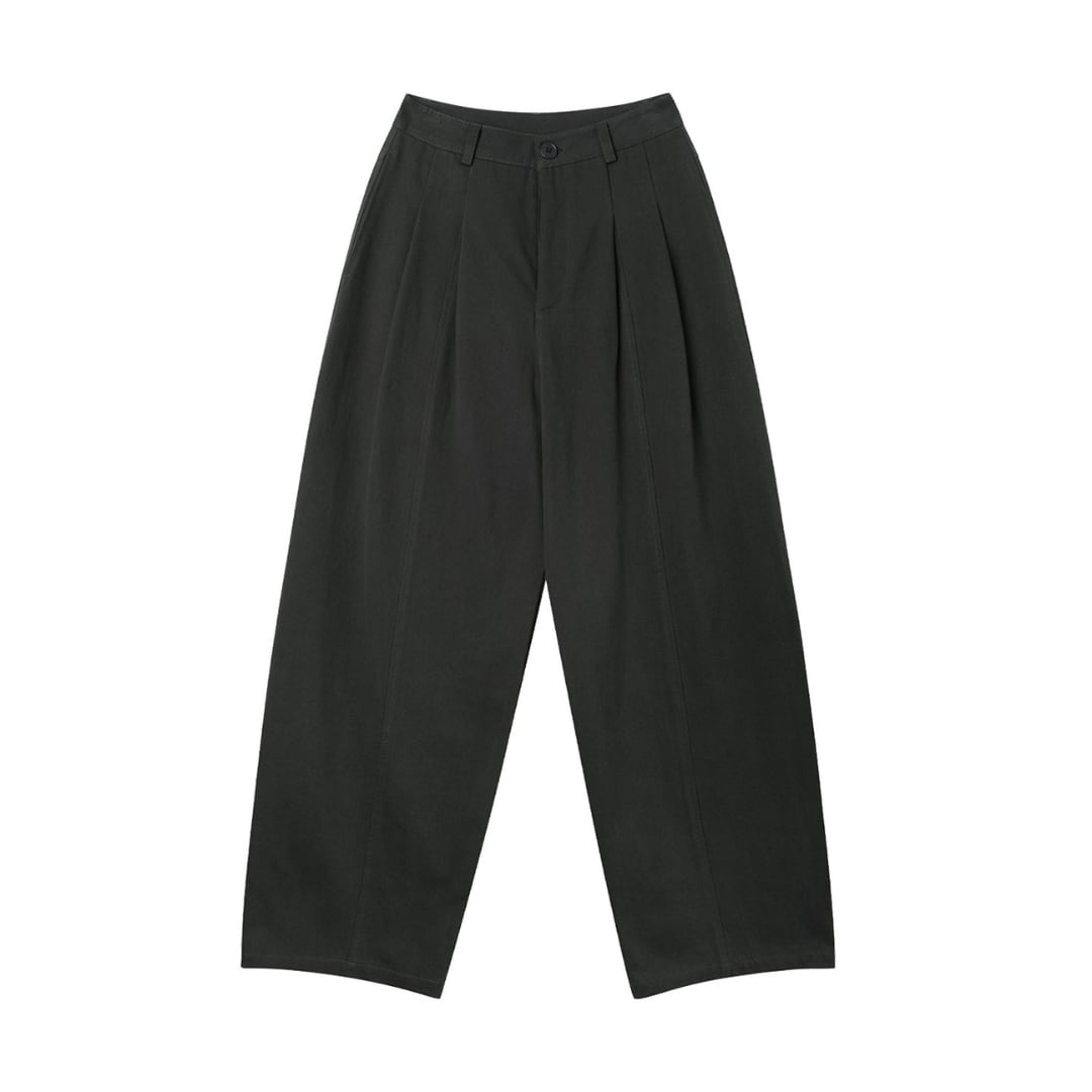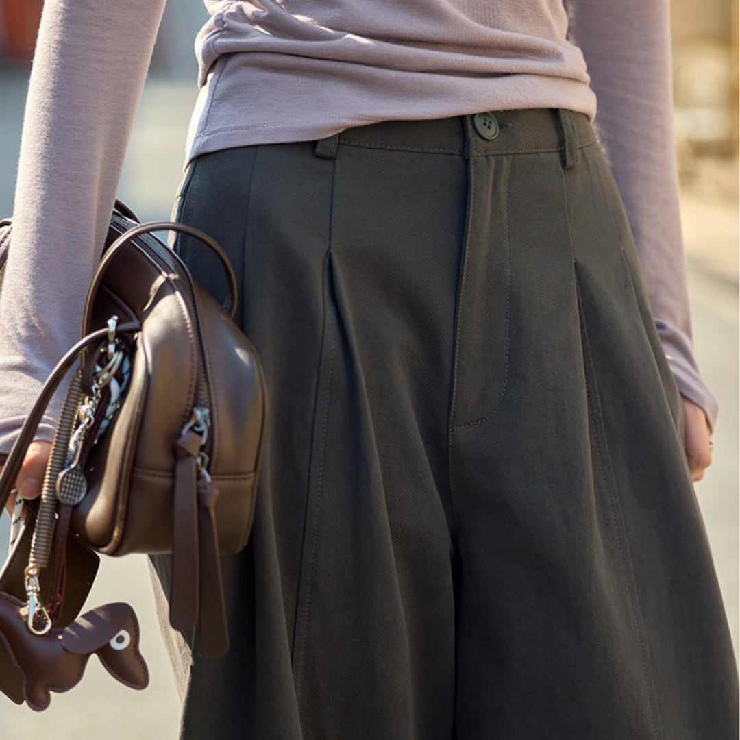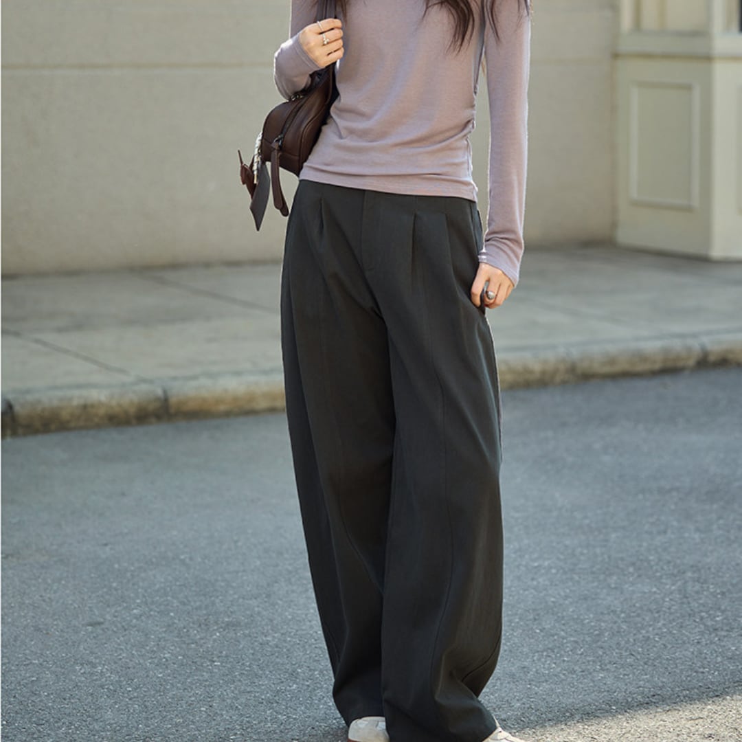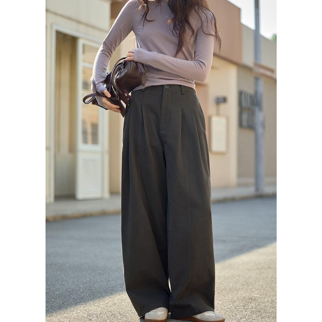 立体感のあるタックデザインが魅力の、ゆったりとしたシルエットのハイウエストパンツ。
