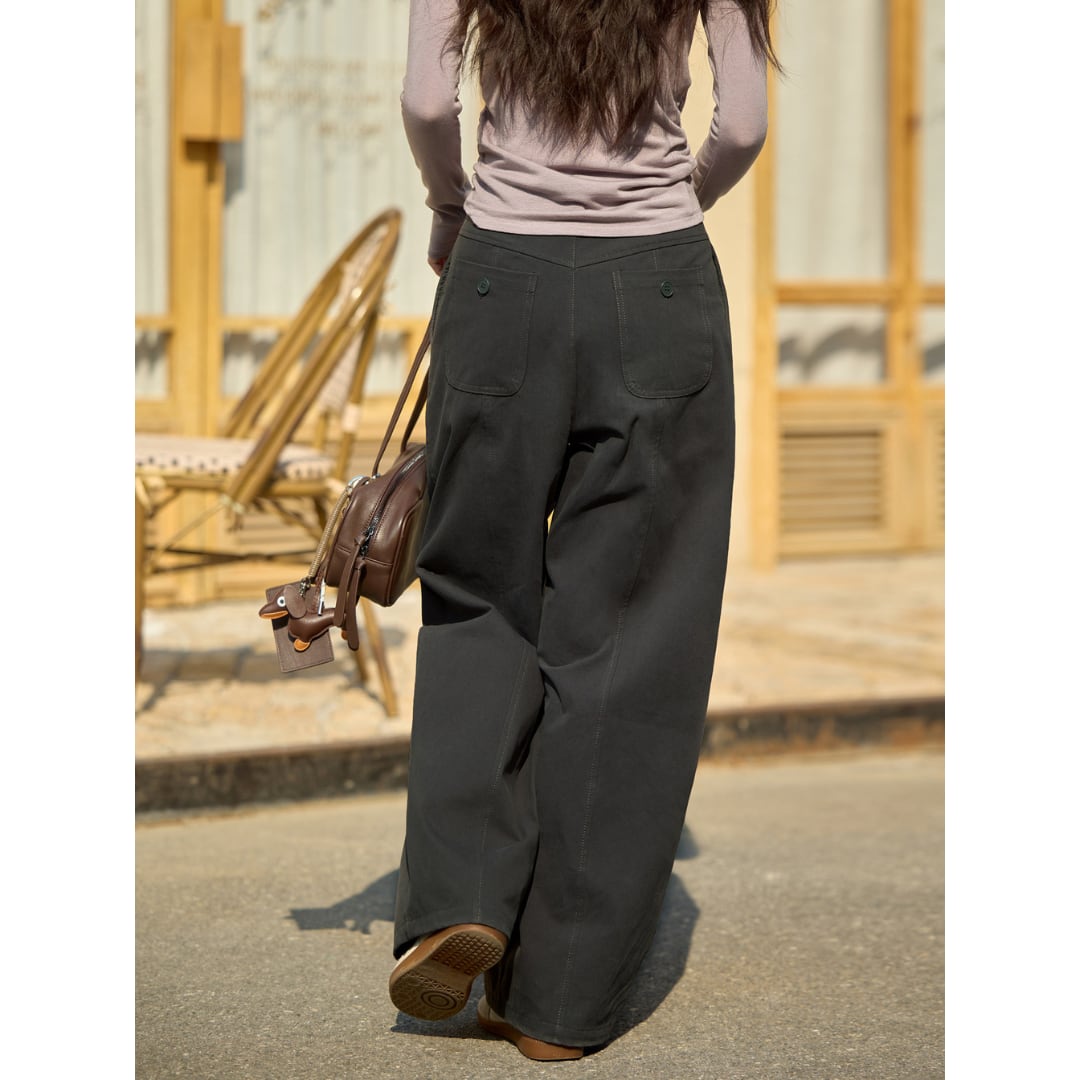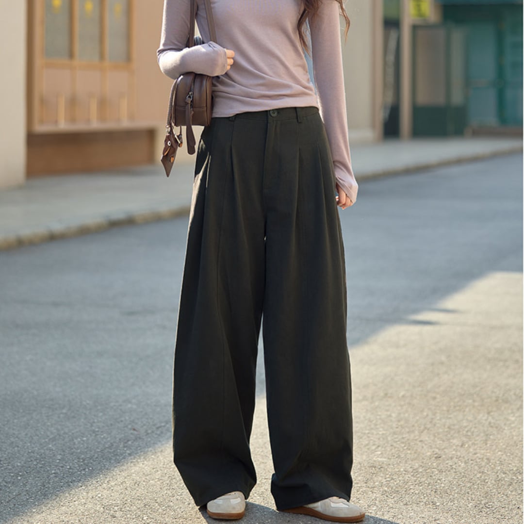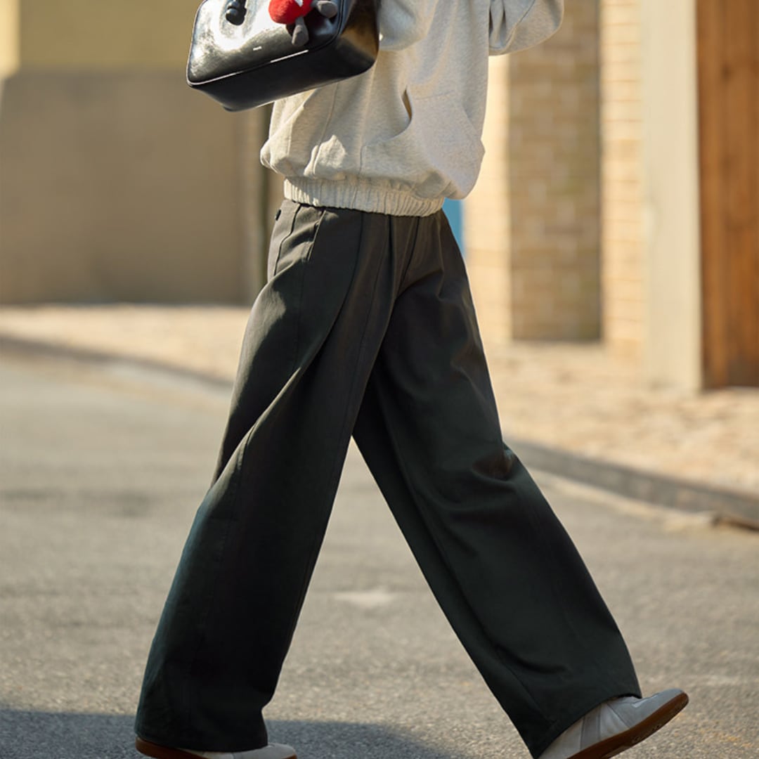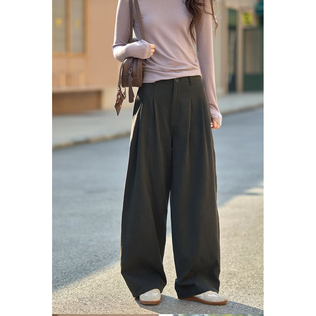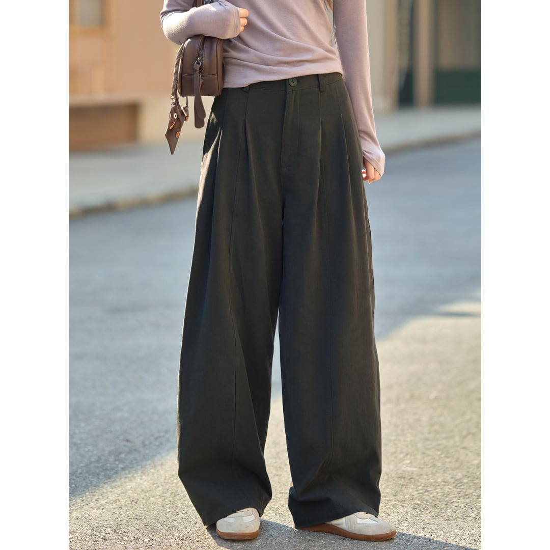 立体感のあるタックデザインが魅力の、ゆったりとしたシルエットのハイウエストパンツ。