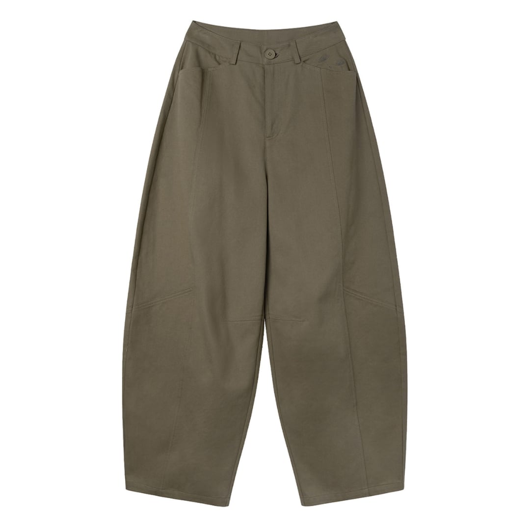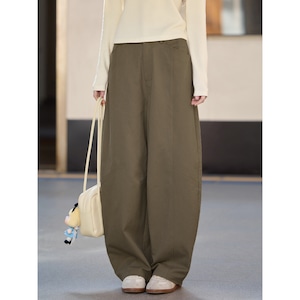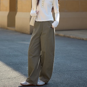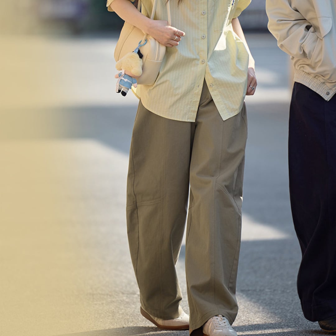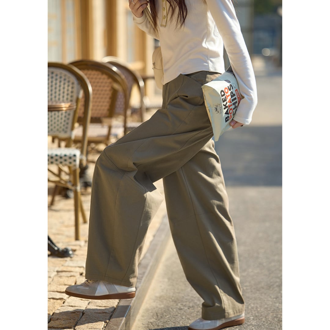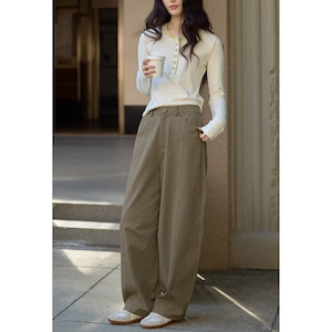 切り替えラインがさりげないアクセントになった、ゆったりとしたストレートシルエットのパンツ。