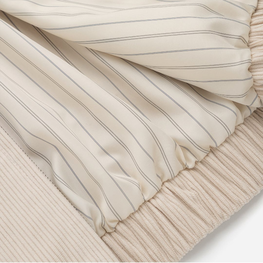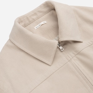 細かな畝のある生地とフロントジップ仕様が印象的な、程よくゆとりのあるシルエットのショートジャケットです。