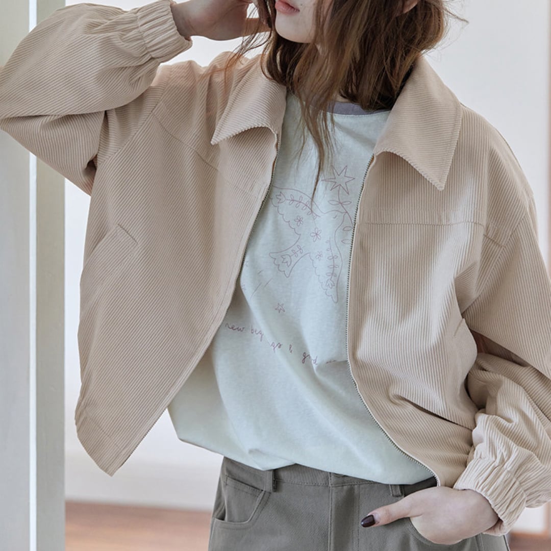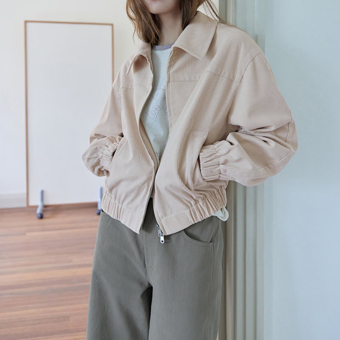 corduroy zip up short jacket