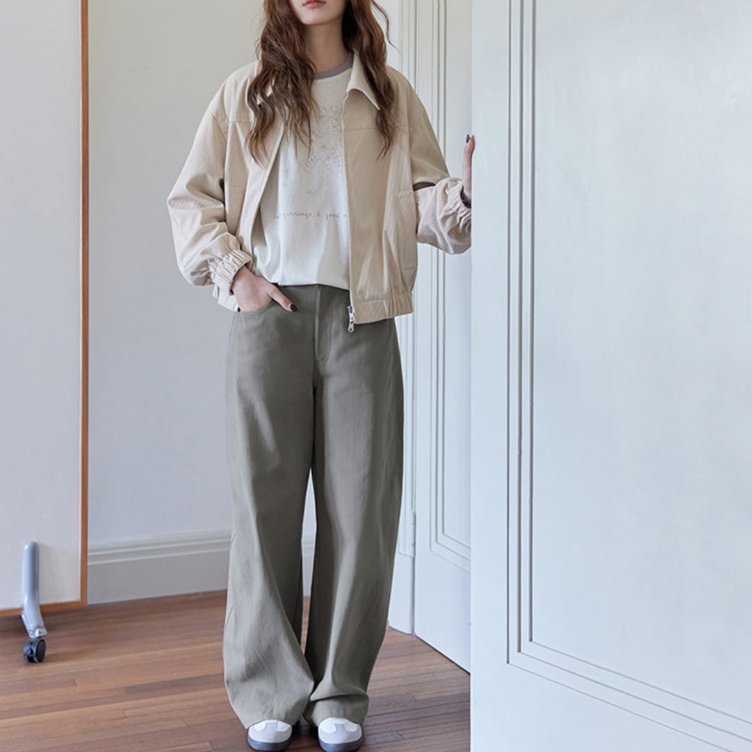 コンパクトな丈感でボトムとのバランスが取りやすく、春先の軽い羽織りとしてデイリーコーデに取り入れやすい一着です。
