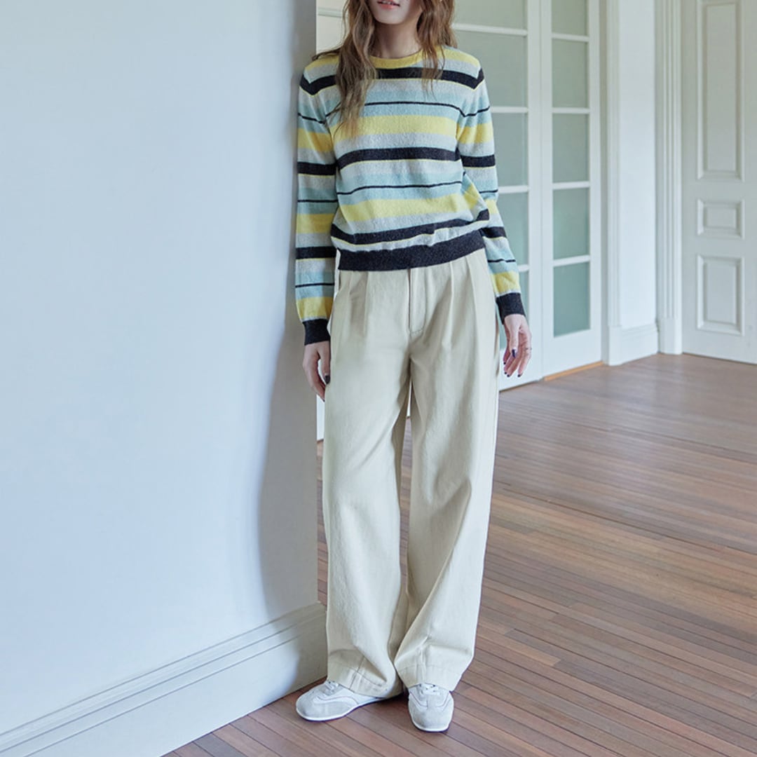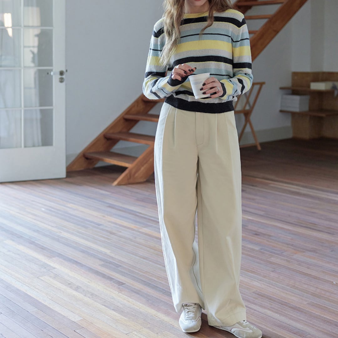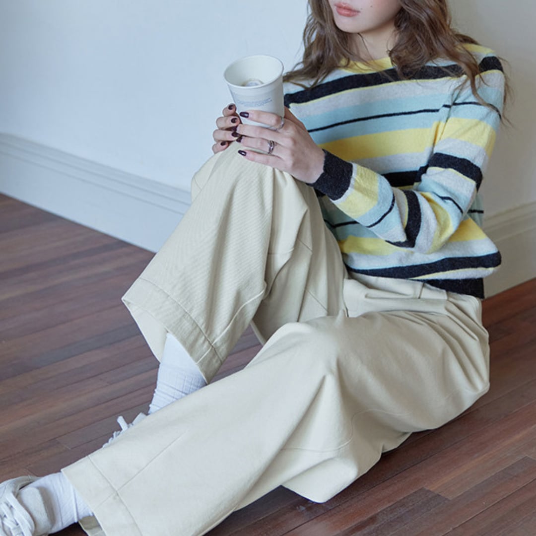 脚のラインを拾いにくいデザインで体型カバーにも役立ち、春の軽やかなトップスと合わせたデイリーコーデに活躍します。