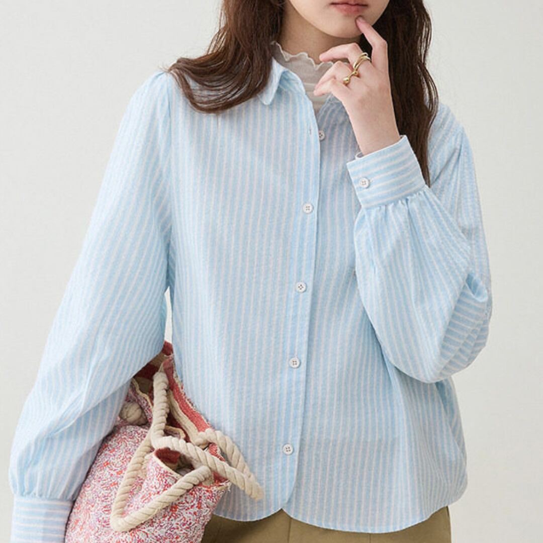 デニムやスラックス、スカートなど幅広いボトムスと合わせやすく、通勤から休日のお出かけまで活躍する一枚。春や初夏の軽やかなコーディネートにも取り入れやすいアイテムです。