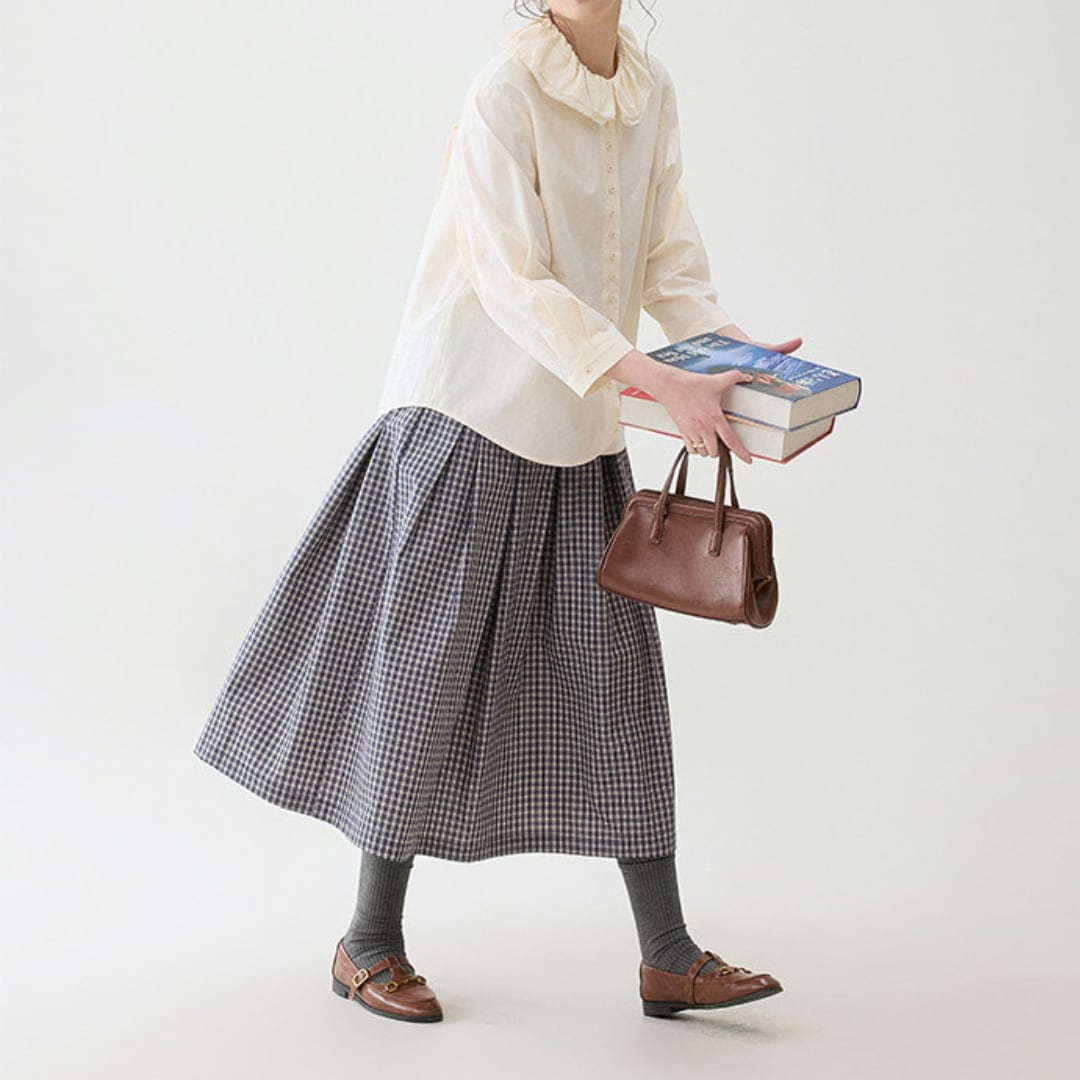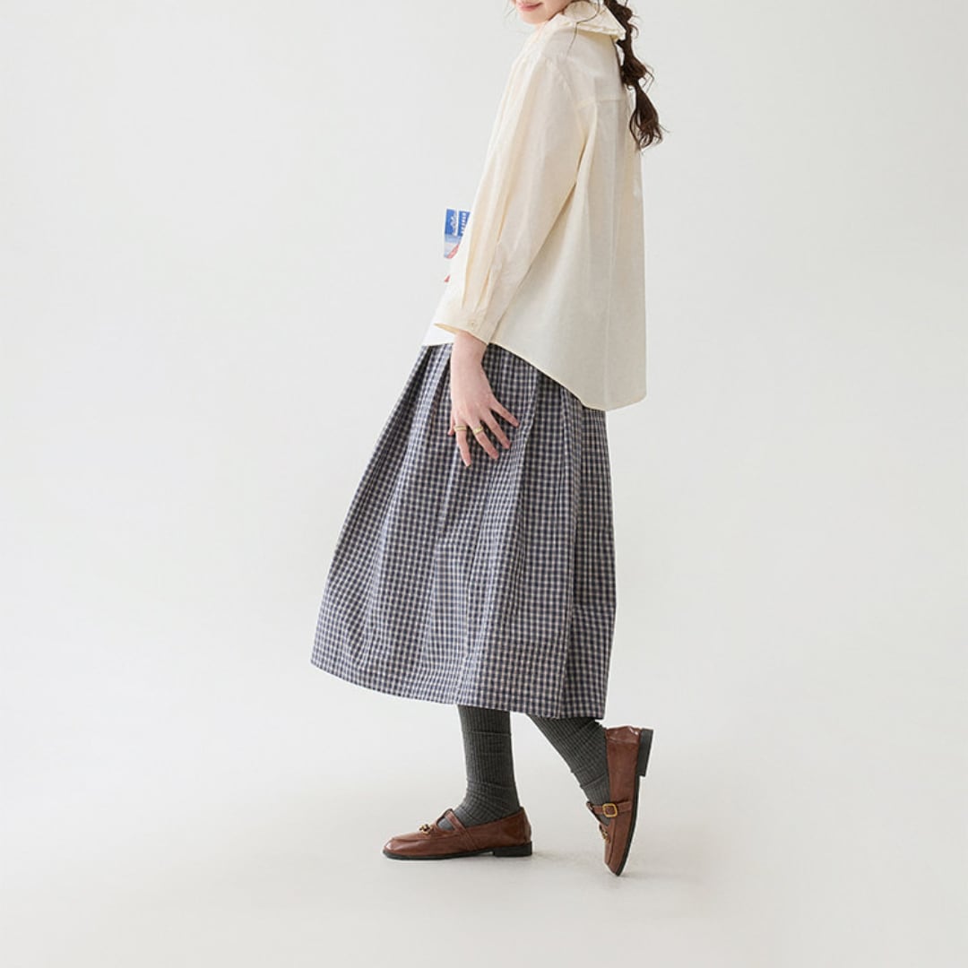 ゆったりとしたシルエットと丸みのある裾ラインが、ナチュラルで女性らしいスタイリングを演出します。
