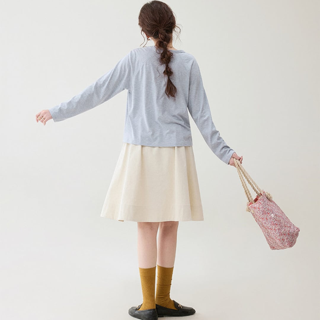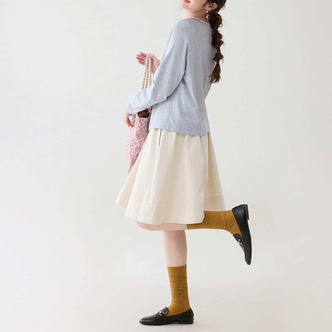ラグランスリーブの柔らかなラインと程よくゆとりのあるシルエットが、自然体でリラックス感のある雰囲気を演出します。
