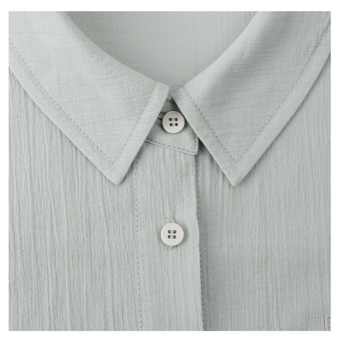 胸元のポケットとゆったりとしたシルエットが特徴の、軽やかな着心地のショート丈シャツジャケット。