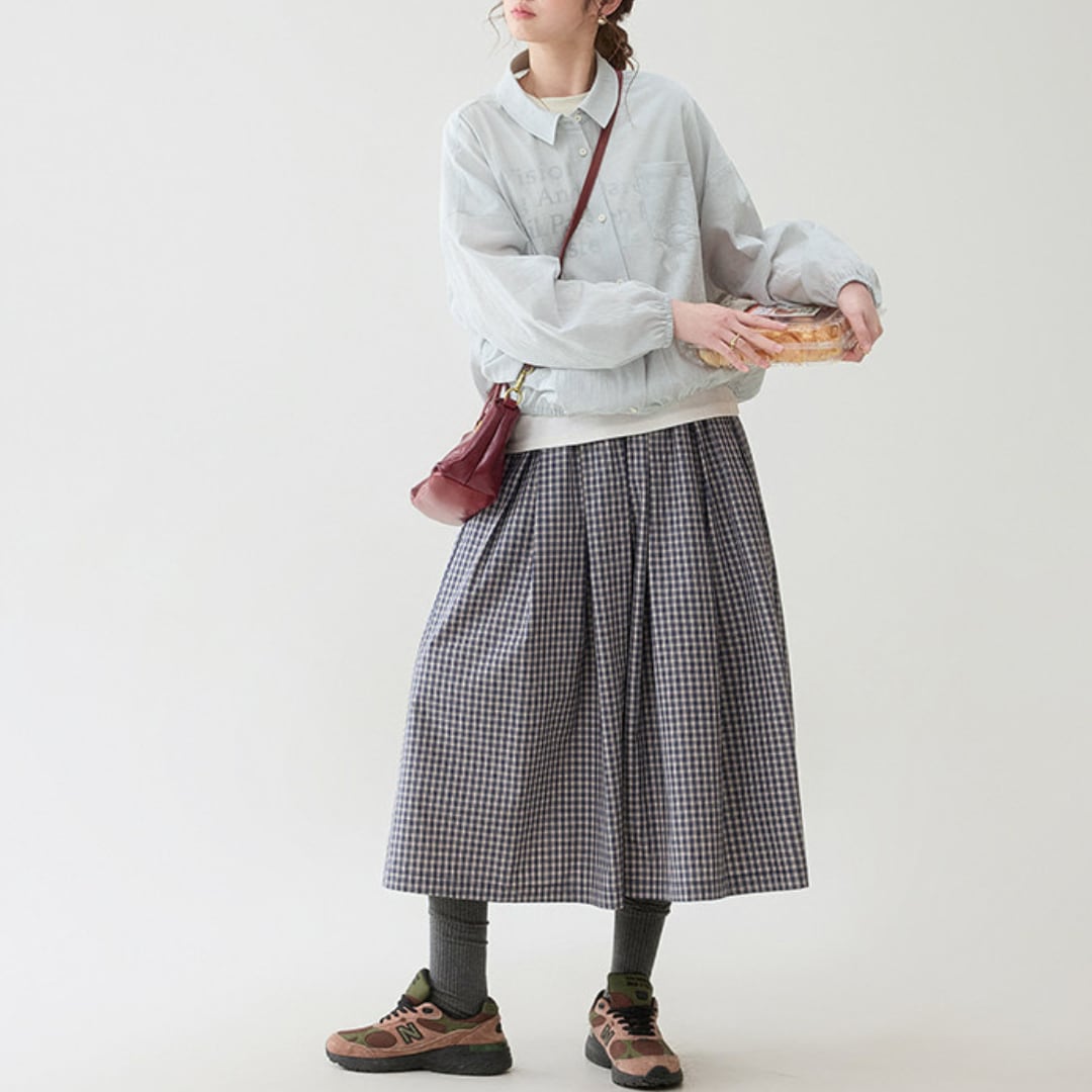 ワンピースやスカート、デニムなどさまざまなアイテムと合わせやすく、日常のお出かけからリラックスしたスタイルまで幅広く活躍します。