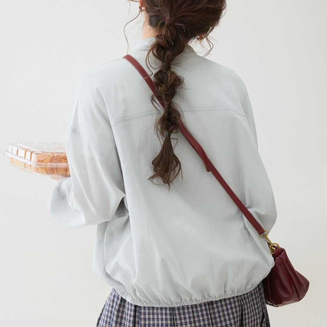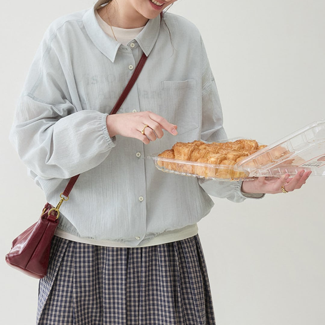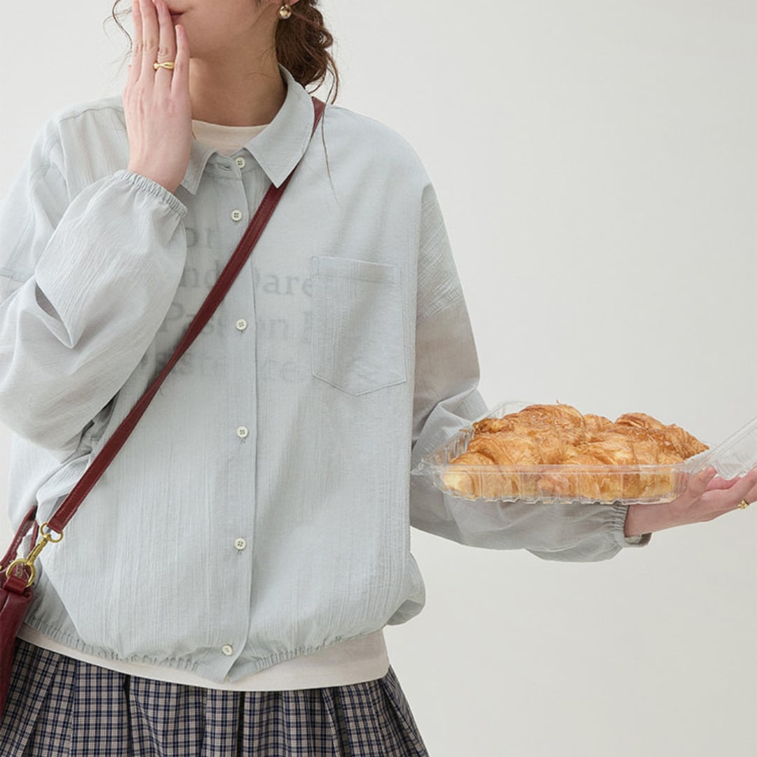 軽く羽織れる薄手素材で、季節の変わり目や春のデイリーコーデに取り入れやすい一枚。