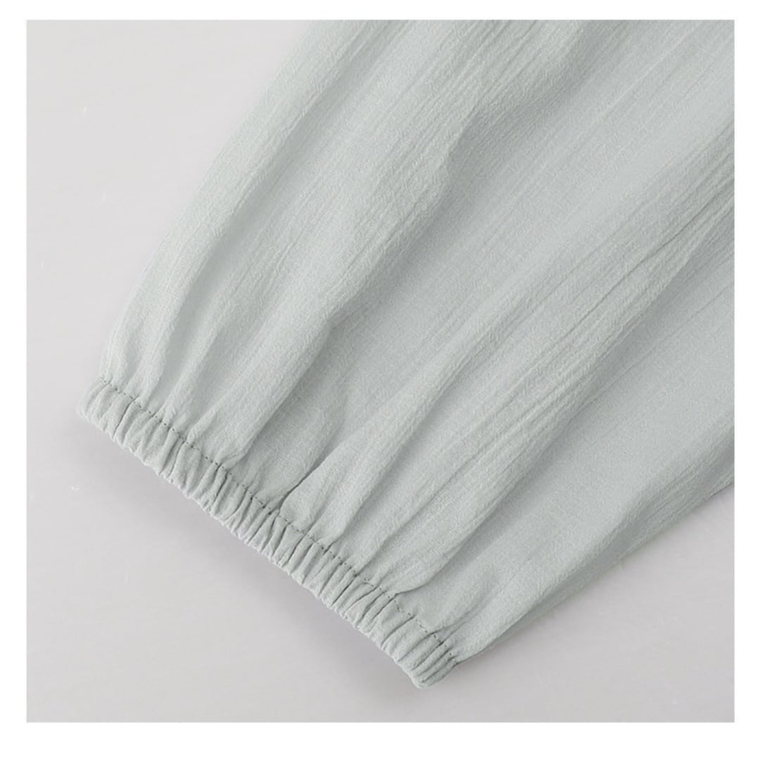 ドロップショルダーの柔らかなラインと程よくボリュームのある袖デザインが、カジュアルで抜け感のある雰囲気を演出します。
