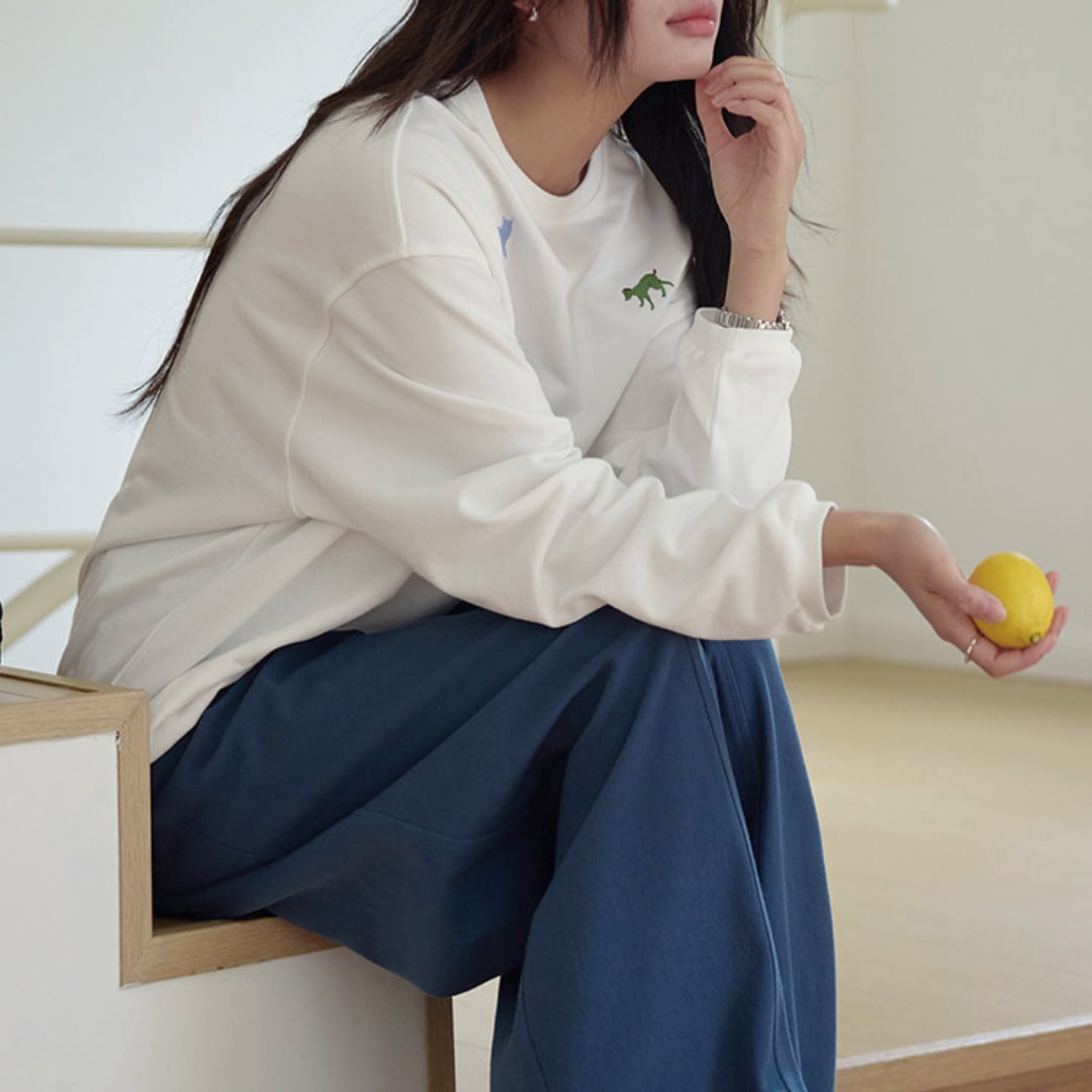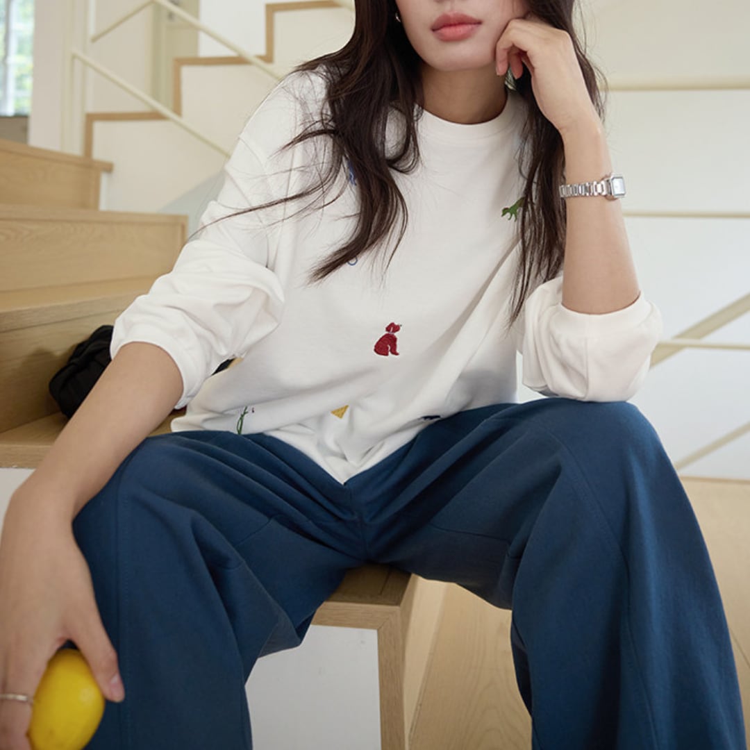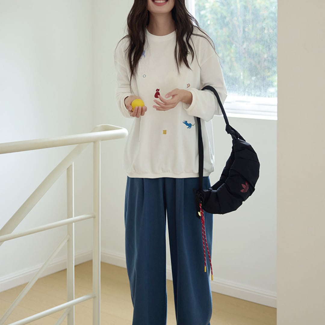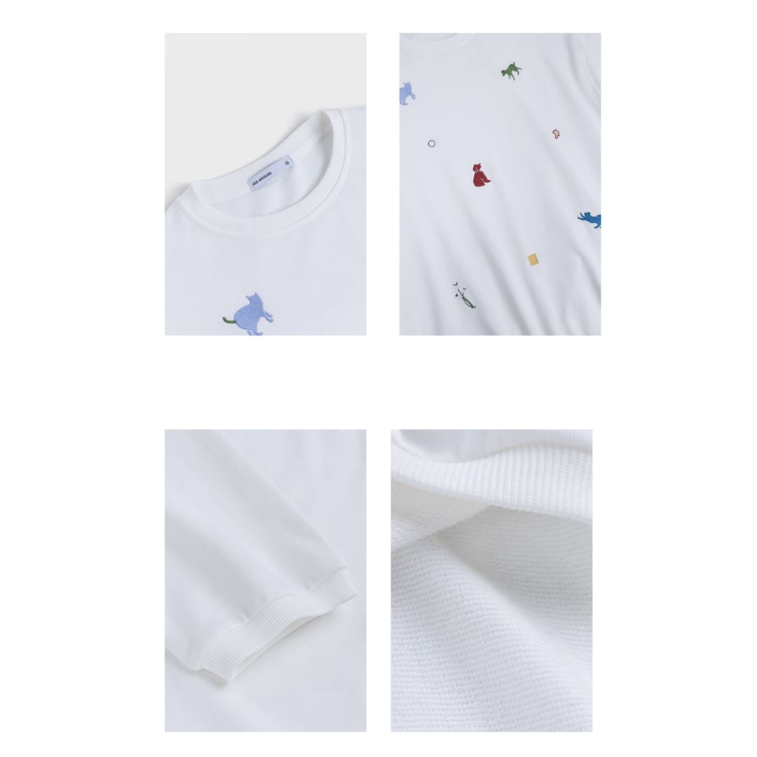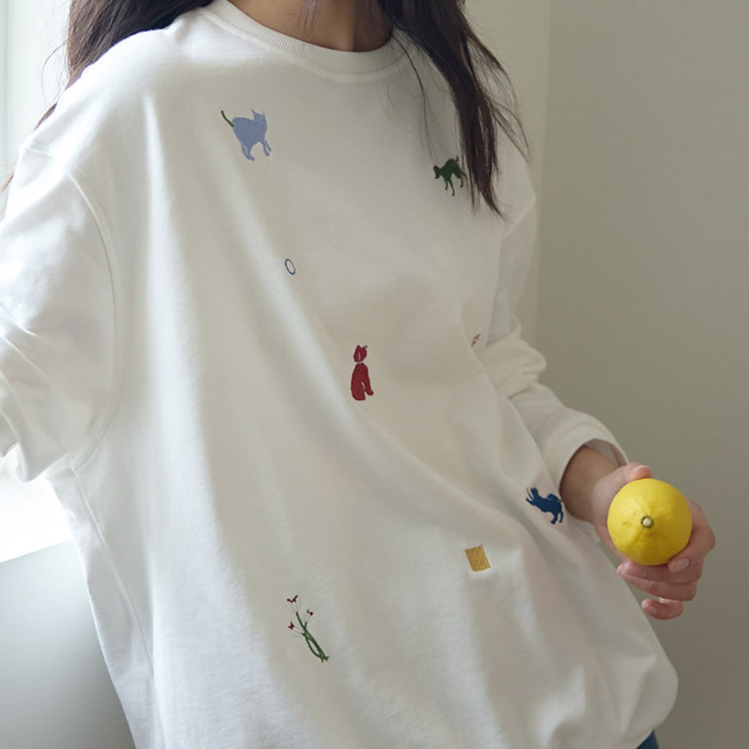 さまざまなアニマルモチーフの刺繍を散りばめた、遊び心のあるデザインが魅力のルーズシルエットスウェット。シンプルなベースにカラフルな刺繍がアクセントとなり、程よくゆとりのあるシルエットでリラックス感のある着こなしを楽しめる一着。