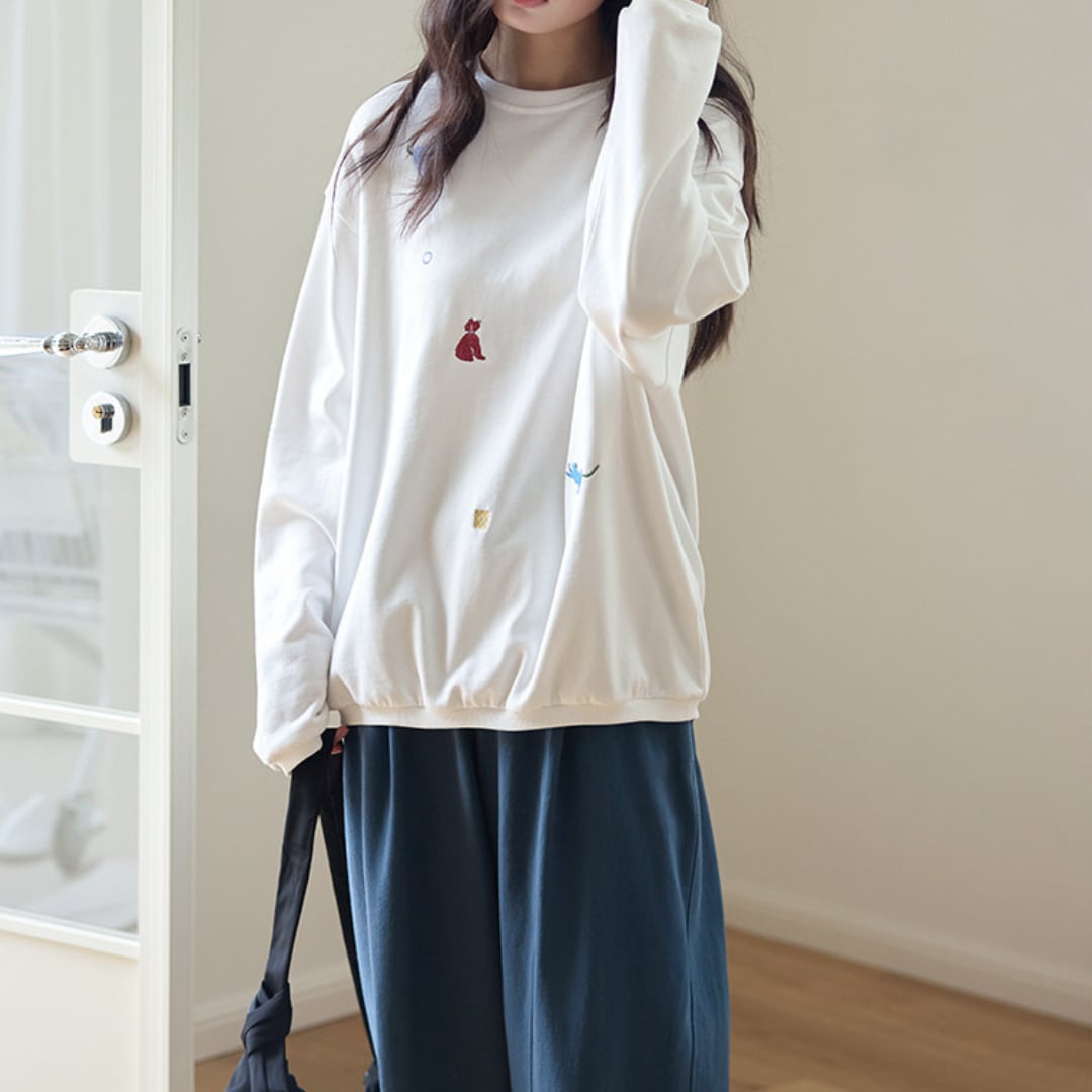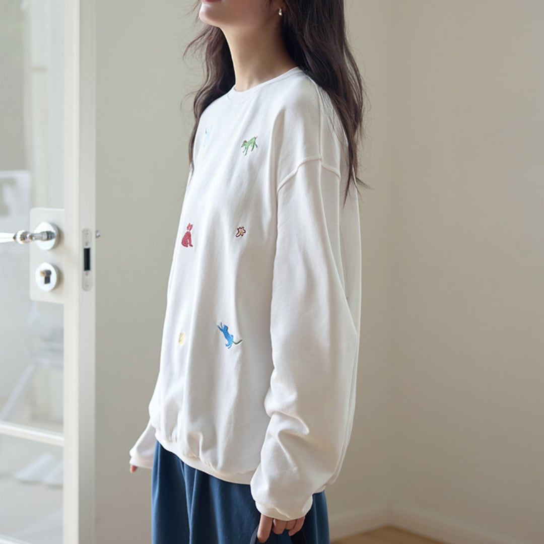 animal embroidery loose sweatshirt