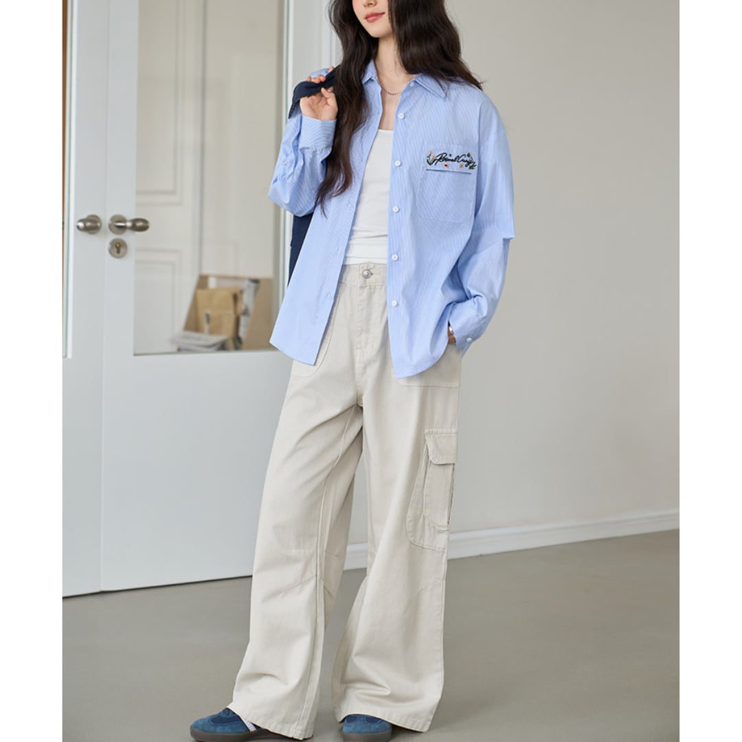 程よくリラックス感のあるシルエットで動きやすく、Tシャツやシャツと合わせるだけで春から秋の通勤コーデや休日のお出かけ、日常のカジュアルスタイルに幅広く活躍します。