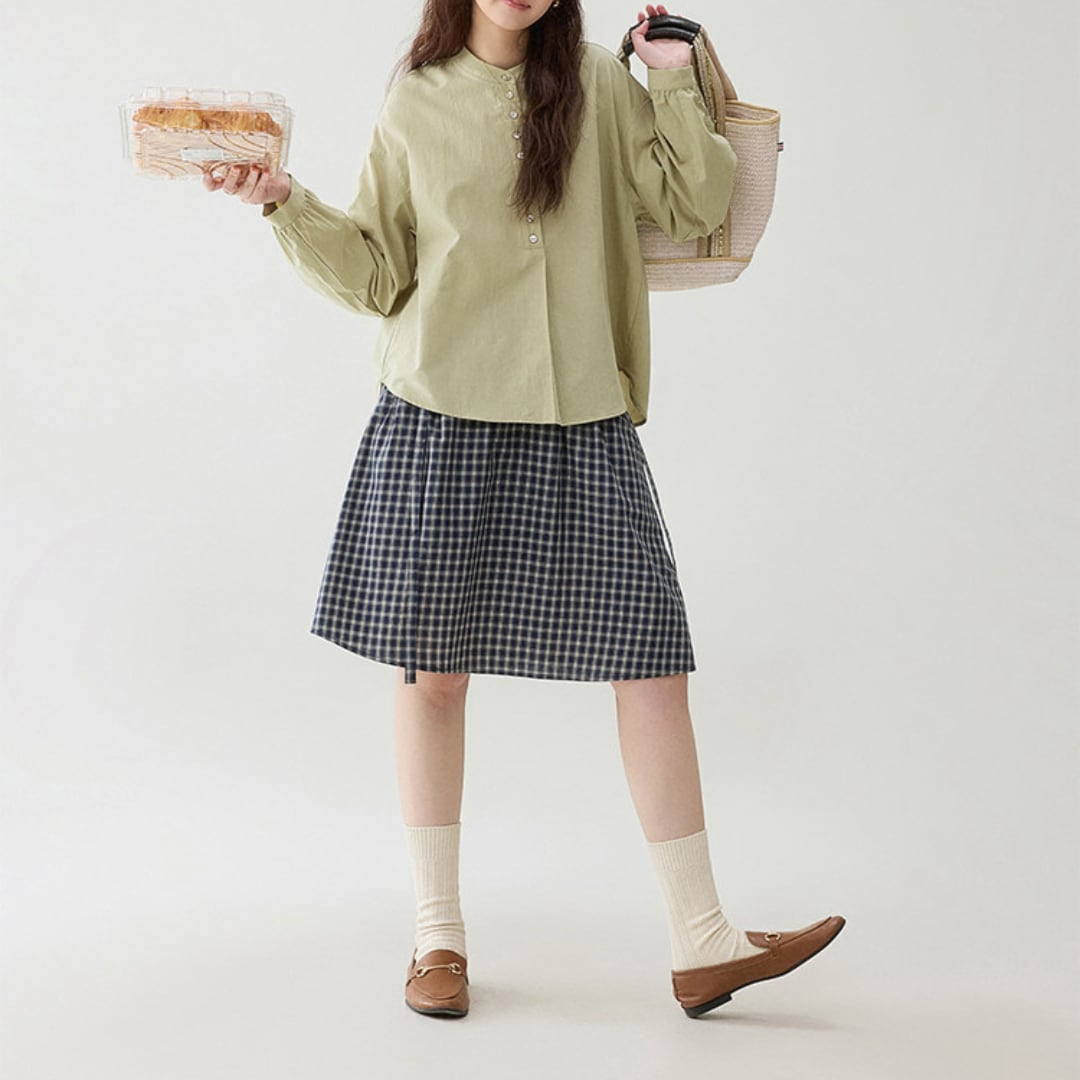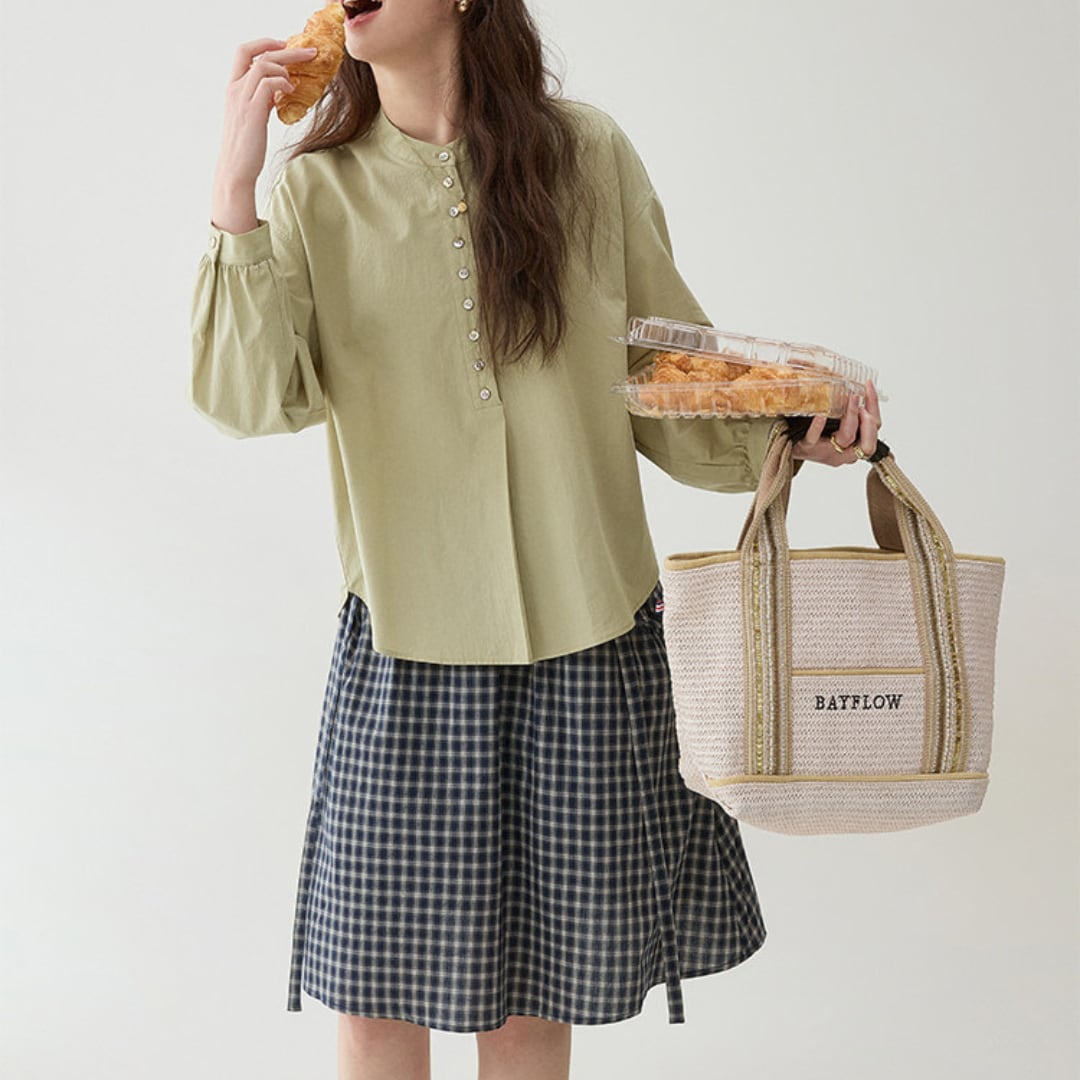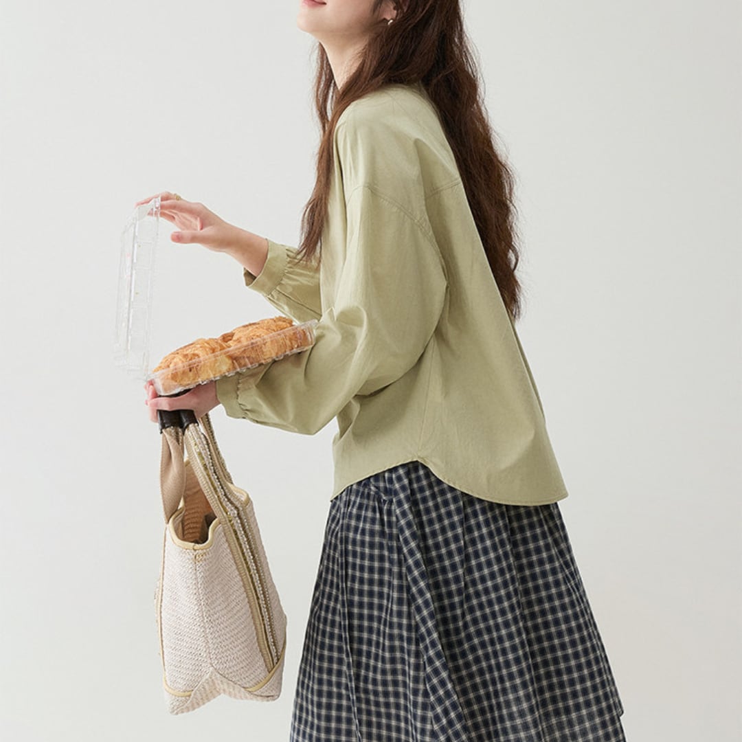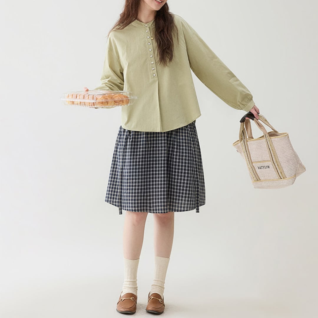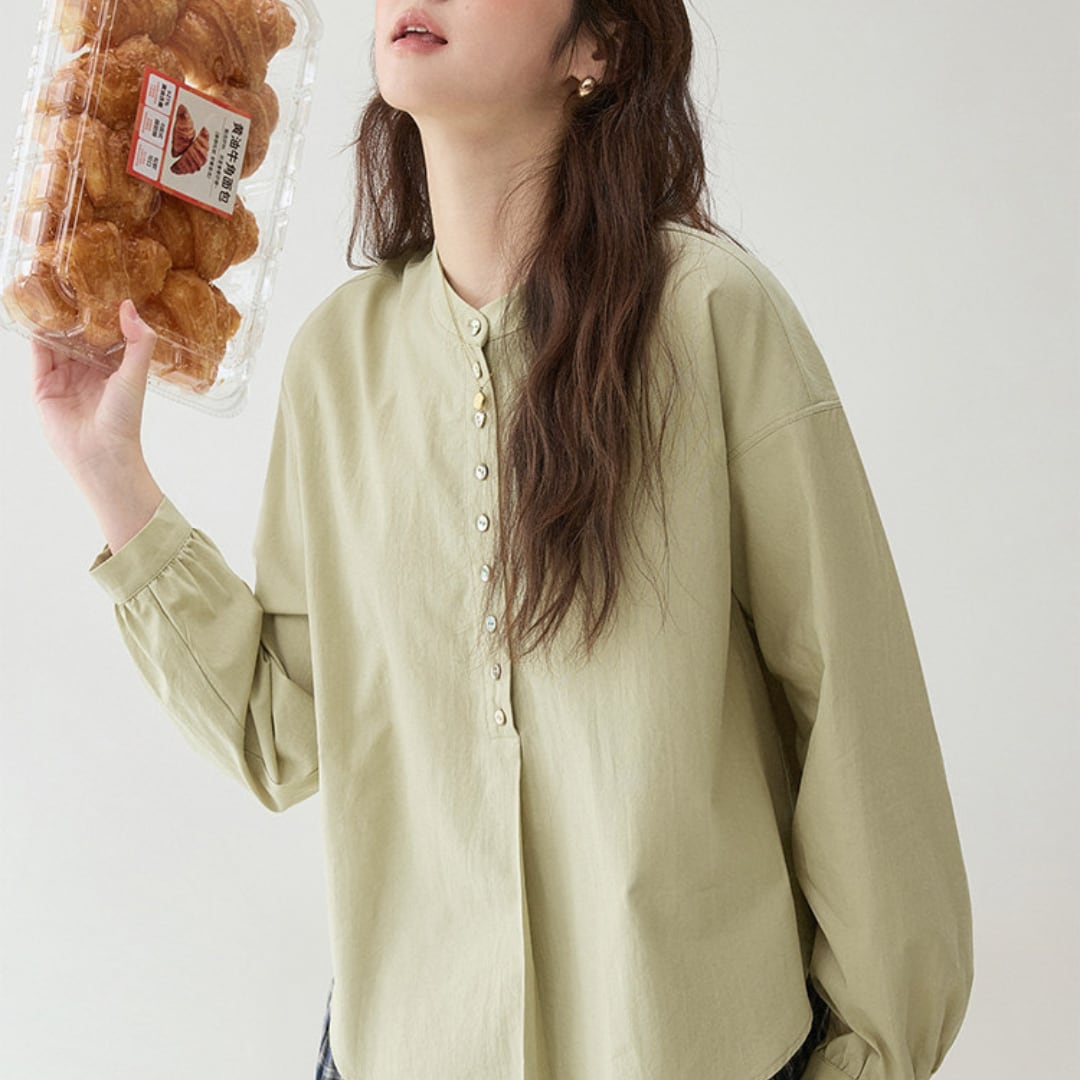 button front loose blouse