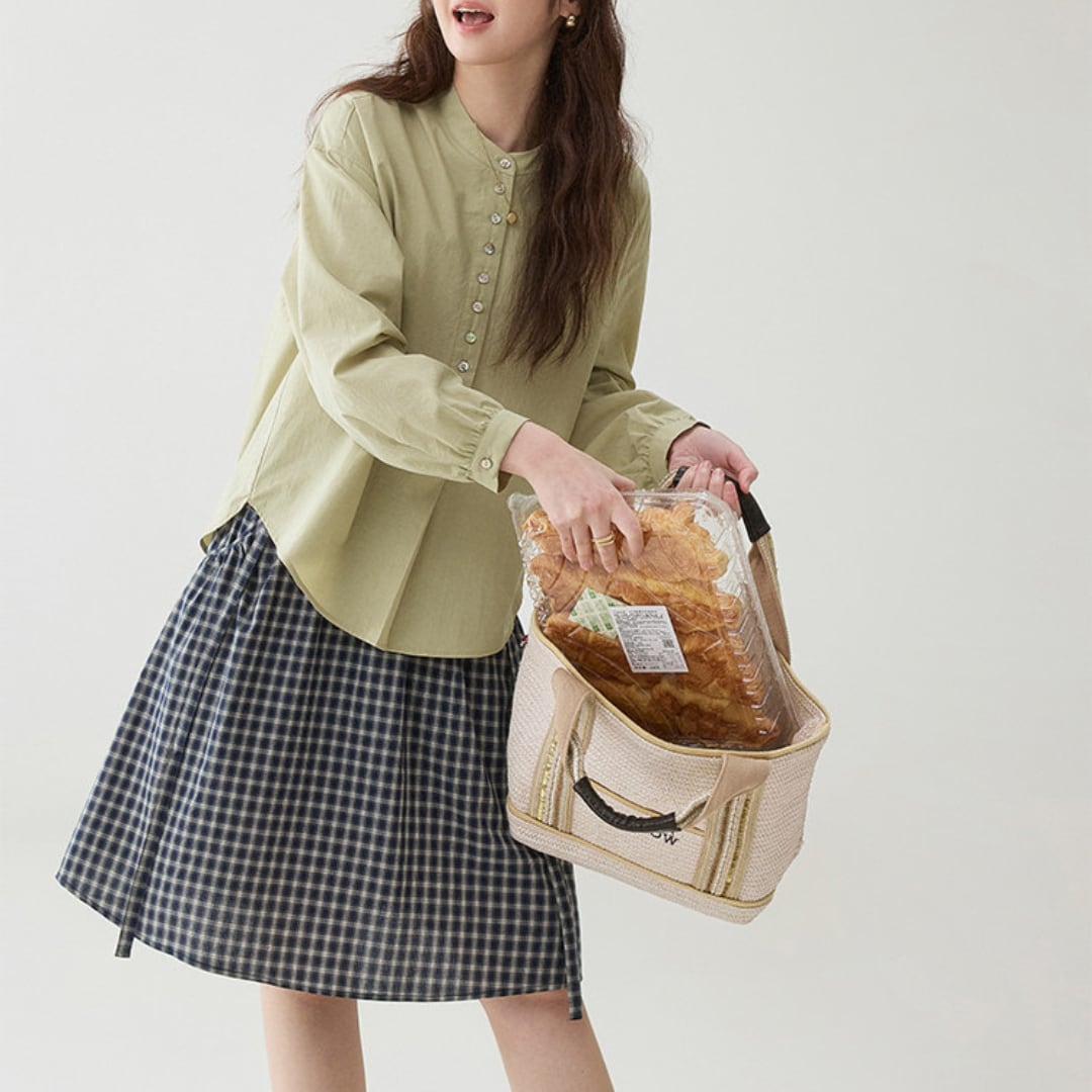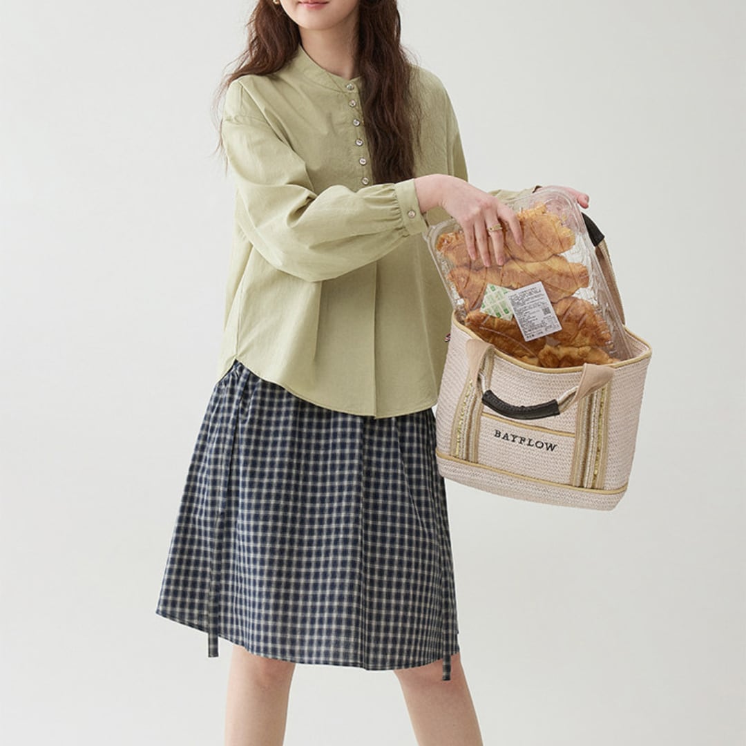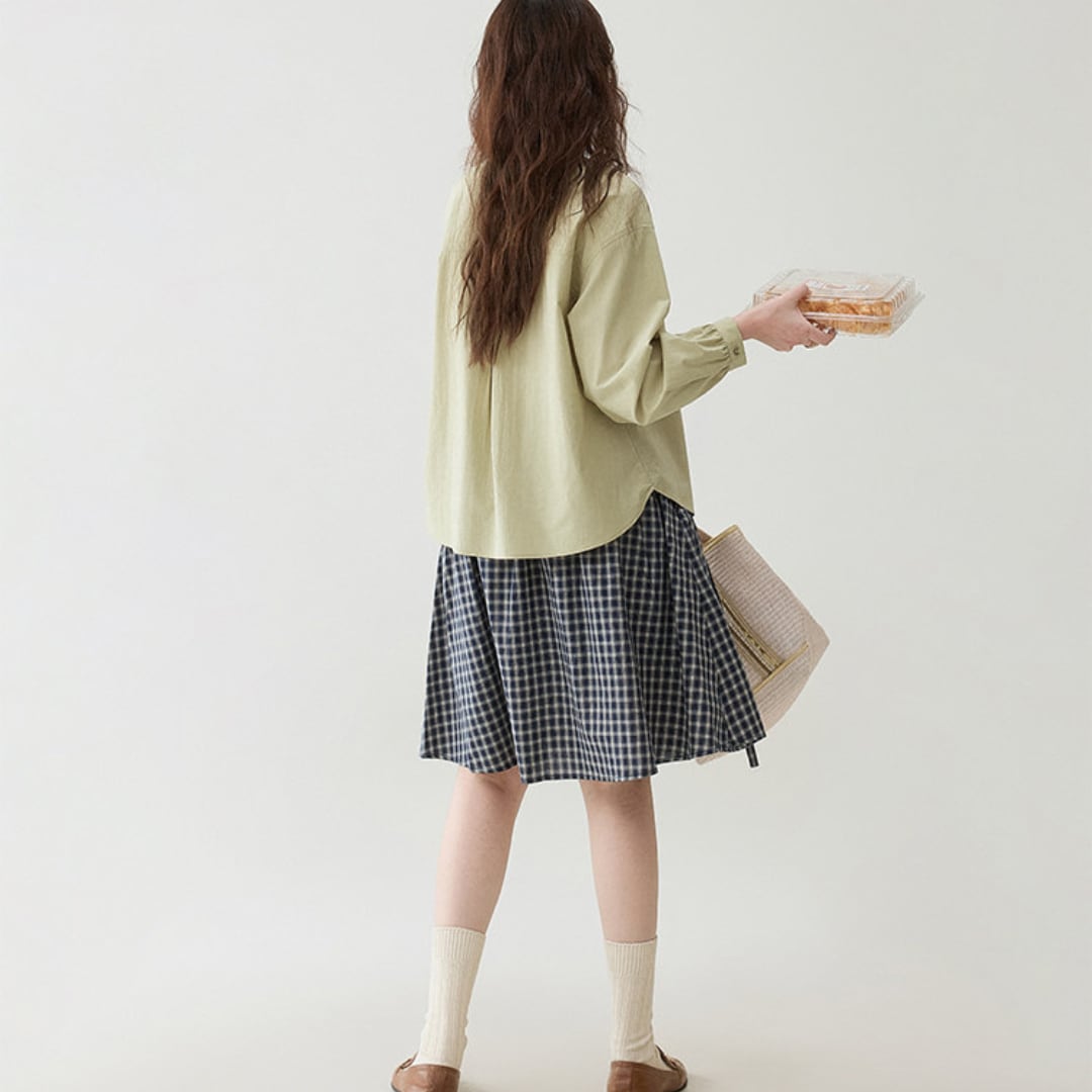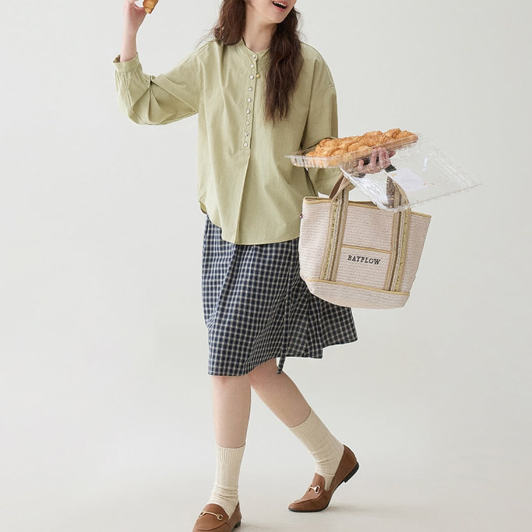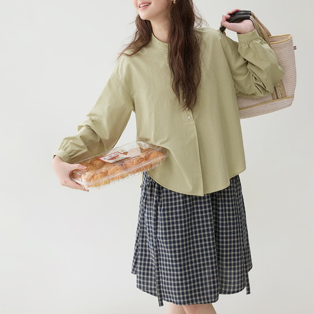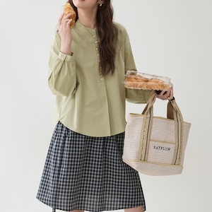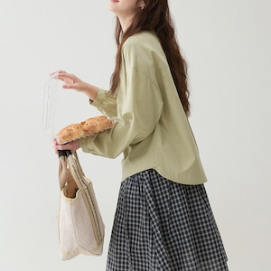 通気性の良い素材で季節の変わり目にも快適に着用でき、スカートやパンツと合わせて日常使いから軽やかな外出スタイルまで幅広く活躍する一枚です。