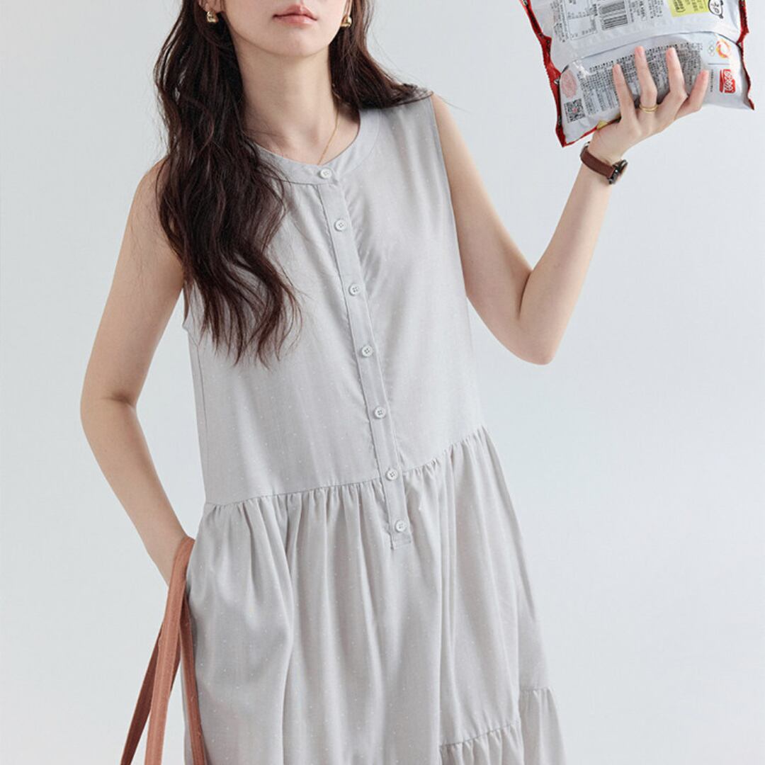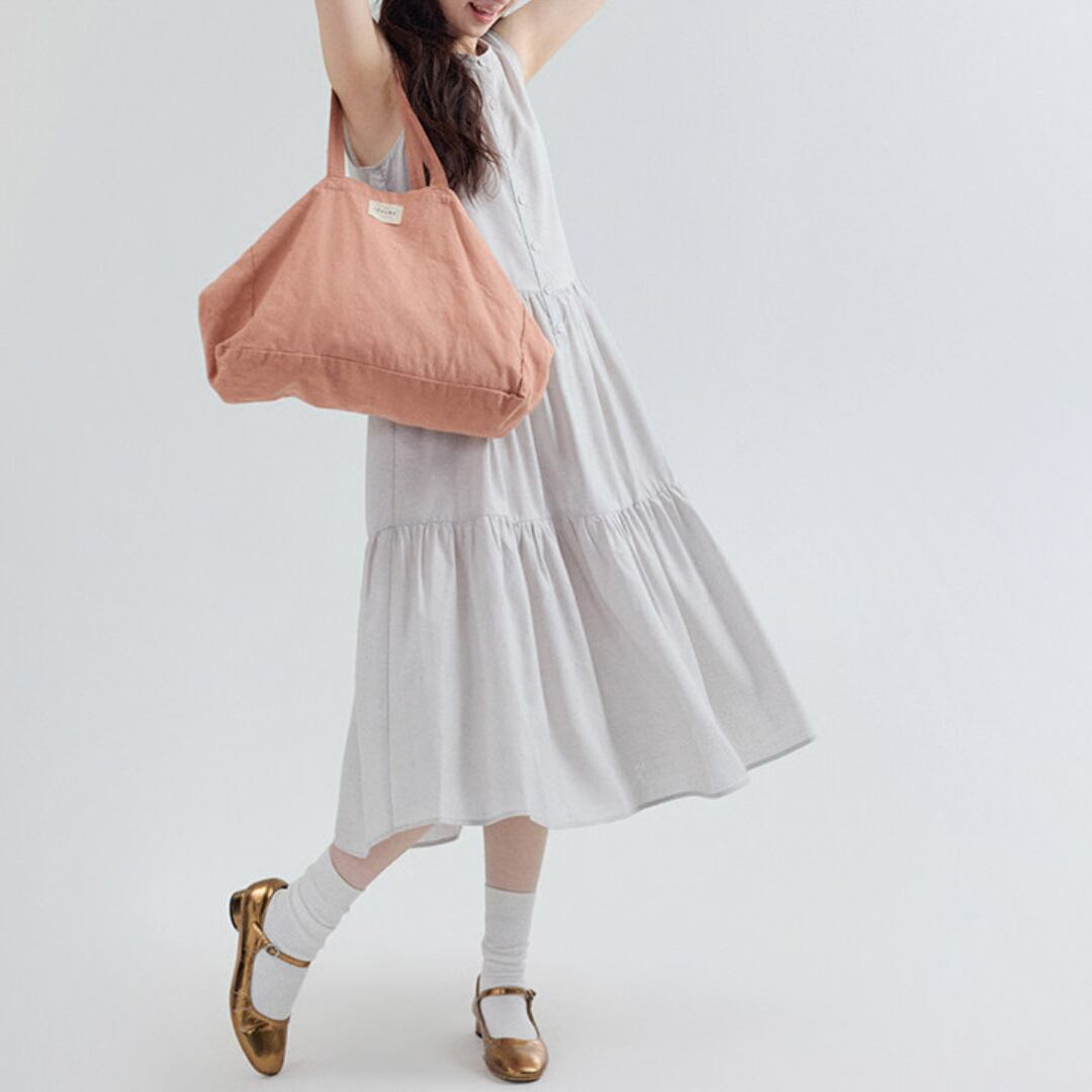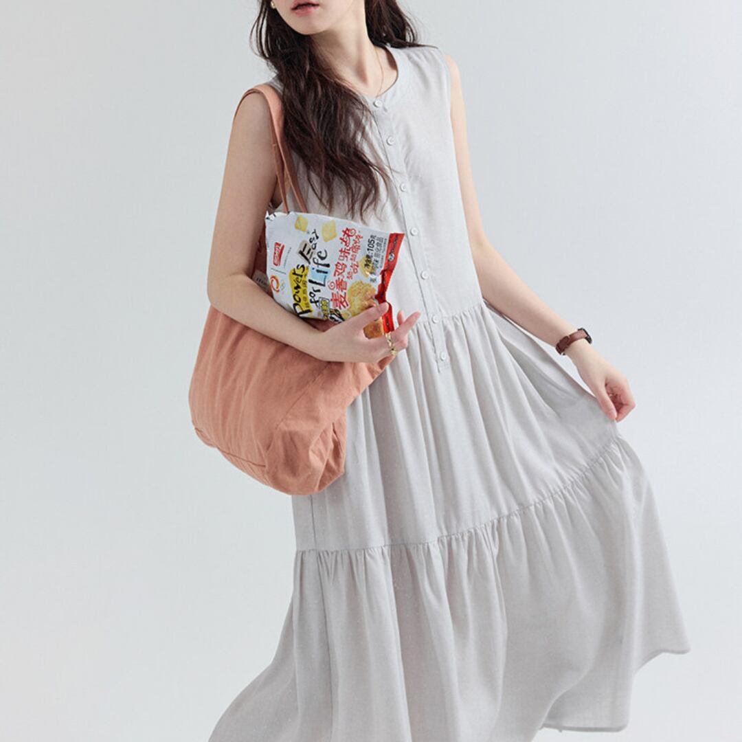 やわらかな生地感とふんわり広がるティアードデザインが軽やかな動きを生み出す、ナチュラルで上品な印象のノースリーブワンピースです。