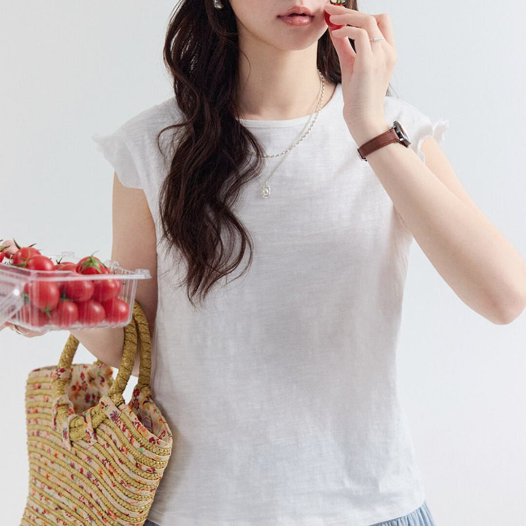 肩まわりをやさしく包み込むフレンチスリーブとミニマルなデザインが魅力の、すっきりとした印象のシンプルカットソーです。 軽やかな着心地でボトムスを選ばず合わせやすく、デニムやスカートと組み合わせて春夏のデイリーコーデに幅広く活躍する一枚です。 【カラー】 ネイビー、ホワイト 【サイズ】 S 着丈:55cm 胸囲:86cm 肩幅:43cm M 着丈:56cm 胸囲:90cm 肩幅:44cm L 着丈:57cm 胸囲:94cm 肩幅:45cm モデル身長168cm 着用サイズM 【素材】 綿100% ♦︎選べるお支払い方法 ・クレジットカード決済(VISA/Master/JCB/AMEX) ・キャリア決済(docomo/au/Softbank/Y!mobile) ・Amazon pay(ご利用不可の期間あり) ・Pay-easy ・後払い決済 ✴︎ Erz. ranking top 10 ✴︎ こちらから↓ https://www.erzofficial.com/categories/3617358 [ pickup item]イチオシアイテム↓ https://www.erzofficial.com/categories/3558579 Erz.がご提案する大人のレトロカジュアルって? https://www.erzofficial.com/blog/2021/09/06/123341 【お届けについて】 こちらの商品は海外店舗より直接発送となる為、 ご入金から最短10日〜4週間前後で発送致します。 ◼️注意事項 ・タイミングによっては 商品在庫切れにより 注文キャンセルとさせていただく恐れもございますので、予めご了承くださいませ。 ・こちらは輸入品となります。日本製とは検品基準が異なる為、 ・新品未使用品でもごくわずかな汚れや ほつれがある場合もございます。 ・明らかな不良があった場合お手数ですが、お早めにご連絡をお願い致します。 ご確認後、ご返金、返品対応させていただきますのでご安心ください。 ・仕入れ工場を変えることがあるため、記載サイズと若干異なる場合がございます。 ・商品の色味は、お手持ちのスマートフォンの画面によって実物と若干異なる場合がございます。 ・イメージ違いやサイズ交換等、不良品以外の返品は対応出来かねます。 ・ご注文後のキャンセルは、ご遠慮いただいております。 ———————————— ご購入前にこちらをお読みください。 https://alroom.thebase.in/about 商品番号 TP271Y