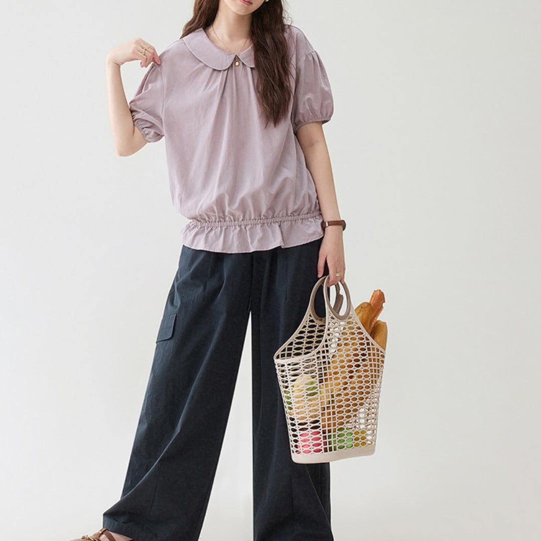 round collar puff sleeve blouse