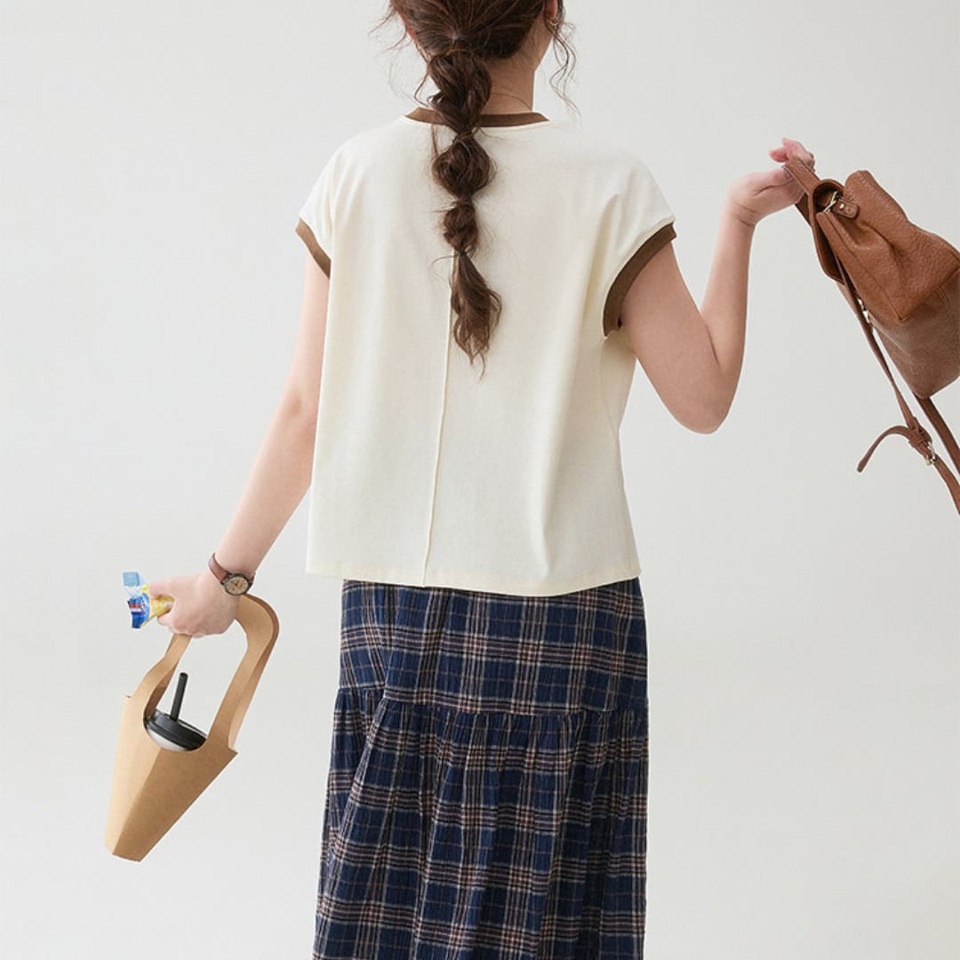 contrast trim french sleeve tops
