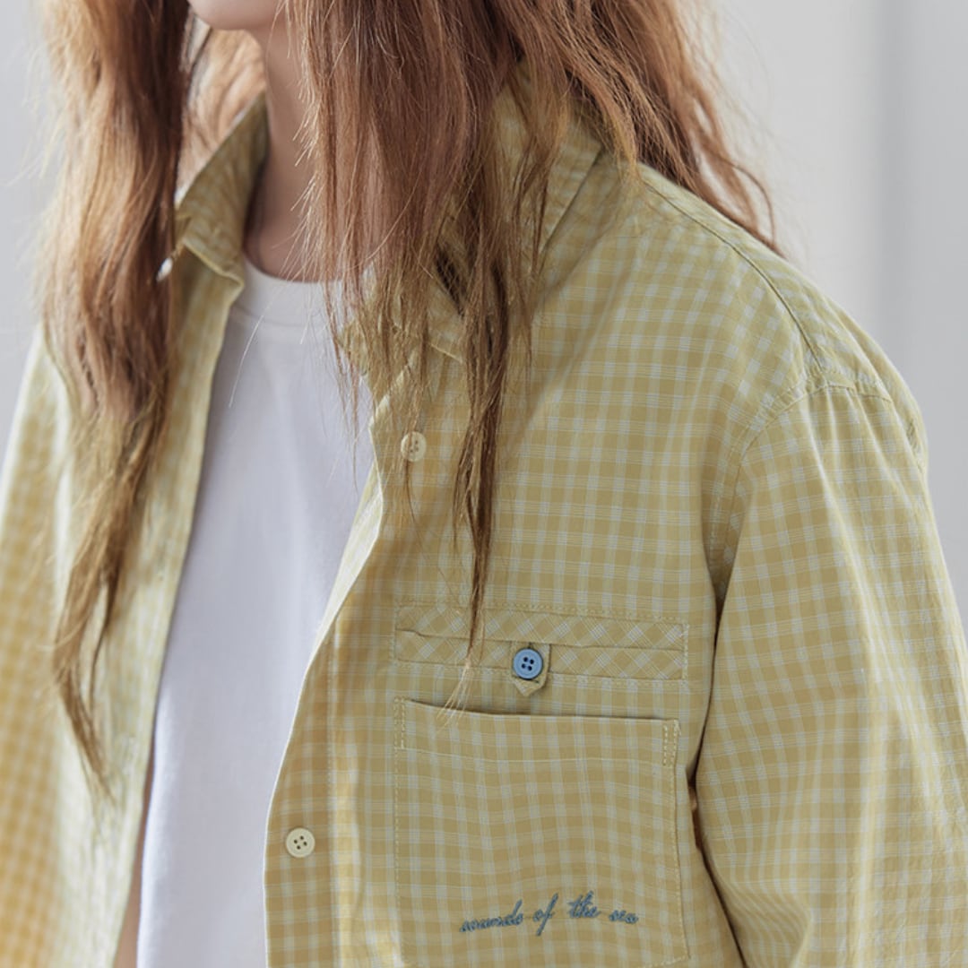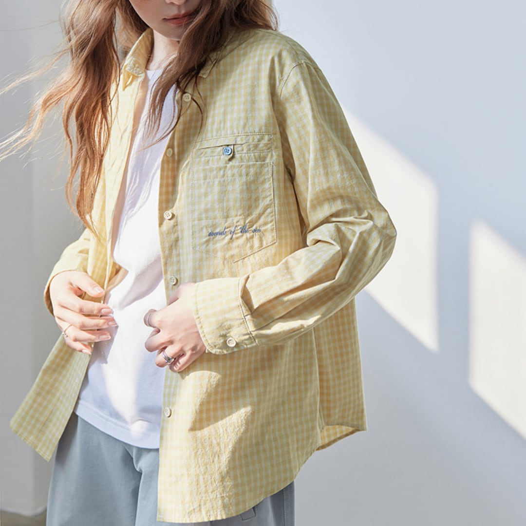 やわらかな風合いのチェック柄とゆったりとしたシルエットが特徴のシャツで、胸元のポケットデザインがさりげないアクセントとなり、ナチュラルでこなれた印象を演出してくれる一着です。