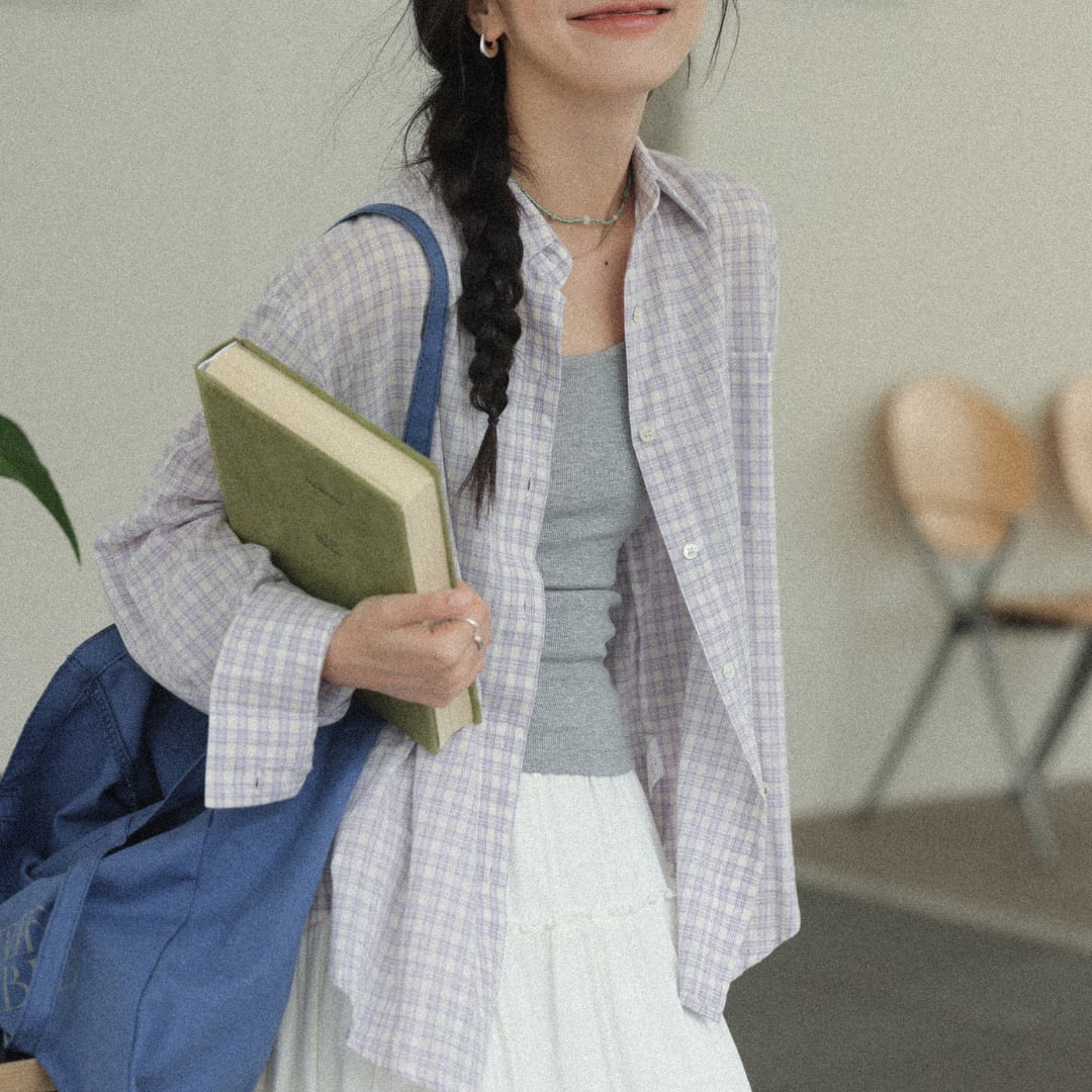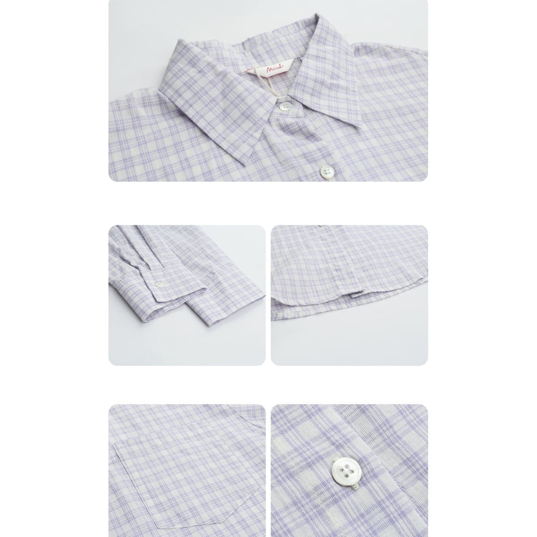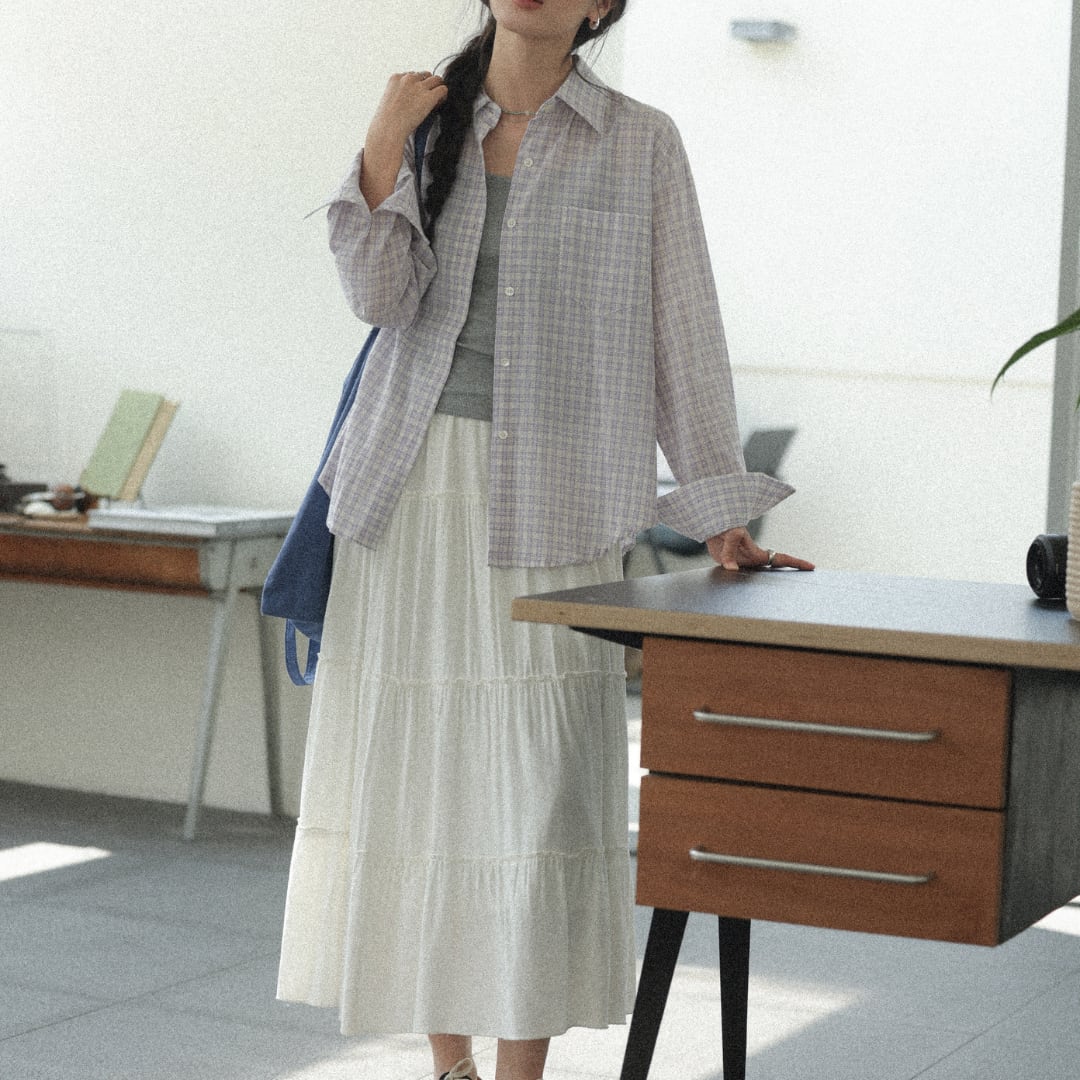 やわらかなコットン素材に細やかなチェック柄をあしらい、軽やかでナチュラルな雰囲気を演出する長袖シャツ。