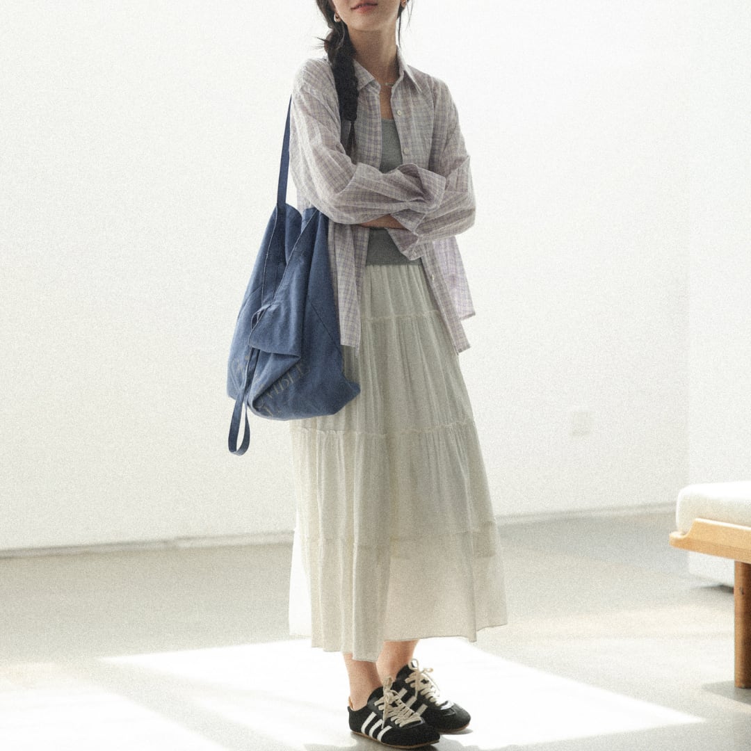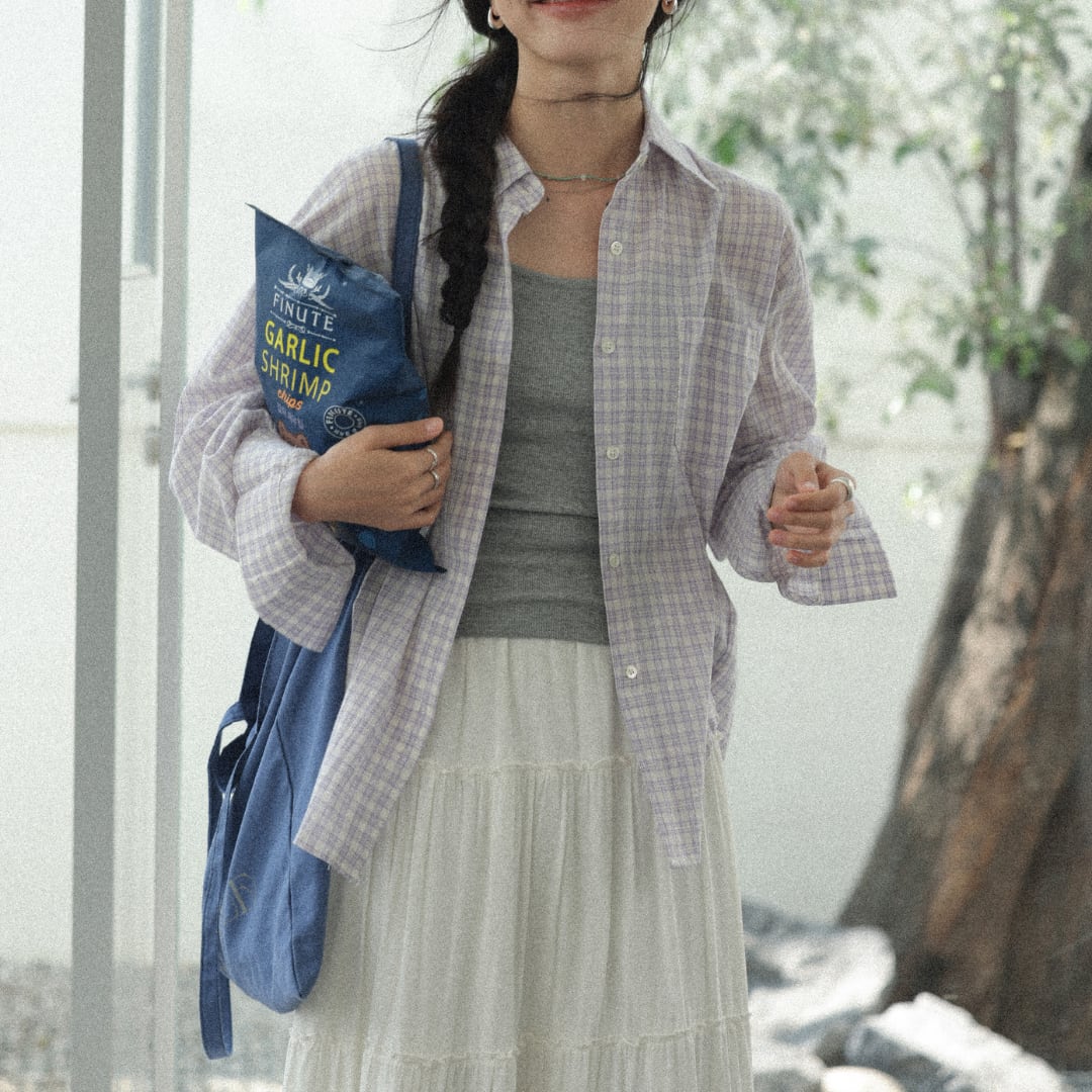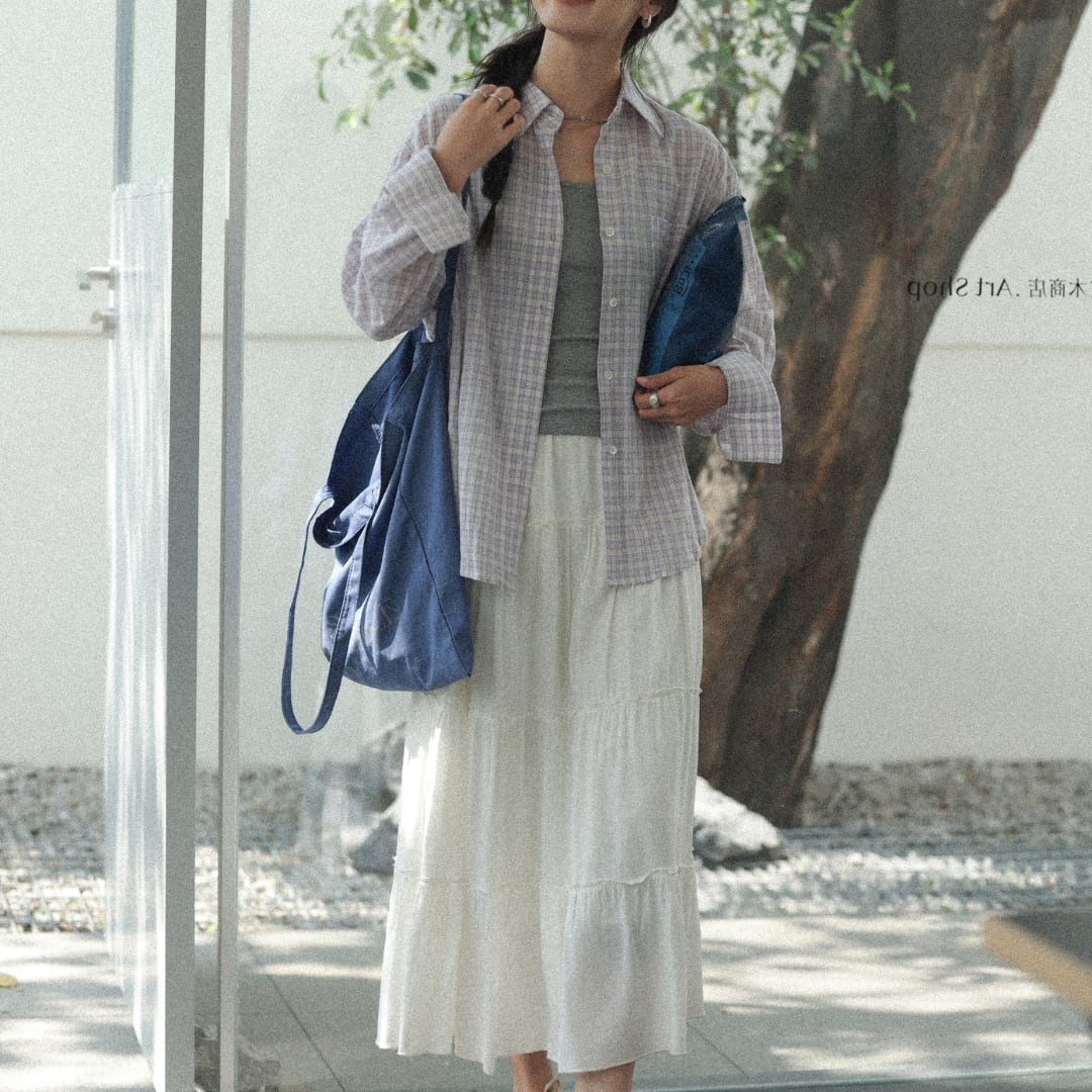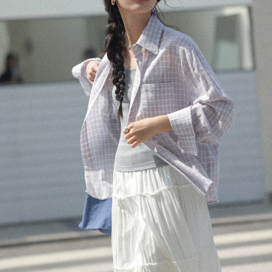 やわらかなコットン素材に細やかなチェック柄をあしらい、軽やかでナチュラルな雰囲気を演出する長袖シャツ。