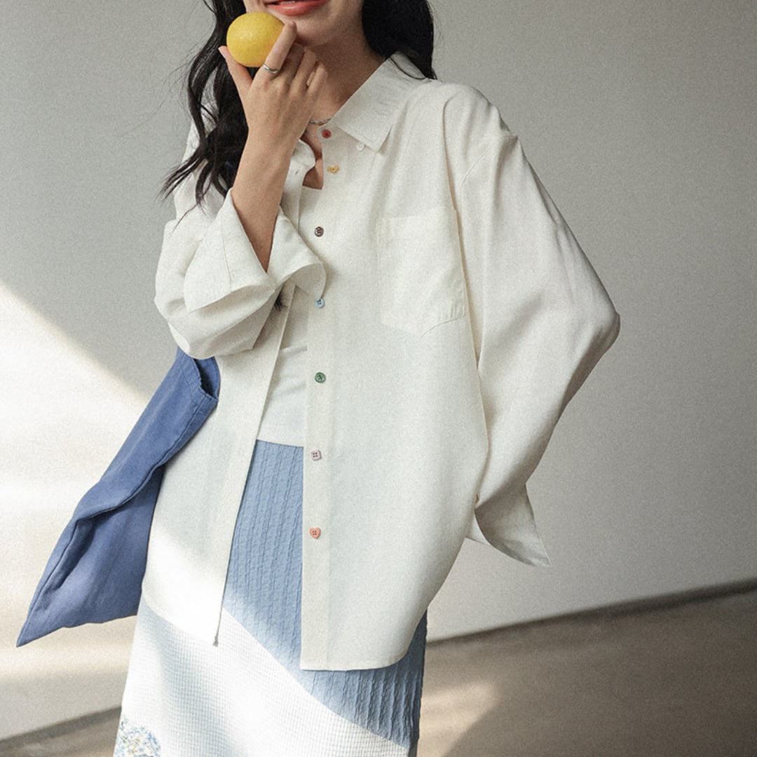 やわらかな風合いの生地にさりげないカラーボタンをあしらい、シンプルながらも個性が光るデザインに仕上げた長袖シャツ。 ゆったりとしたシルエットで羽織りとしても活躍し、季節の変わり目や春先のコーデに取り入れることで軽やかで抜け感のあるスタイルが完成する一着です。 【カラー】 ホワイト、ピンク 【サイズ】 S 着丈:68cm 胸囲:132cm 肩幅:56cm 袖丈:54cm M 着丈:69.5cm 胸囲:136cm 肩幅:57cm 袖丈:55cm L 着丈:71cm 胸囲:140cm 肩幅:58cm 袖丈:56cm モデル身長166cm 着用サイズS 【素材】 レーヨン92%、ナイロン8% ♦︎選べるお支払い方法 ・クレジットカード決済(VISA/Master/JCB/AMEX) ・キャリア決済(docomo/au/Softbank/Y!mobile) ・Amazon pay(ご利用不可の期間あり) ・Pay-easy ・後払い決済 ✴︎ Erz. ranking top 10 ✴︎ こちらから↓ https://www.erzofficial.com/categories/3617358 [ pickup item]イチオシアイテム↓ https://www.erzofficial.com/categories/3558579 Erz.がご提案する大人のレトロカジュアルって? https://www.erzofficial.com/blog/2021/09/06/123341 【お届けについて】 こちらの商品は海外店舗より直接発送となる為、 ご入金から最短10日〜4週間前後で発送致します。 ◼️注意事項 ・タイミングによっては 商品在庫切れにより 注文キャンセルとさせていただく恐れもございますので、予めご了承くださいませ。 ・こちらは輸入品となります。日本製とは検品基準が異なる為、 ・新品未使用品でもごくわずかな汚れや ほつれがある場合もございます。 ・明らかな不良があった場合お手数ですが、お早めにご連絡をお願い致します。 ご確認後、ご返金、返品対応させていただきますのでご安心ください。 ・仕入れ工場を変えることがあるため、記載サイズと若干異なる場合がございます。 ・商品の色味は、お手持ちのスマートフォンの画面によって実物と若干異なる場合がございます。 ・イメージ違いやサイズ交換等、不良品以外の返品は対応出来かねます。 ・ご注文後のキャンセルは、ご遠慮いただいております。 ———————————— ご購入前にこちらをお読みください。 https://alroom.thebase.in/about 商品番号 SH374Y