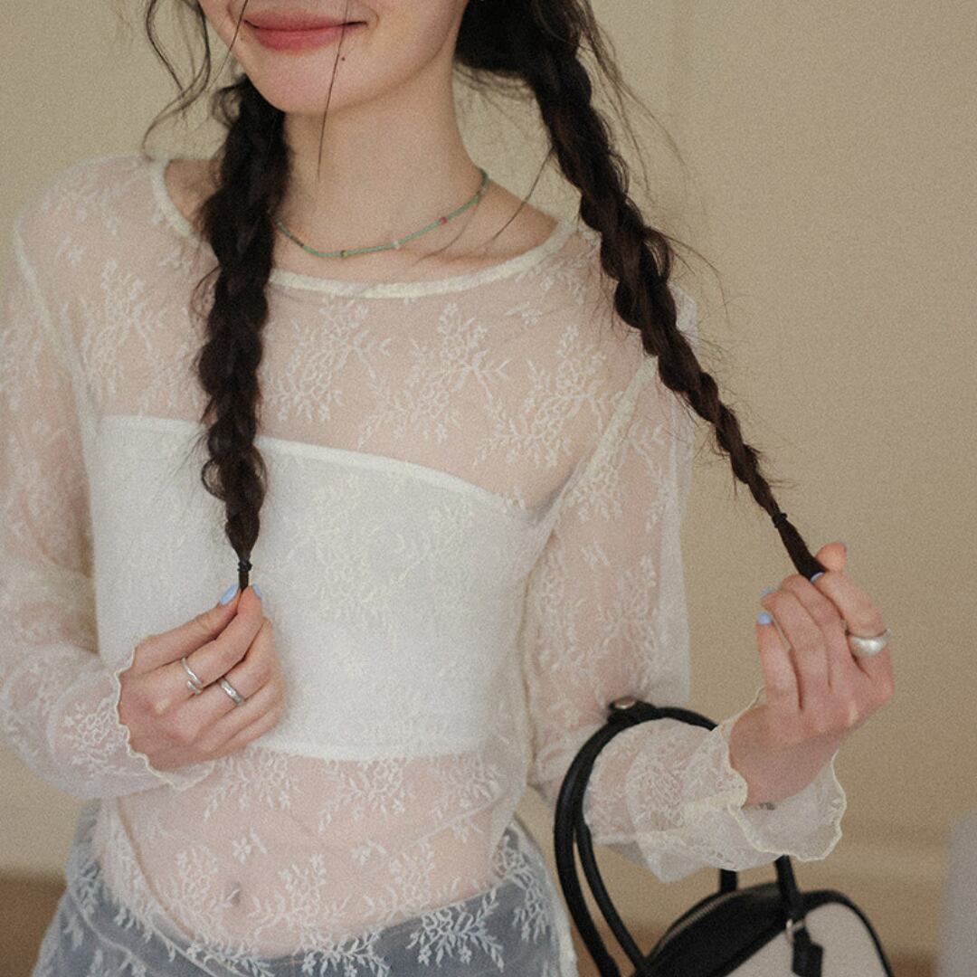 繊細なフラワーレースを全面にあしらい、軽やかな透け感が女性らしい雰囲気を引き立てるシアートップス。 コンパクトなシルエットでインナーとのレイヤードを楽しめるデザインで、春夏のコーデに取り入れることで抜け感のあるスタイリングが完成する一着です。 【カラー】 (画像順) スモールフラワー、ビッグフラワー 【サイズ】 S 着丈:55cm 胸囲:86cm 肩幅:41cm 袖丈:62.5cm M 着丈:56.5cm 胸囲:90cm 肩幅:42cm 袖丈:63.5cm L 着丈:58cm 胸囲:94cm 肩幅:43cm 袖丈:64.5cm モデル身長162cm 着用サイズS 【素材】 綿90%、ポリウレタン10% ♦︎選べるお支払い方法 ・クレジットカード決済(VISA/Master/JCB/AMEX) ・キャリア決済(docomo/au/Softbank/Y!mobile) ・Amazon pay(ご利用不可の期間あり) ・Pay-easy ・後払い決済 ✴︎ Erz. ranking top 10 ✴︎ こちらから↓ https://www.erzofficial.com/categories/3617358 [ pickup item]イチオシアイテム↓ https://www.erzofficial.com/categories/3558579 Erz.がご提案する大人のレトロカジュアルって? https://www.erzofficial.com/blog/2021/09/06/123341 【お届けについて】 こちらの商品は海外店舗より直接発送となる為、 ご入金から最短10日〜4週間前後で発送致します。 ◼️注意事項 ・タイミングによっては 商品在庫切れにより 注文キャンセルとさせていただく恐れもございますので、予めご了承くださいませ。 ・こちらは輸入品となります。日本製とは検品基準が異なる為、 ・新品未使用品でもごくわずかな汚れや ほつれがある場合もございます。 ・明らかな不良があった場合お手数ですが、お早めにご連絡をお願い致します。 ご確認後、ご返金、返品対応させていただきますのでご安心ください。 ・仕入れ工場を変えることがあるため、記載サイズと若干異なる場合がございます。 ・商品の色味は、お手持ちのスマートフォンの画面によって実物と若干異なる場合がございます。 ・イメージ違いやサイズ交換等、不良品以外の返品は対応出来かねます。 ・ご注文後のキャンセルは、ご遠慮いただいております。 ———————————— ご購入前にこちらをお読みください。 https://alroom.thebase.in/about 商品番号 TP278Y