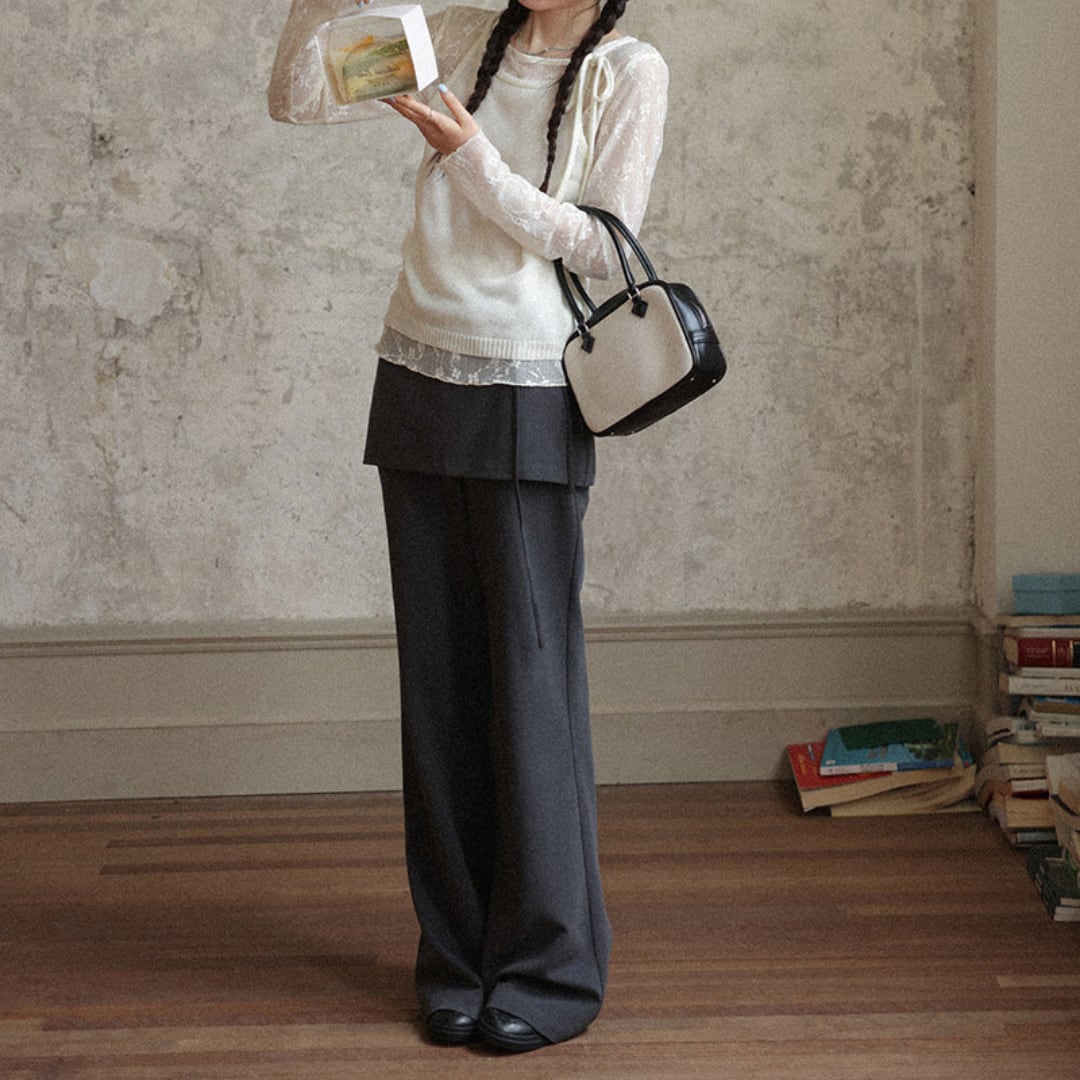 落ち感のある生地とすっきりとしたウエストデザインが、脚のラインを美しく引き立てるワイドシルエットのスラックスパンツです。動くたびに自然なドレープが生まれ、上品で洗練された印象を演出します。 コンパクトなトップスと合わせてスタイルアップを狙った着こなしはもちろん、ゆったりしたニットやシャツとも相性が良く、通勤からデイリーまで幅広いシーンで活躍する一着です。 【カラー】 ブラック、グレー 【サイズ】 S 着丈:101cm ウエスト:68cm ヒップ:86cm M 着丈:102cm ウエスト:72cm ヒップ:90cm L 着丈:103cm ウエスト:74cm ヒップ:94cm モデル身長162cm 体重42kg 着用サイズS ♦︎選べるお支払い方法 ・クレジットカード決済(VISA/Master/JCB/AMEX) ・キャリア決済(docomo/au/Softbank/Y!mobile) ・Amazon pay(ご利用不可の期間あり) ・Pay-easy ・後払い決済 ✴︎ Erz. ranking top 10 ✴︎ こちらから↓ https://www.erzofficial.com/categories/3617358 [ pickup item]イチオシアイテム↓ https://www.erzofficial.com/categories/3558579 Erz.がご提案する大人のレトロカジュアルって? https://www.erzofficial.com/blog/2021/09/06/123341 【お届けについて】 こちらの商品は海外店舗より直接発送となる為、 ご入金から最短10日〜4週間前後で発送致します。 ◼️注意事項 ・タイミングによっては 商品在庫切れにより 注文キャンセルとさせていただく恐れもございますので、予めご了承くださいませ。 ・こちらは輸入品となります。日本製とは検品基準が異なる為、 ・新品未使用品でもごくわずかな汚れや ほつれがある場合もございます。 ・明らかな不良があった場合お手数ですが、お早めにご連絡をお願い致します。 ご確認後、ご返金、返品対応させていただきますのでご安心ください。 ・仕入れ工場を変えることがあるため、記載サイズと若干異なる場合がございます。 ・商品の色味は、お手持ちのスマートフォンの画面によって実物と若干異なる場合がございます。 ・イメージ違いやサイズ交換等、不良品以外の返品は対応出来かねます。 ・ご注文後のキャンセルは、ご遠慮いただいております。 ———————————— ご購入前にこちらをお読みください。 https://alroom.thebase.in/about 商品番号 PT295Y